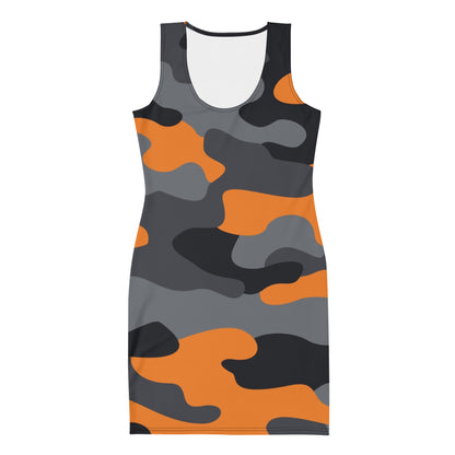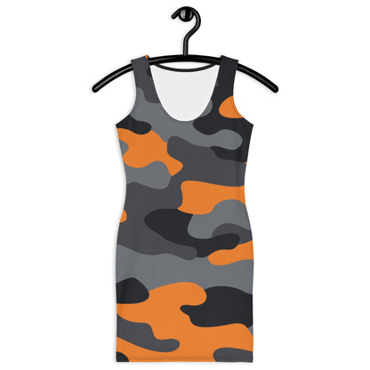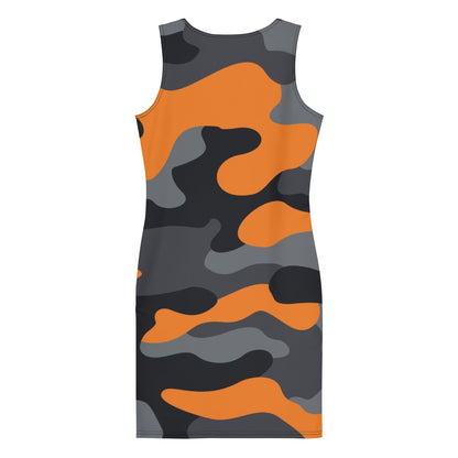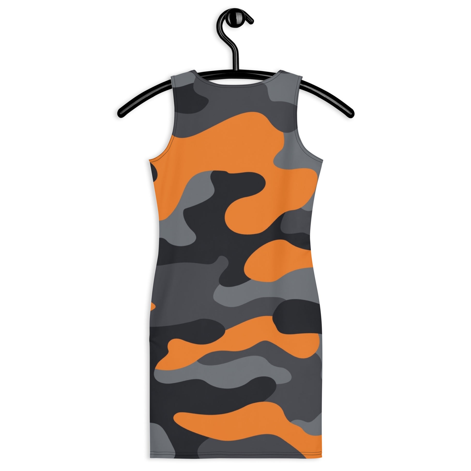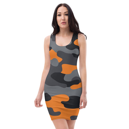 Camo Dress | Orange, Black & Gray | Tight Bodycon Fit