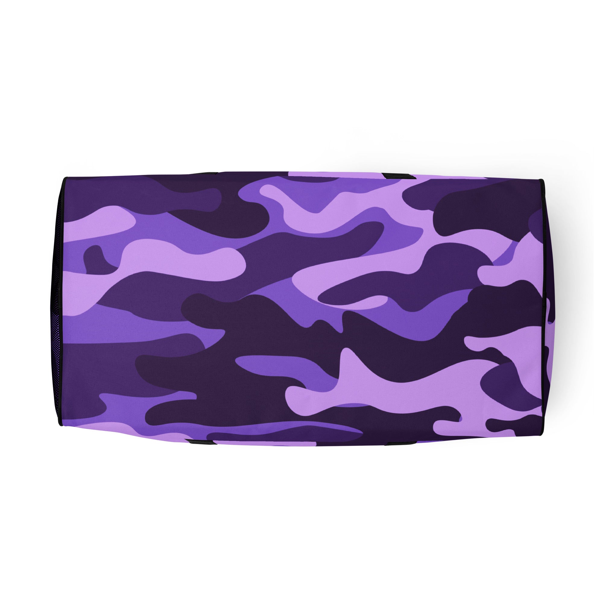 Take your travel style to the next level with our Camo Duffle Bag featuring a unique Purple, Blue, and Mauve Camouflage design. With its spacious interior and durable construction, this bag is perfect for any adventure. Stand out and stay organized with this stylish and functional duffle bag.