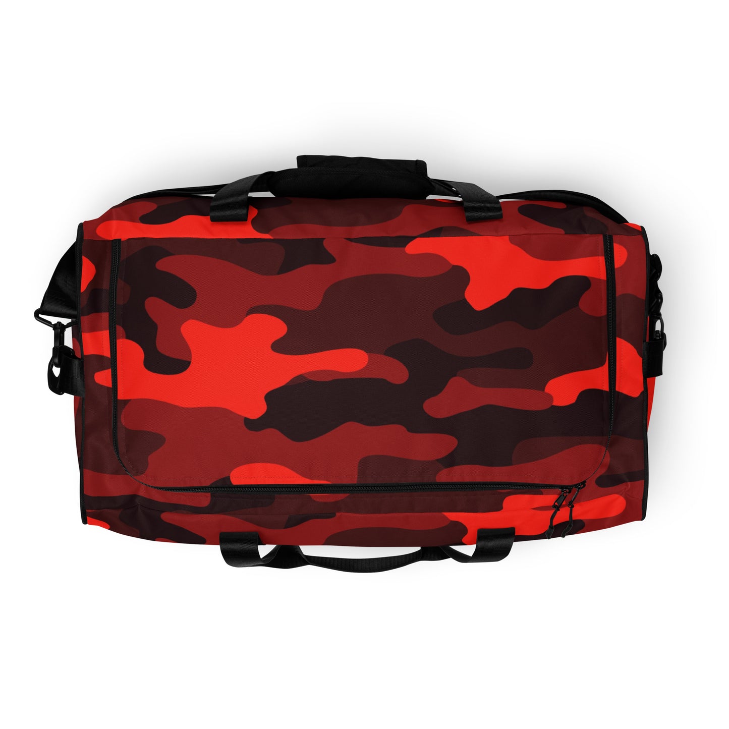 Expertly crafted in a striking scarlet red & black camouflage design, this Camo Duffle Bag is perfect for any adventure. Made with durable materials and spacious compartments, it can hold all your essentials while keeping you stylishly prepared. Ideal for outdoor enthusiasts or travelers seeking both form and function.