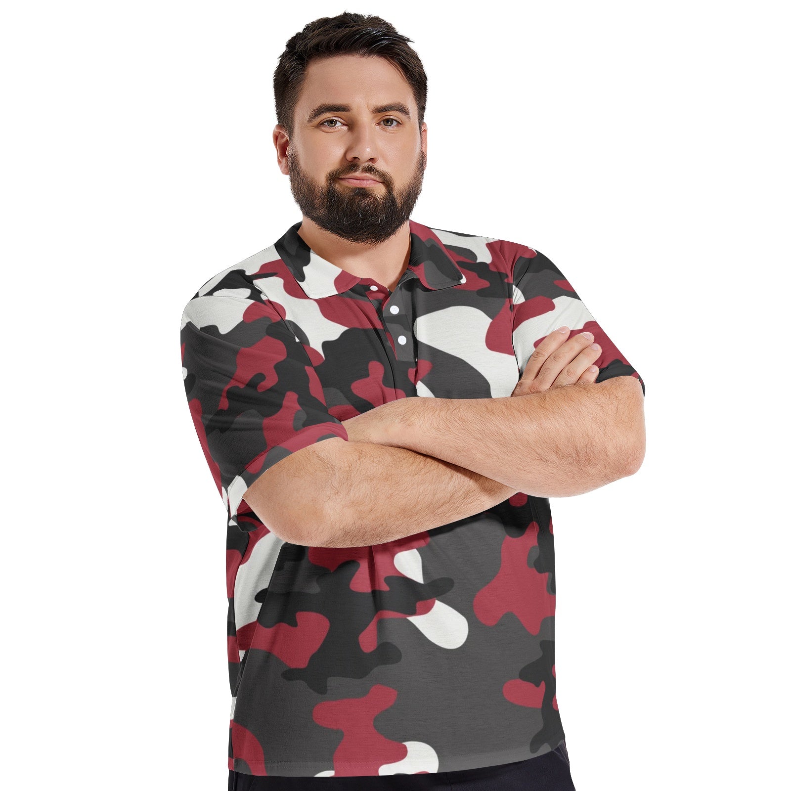 Experience ultimate comfort and style on the golf course with our Camo Golf Shirt. Made with a jungle green, black, and white camouflage design, this shirt will keep you looking sharp and blending in with the surroundings. Perfect for all your outdoor activities.