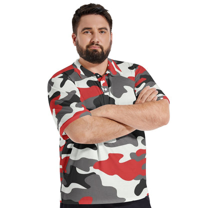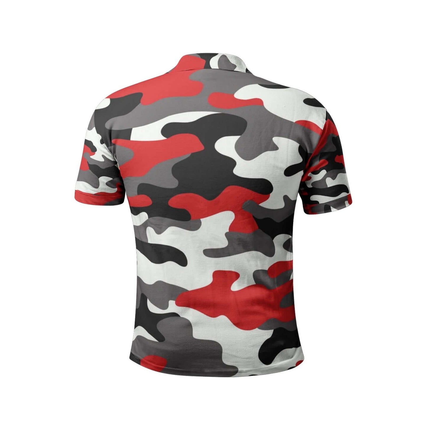 Elevate your golf game with our Camo Golf Shirt. Stay comfortably cool while blending into your surroundings with the red, black, and white camouflage design. With its lightweight and breathable fabric, this shirt is perfect for any outdoor activity. Don't sacrifice style for performance - get the best of both with our Camo Golf Shirt.