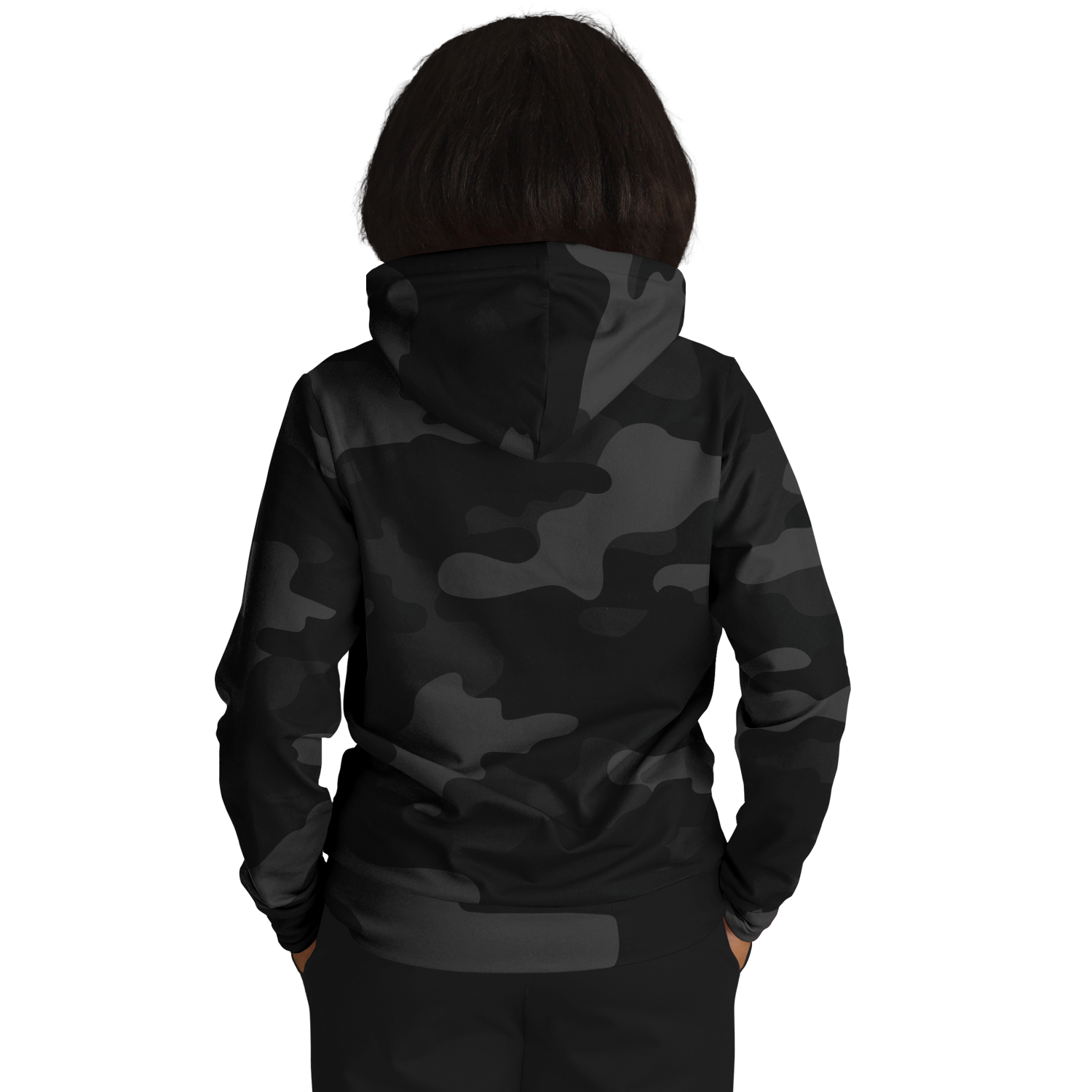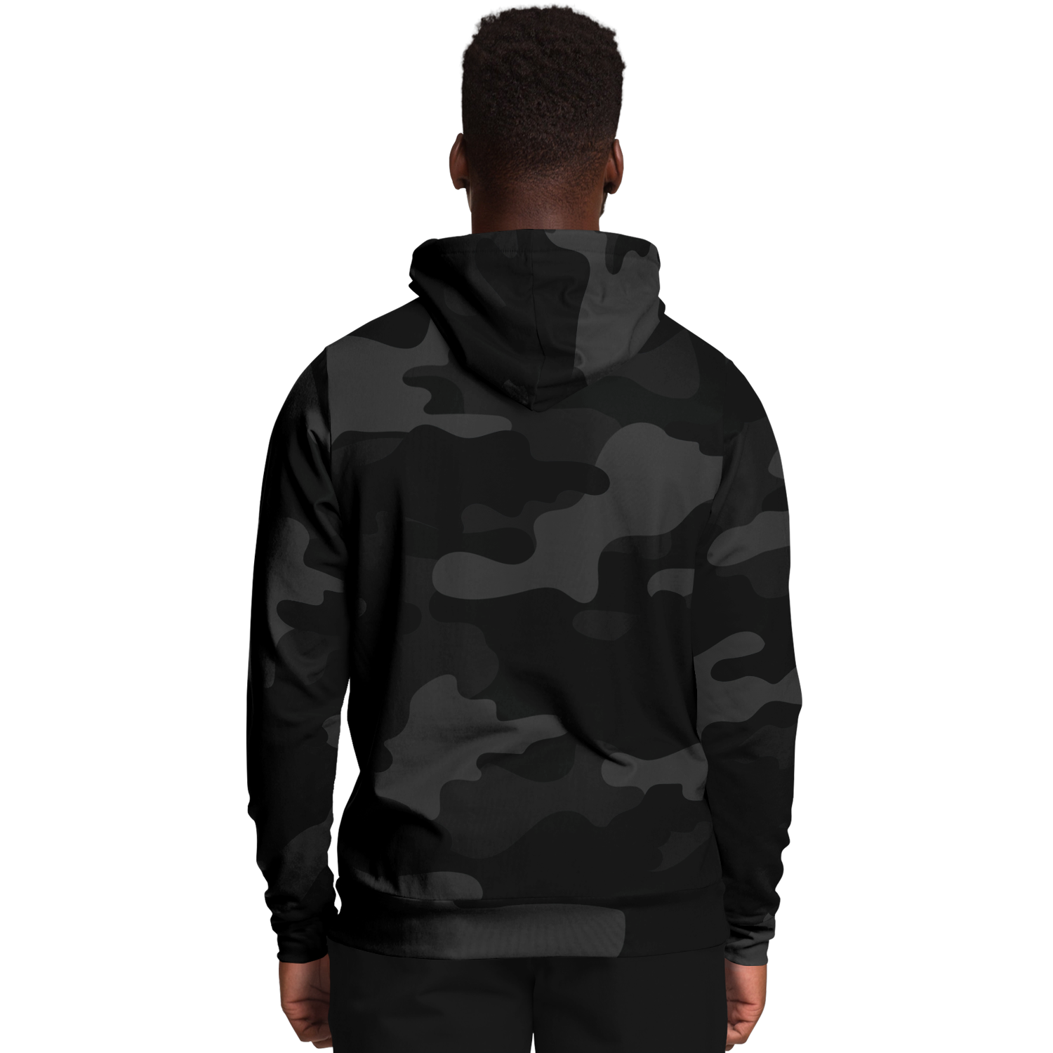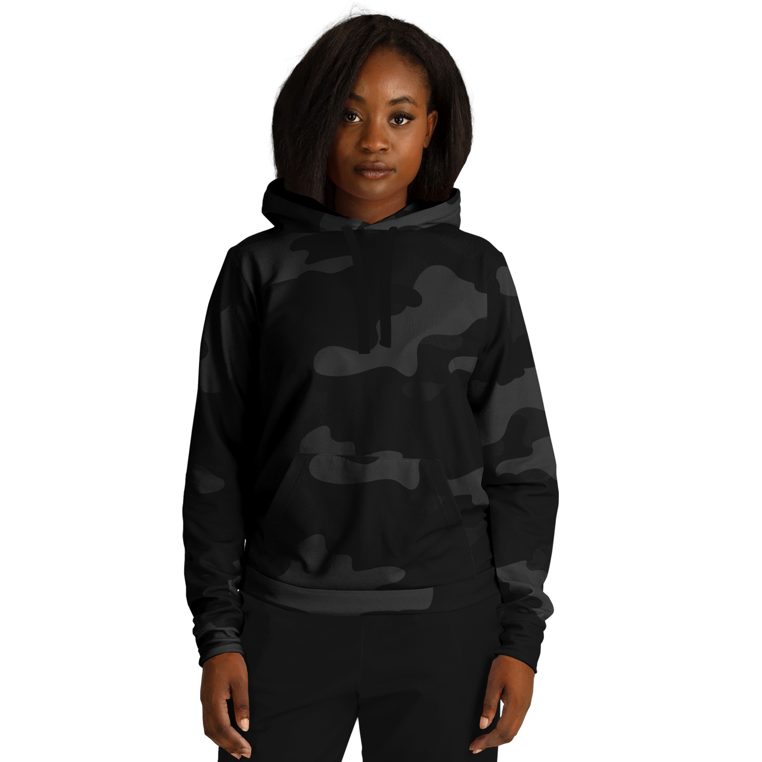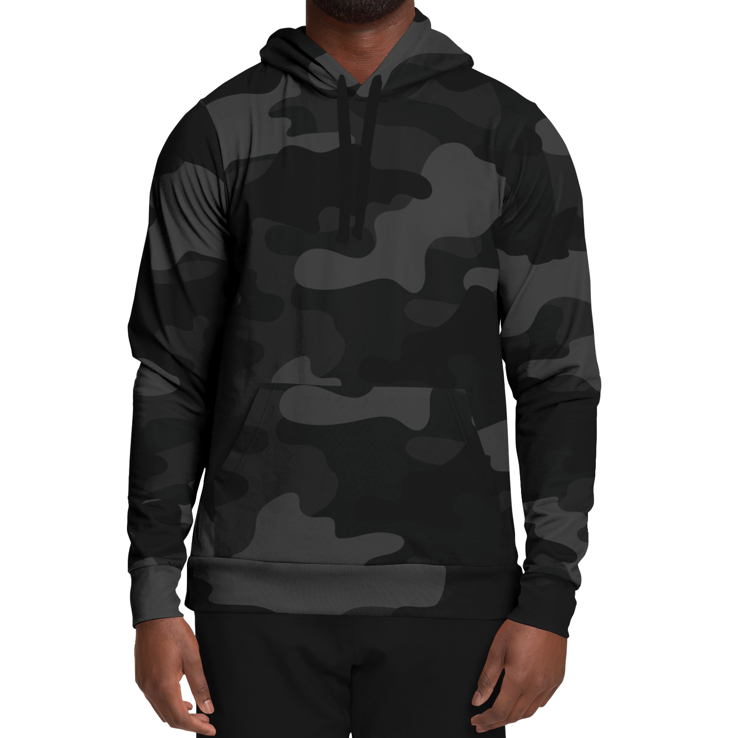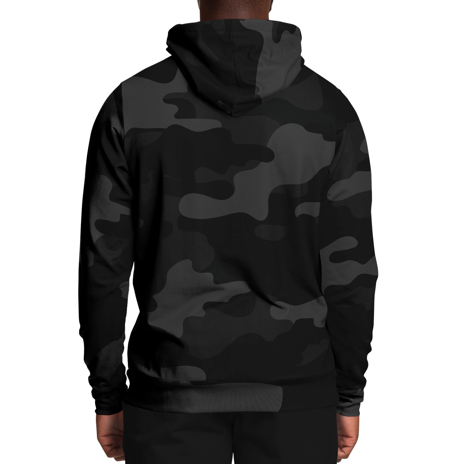 Introducing our Camo Hoodie in a sleek Black Camouflage Design. Made from high-quality materials, this pullover is perfect for outdoor activities. Stay hidden and stylish with its unique camo pattern and comfortable fit. Ideal for those who want to stay under the radar.