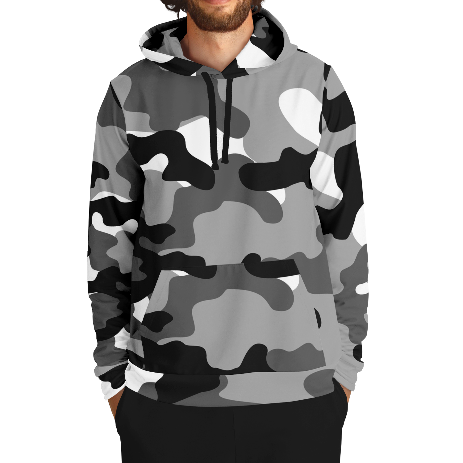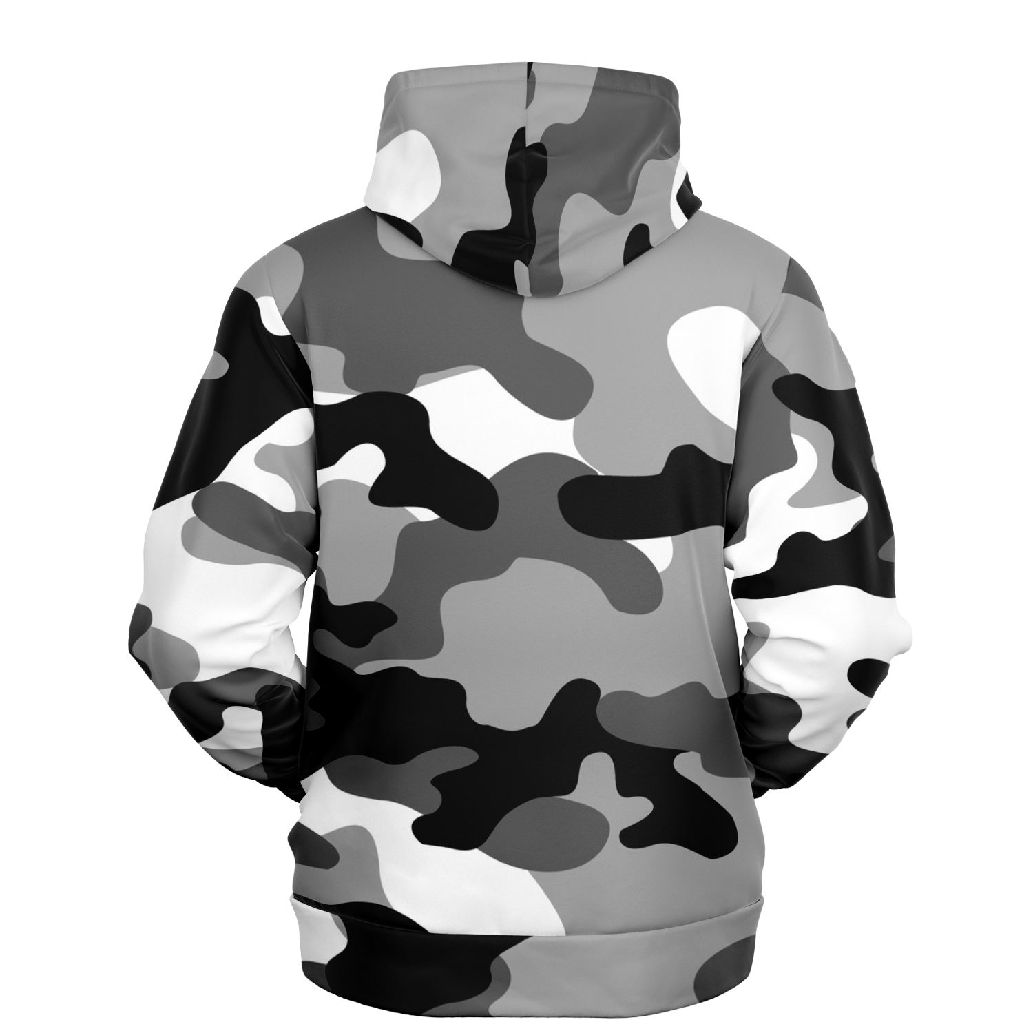 Monochrome Fade Hoodie – Black, White & Gray Camo