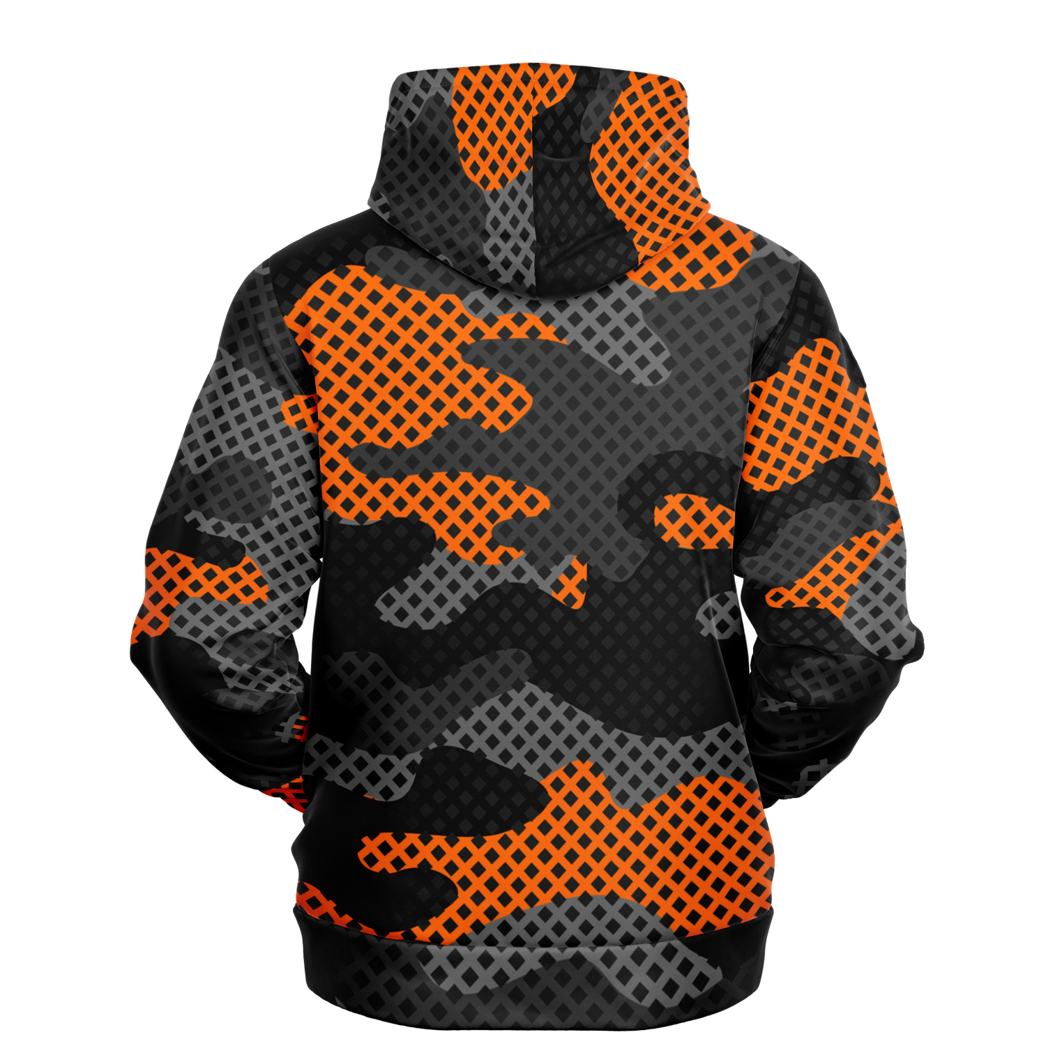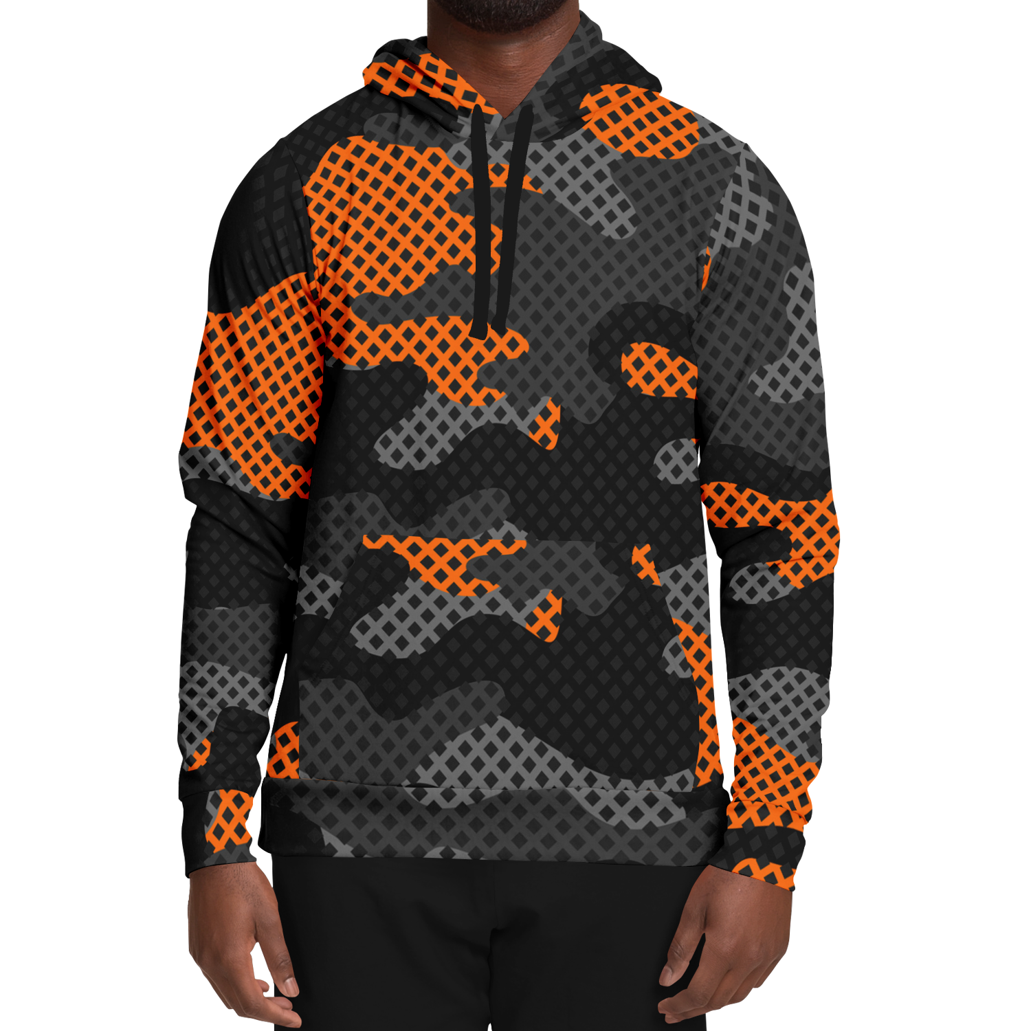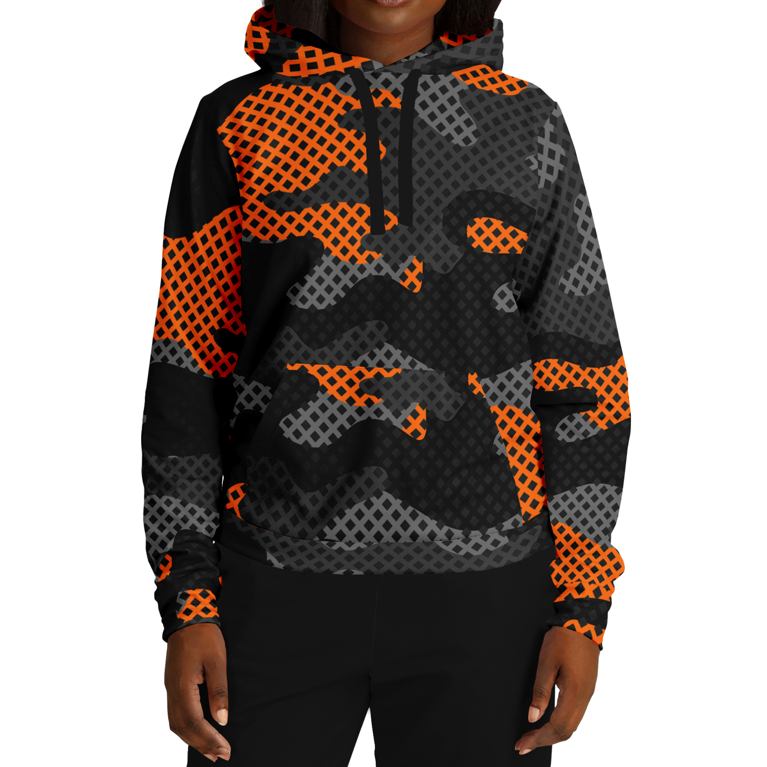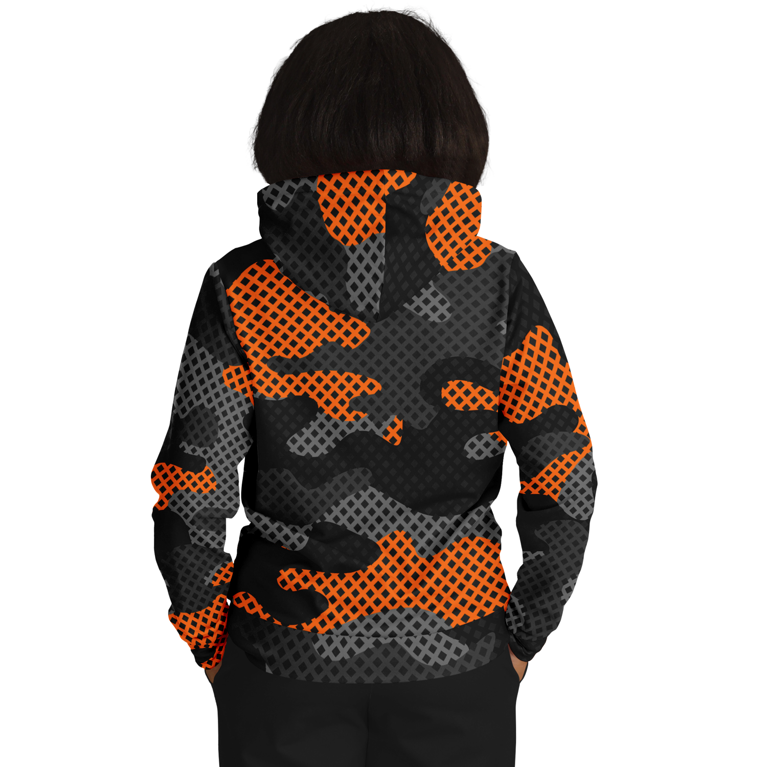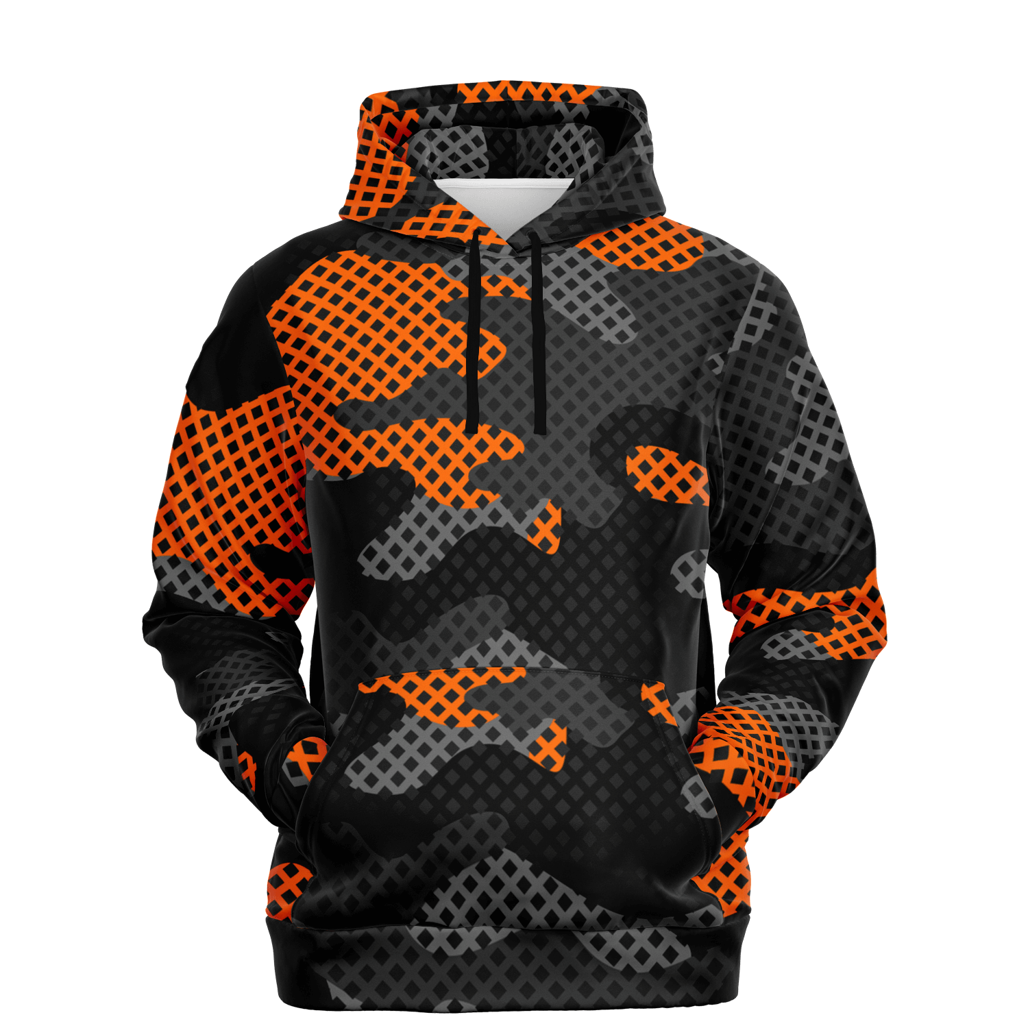 Introducing the Cyber Camo Hoodie, designed with a Black & Orange Pixel Drop pattern. Made with high-quality fabric, this hoodie is both stylish and functional. The unique camo design adds a touch of edginess to any outfit. Stay warm and stand out from the crowd with this must-have hoodie.