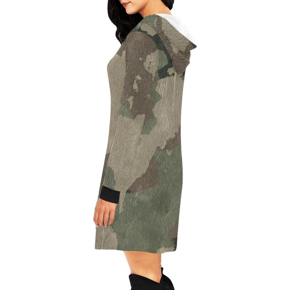 This Camo Hoodie Dress in a Dirty Brown Camouflage design is the perfect blend of style and functionality. Made with high-quality material, it provides both comfort and durability. With a versatile hood and trendy camo print, this dress is perfect for any casual occasion. Stay on-trend and comfortable with this stylish dress.
