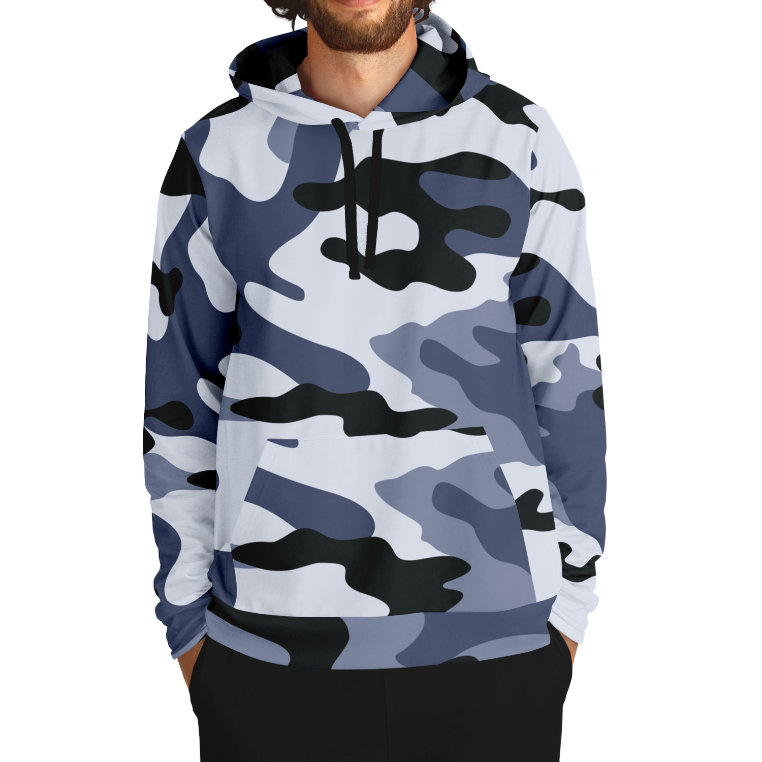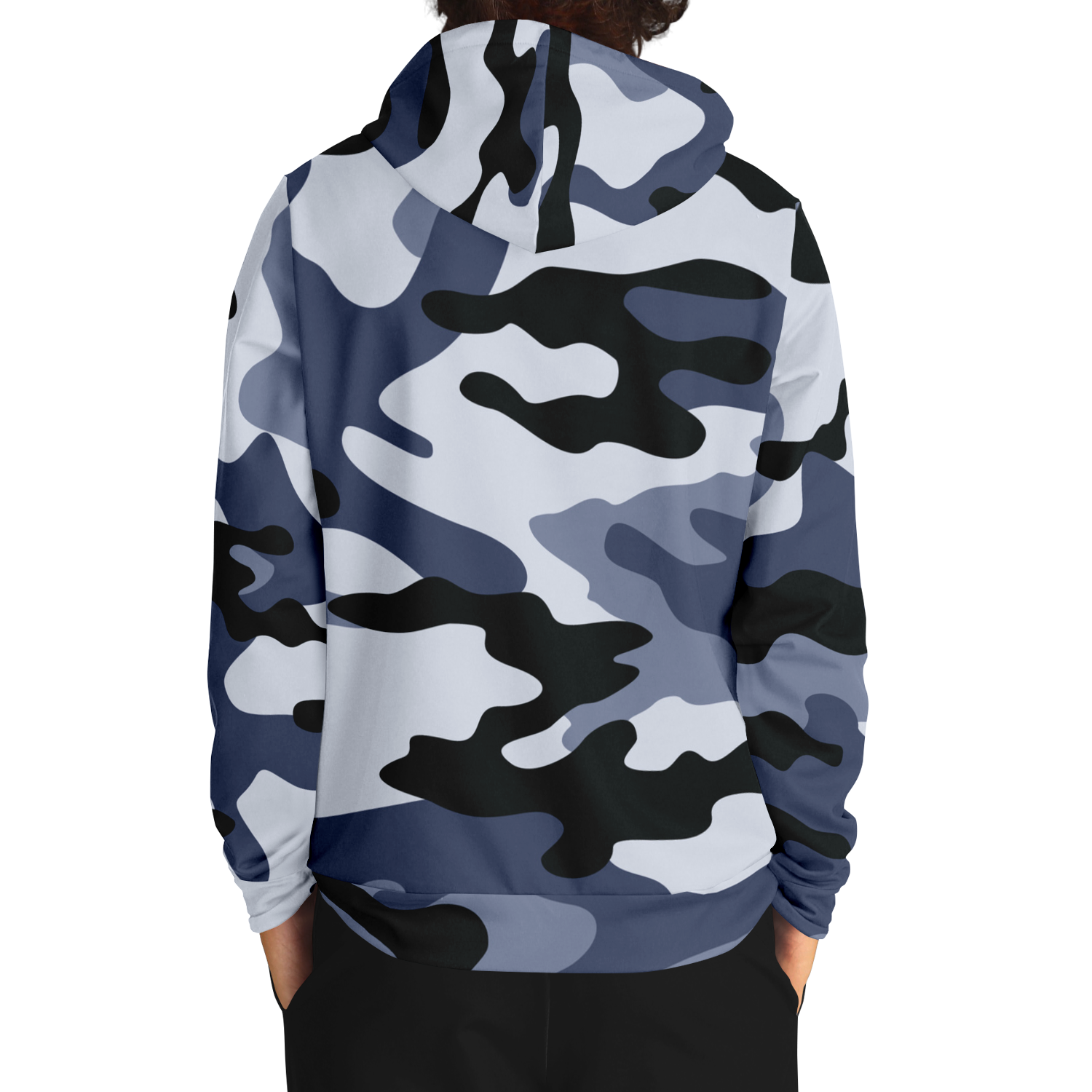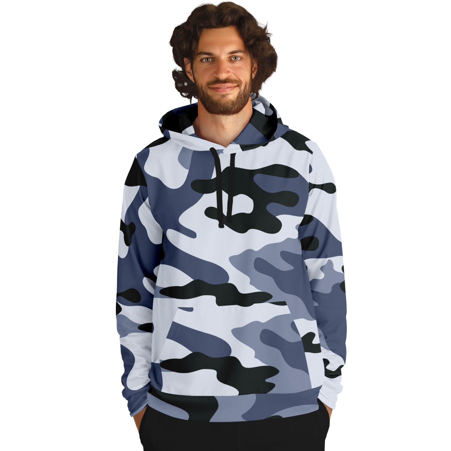 Stay trendy and camouflage yourself in this camo hoodie, featuring a stylish light blue design. Made of durable materials, this hoodie offers both comfort and functionality. Perfect for outdoor adventures or a casual outing.