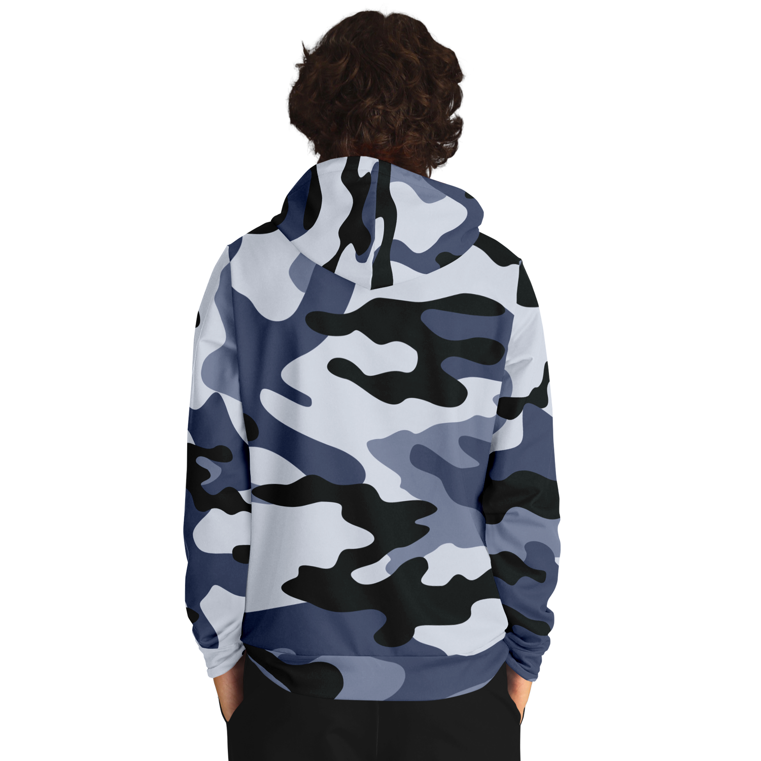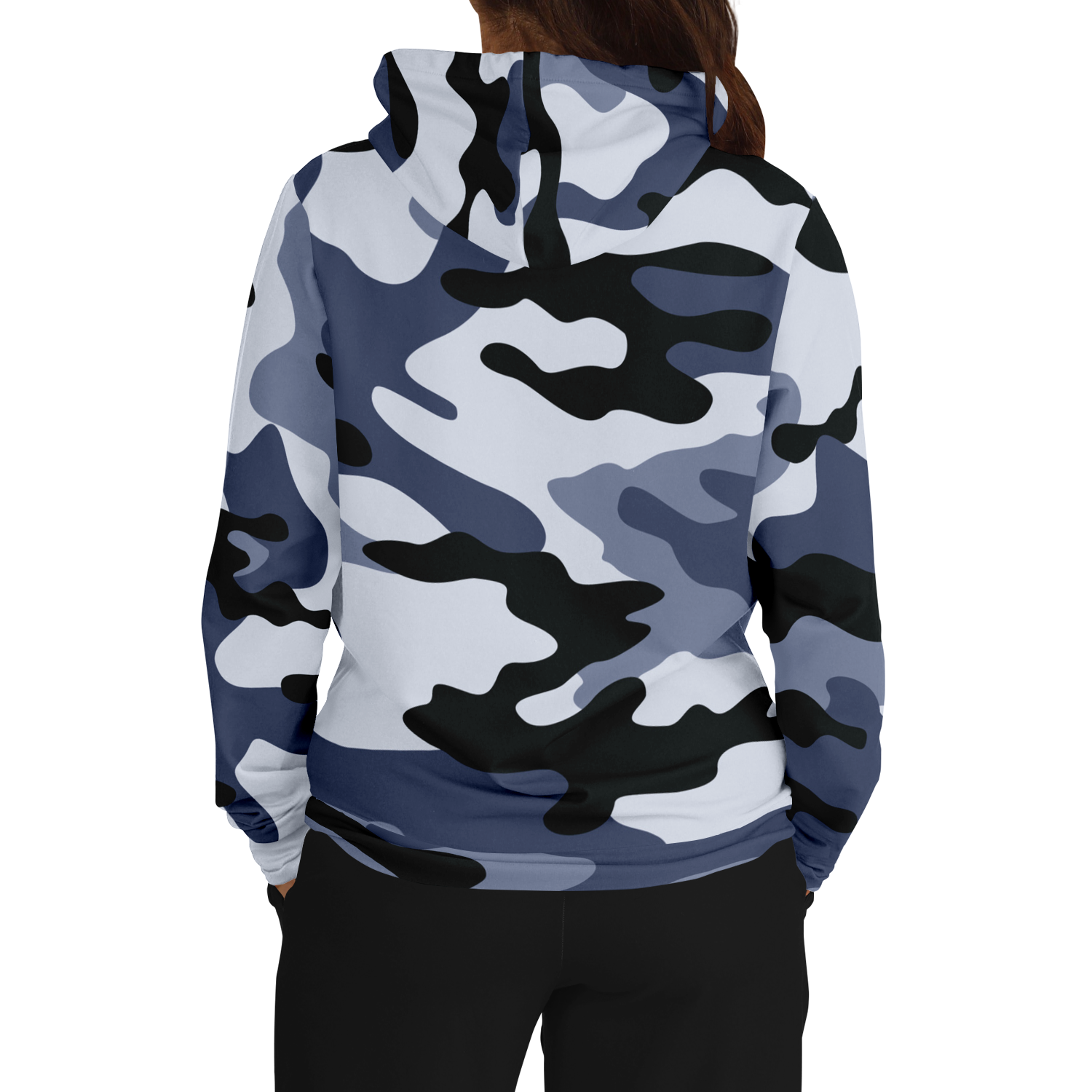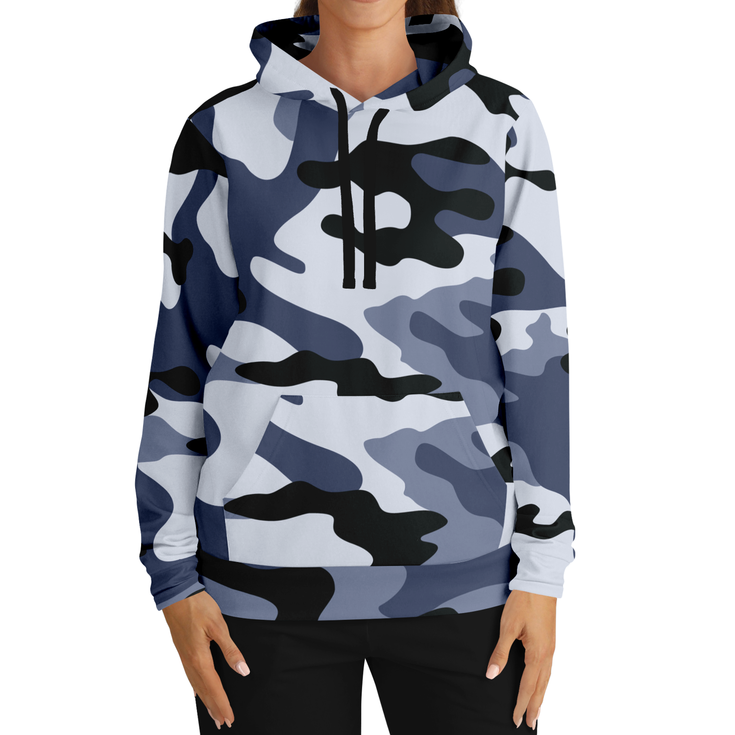 Stay trendy and camouflage yourself in this camo hoodie, featuring a stylish light blue design. Made of durable materials, this hoodie offers both comfort and functionality. Perfect for outdoor adventures or a casual outing.