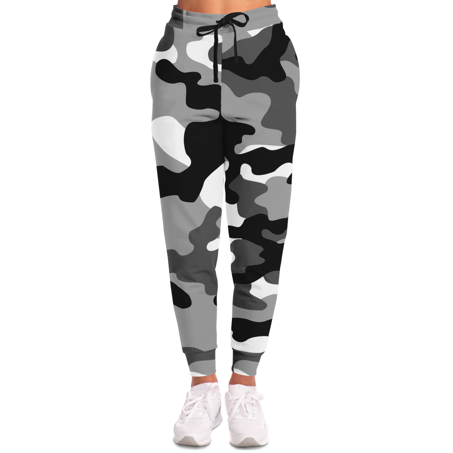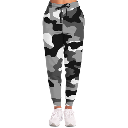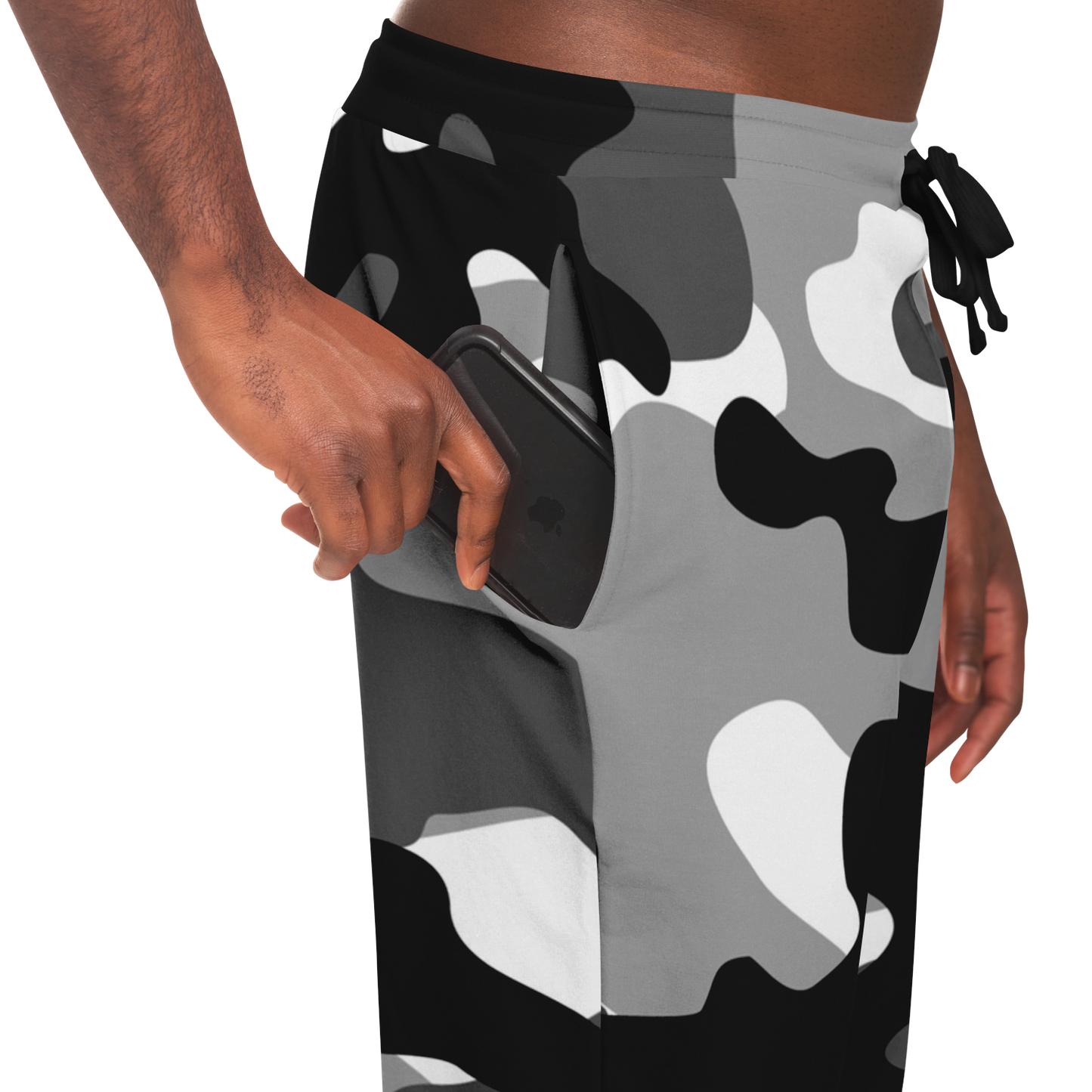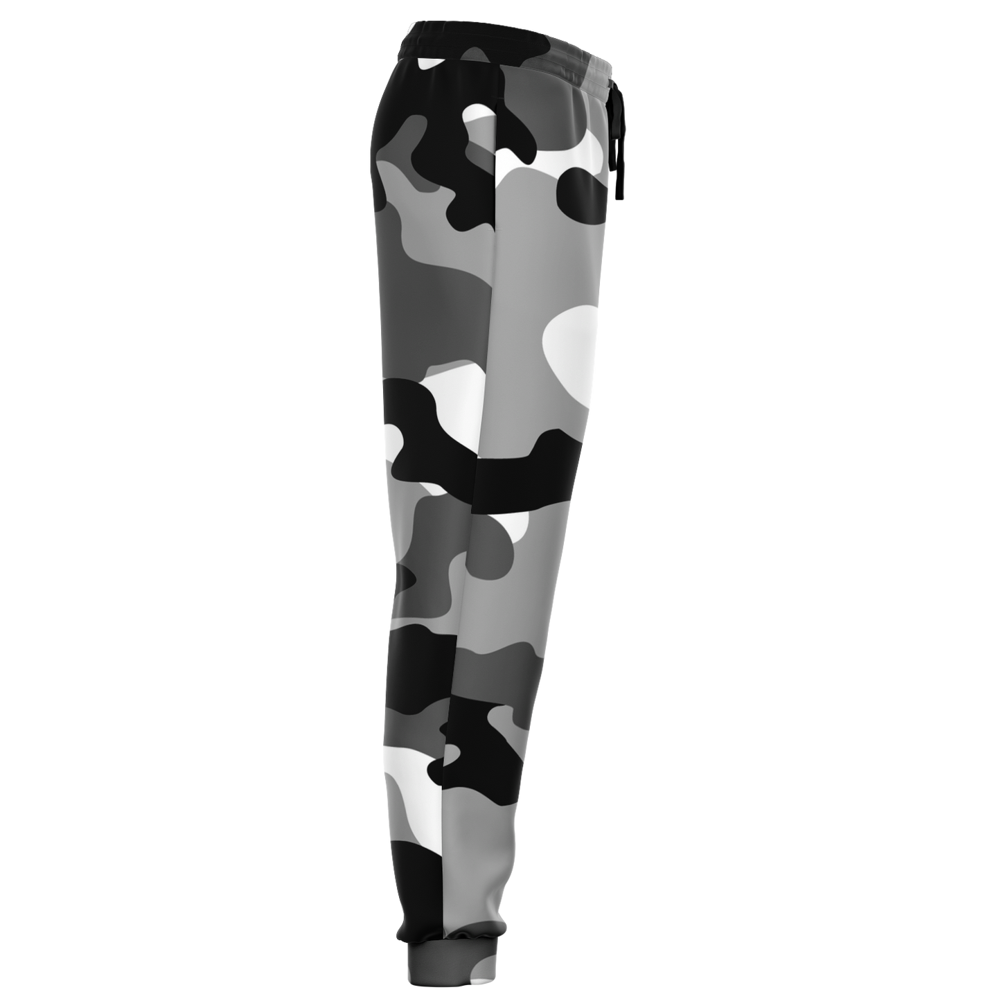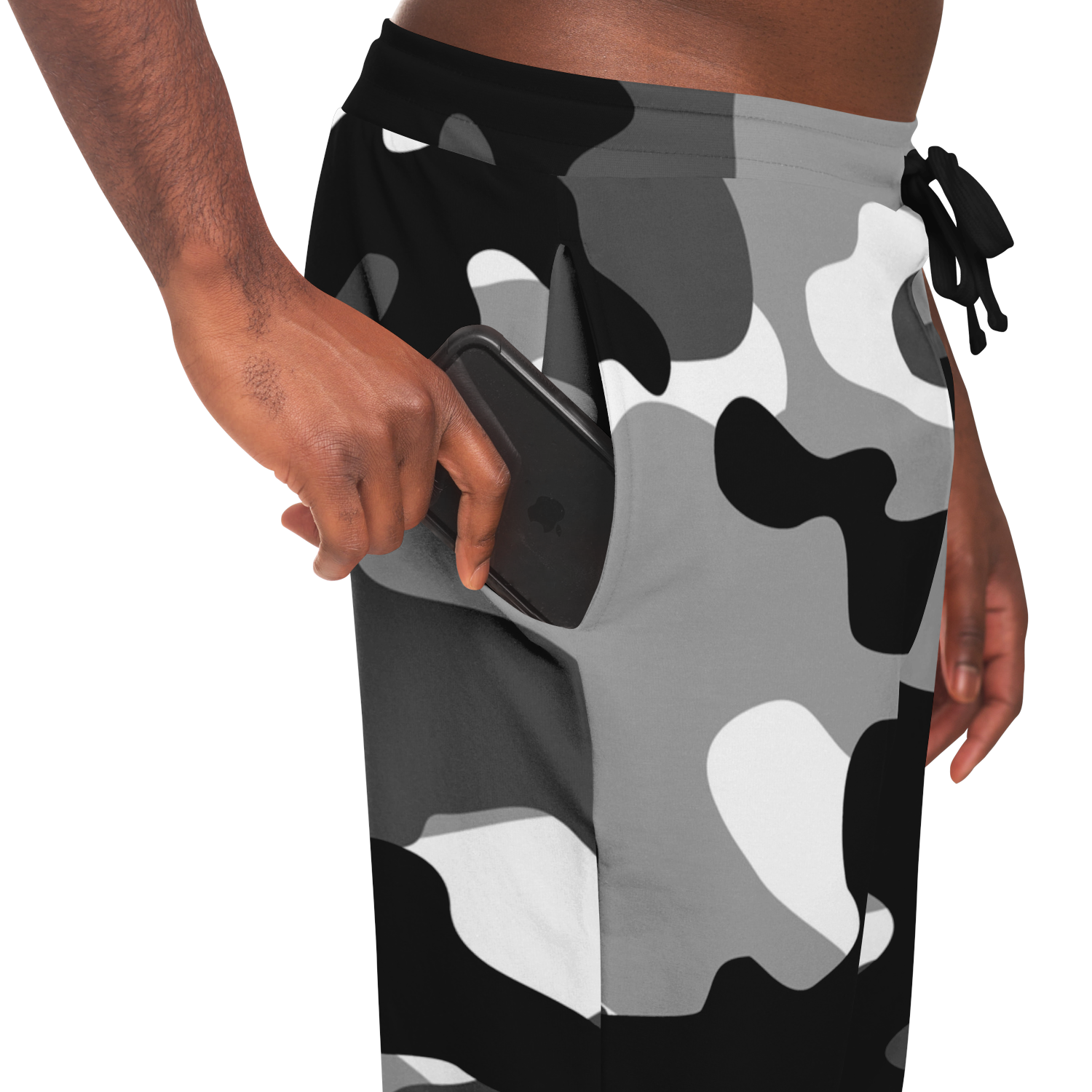 These Camo Joggers in Black, White & Gray are perfect for both men and women. With a versatile and stylish camo print, they can effortlessly be dressed up or down. Plus, the unisex design ensures a comfortable and flattering fit for all. Durable and fashionable, these joggers are a must-have for any wardrobe. Shop now!