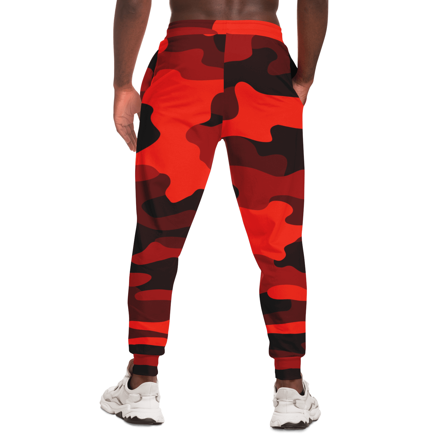 These Camo Joggers in Scarlet Red & Black are perfect for both men and women. The unique camouflage design adds a touch of style and the jogger style provides ultimate comfort. Unleash your inner fashion icon with these versatile and trendy joggers.