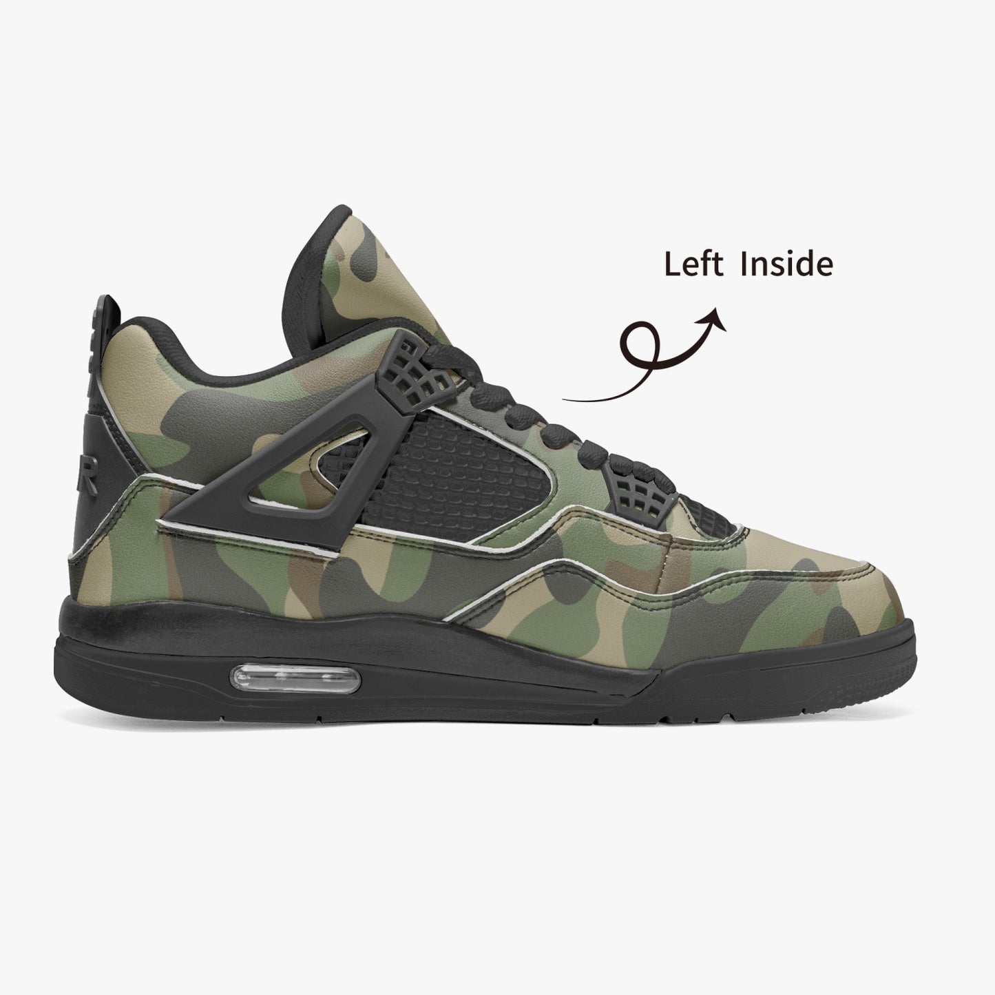 Experience the perfect blend of style and function with our Camo Sneakers AJ4 Style in Military Brown. Designed to provide a trendy and rugged look, these sneakers offer a comfortable fit and durable construction for all-day wear. Step out in style and confidence with our Camo Sneakers AJ4 Style.