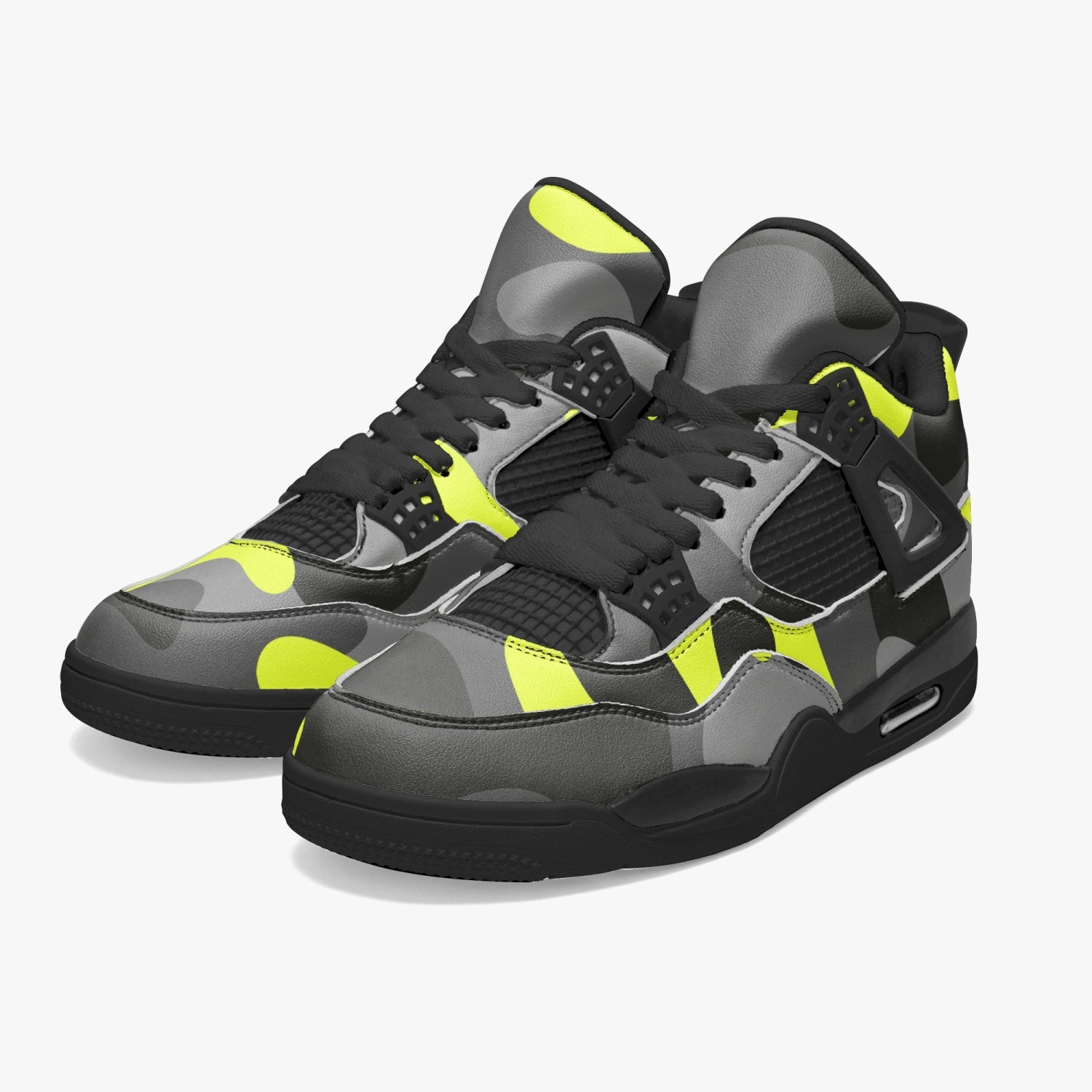 Camo Sneakers AJ4 Style | Yellow, Black and Gray