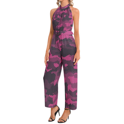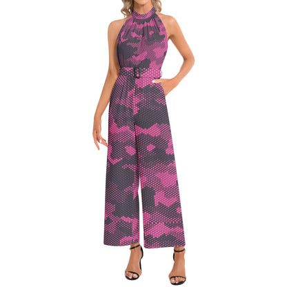 Camo Jumpsuit | Belted Halter Neck | Digital Pink