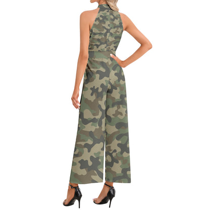 Camo Jumpsuit | Belted Halter Neck | Military Brown