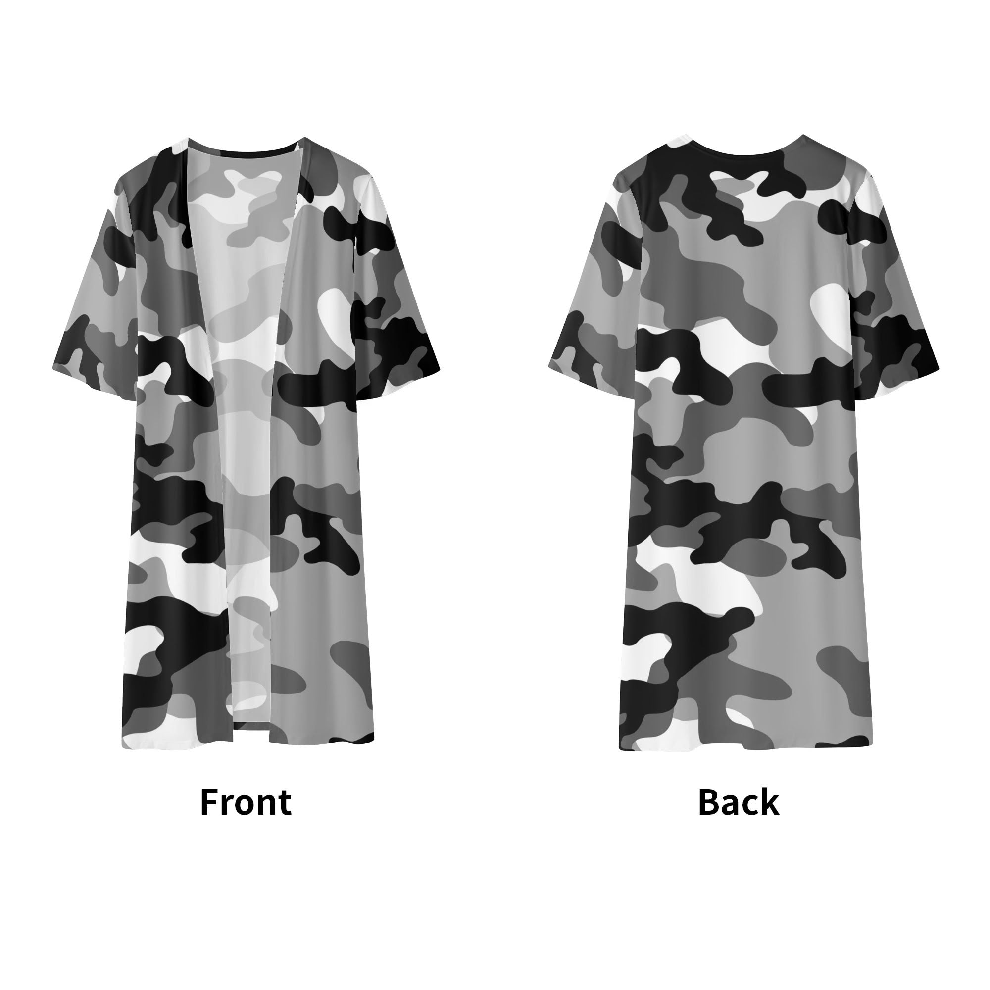 Camo Kimono | Black, White & Gray Half Sleeve