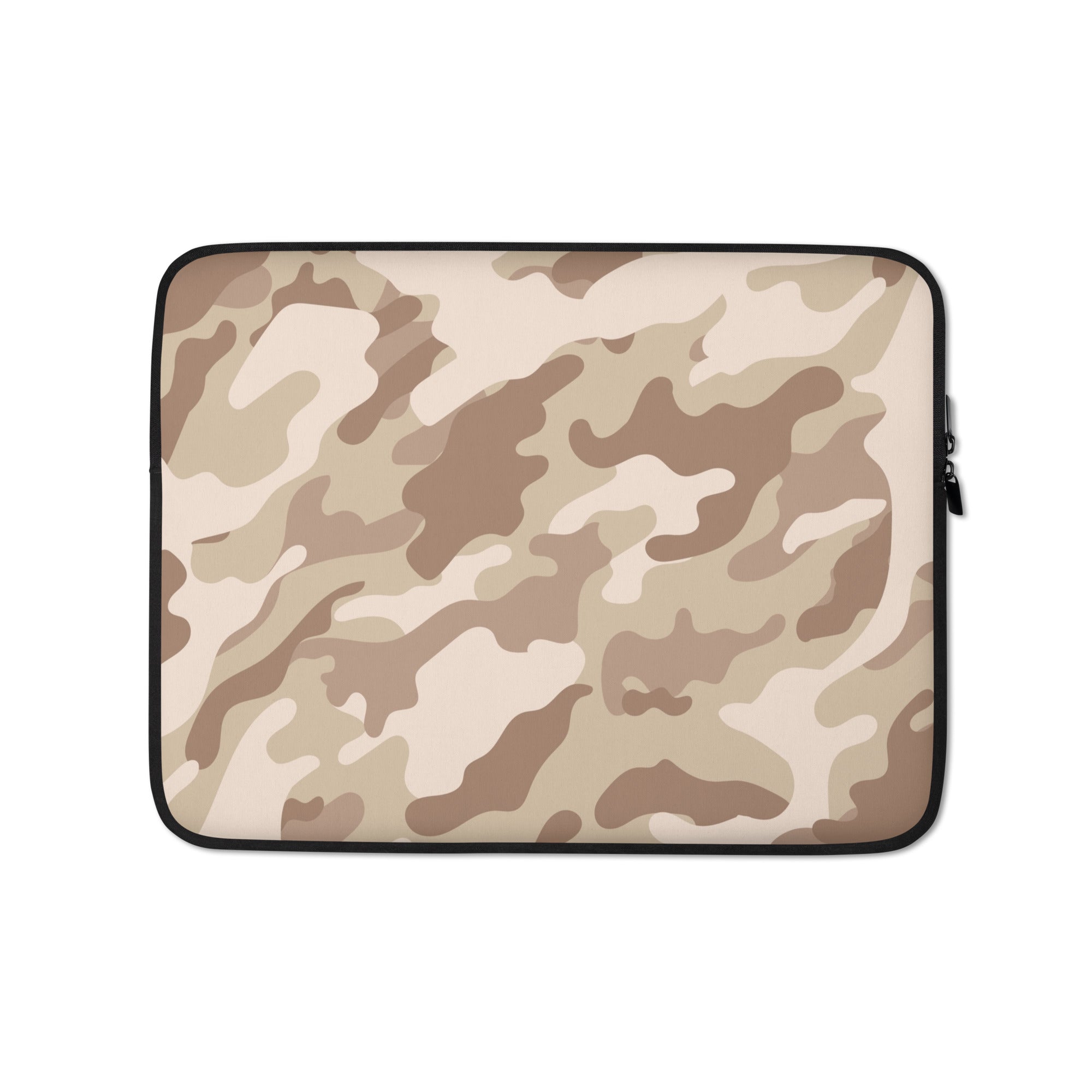 This Camo Laptop Sleeve in Desert Brown provides stylish and protective storage for laptops. Made with durable and water-resistant fabric, it offers reliable defense against the elements. With its camouflage design, it's perfect for outdoor enthusiasts. Keep your laptop safe and secure on your next adventure with this sleek laptop sleeve.