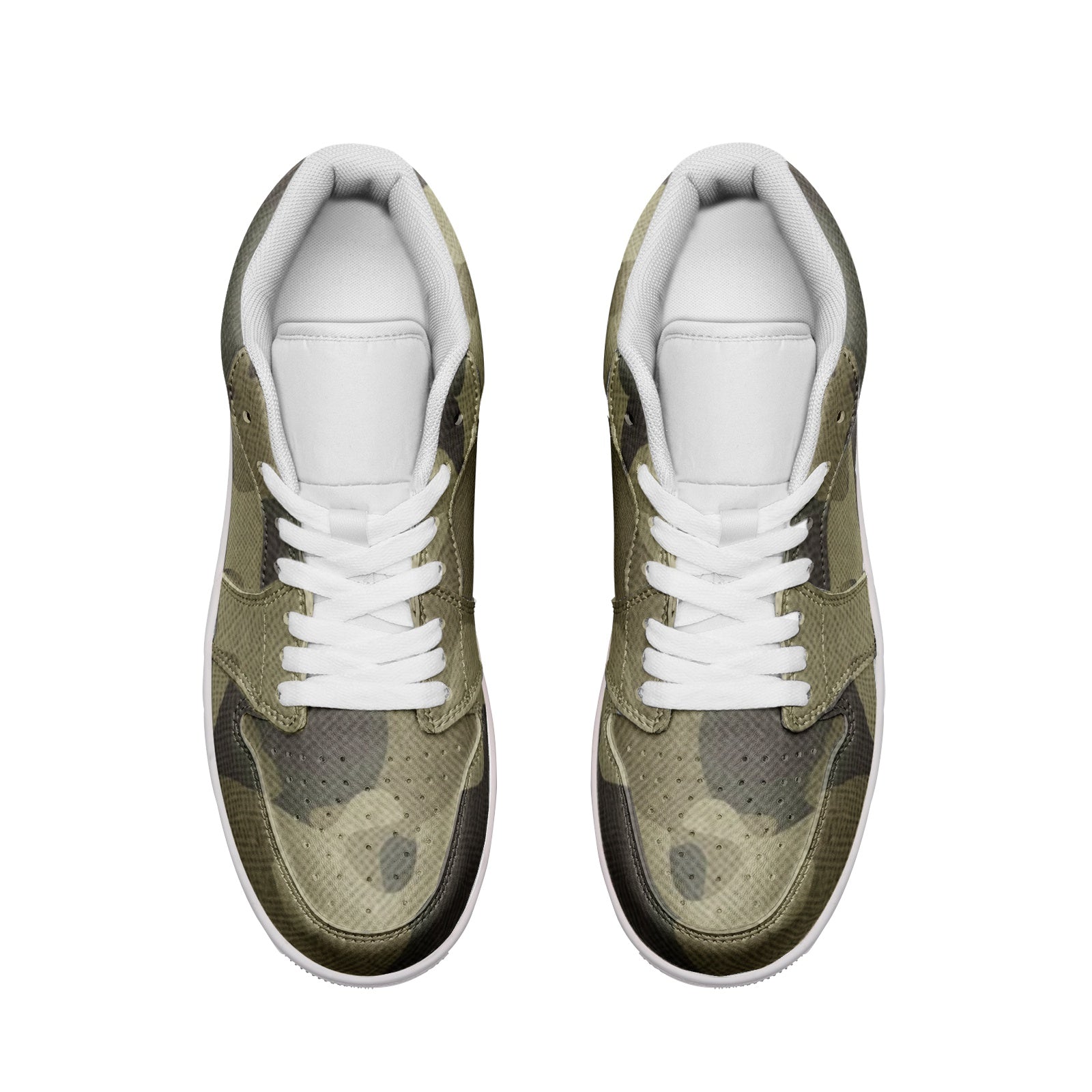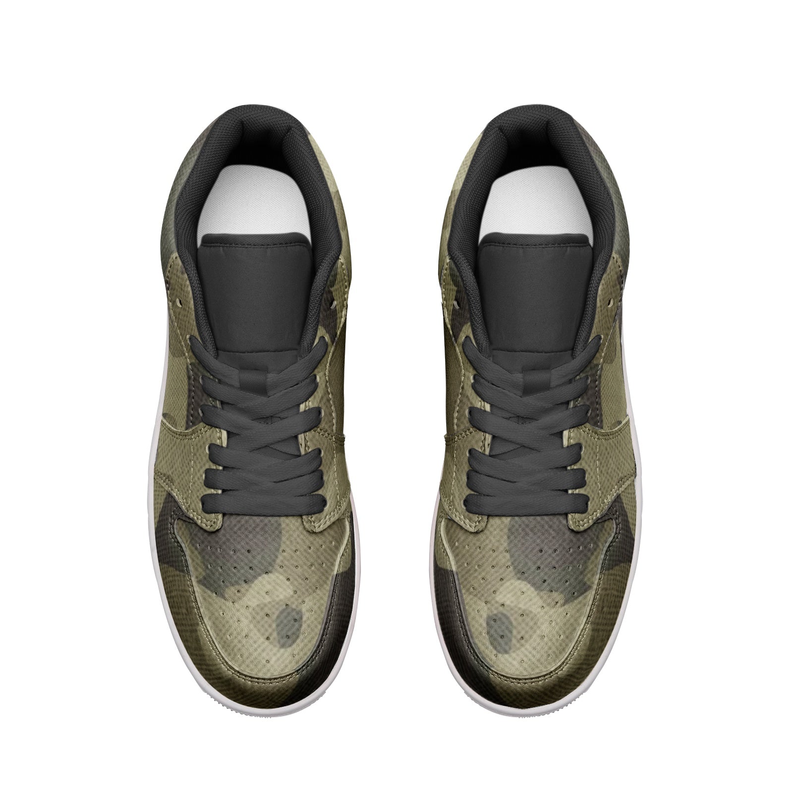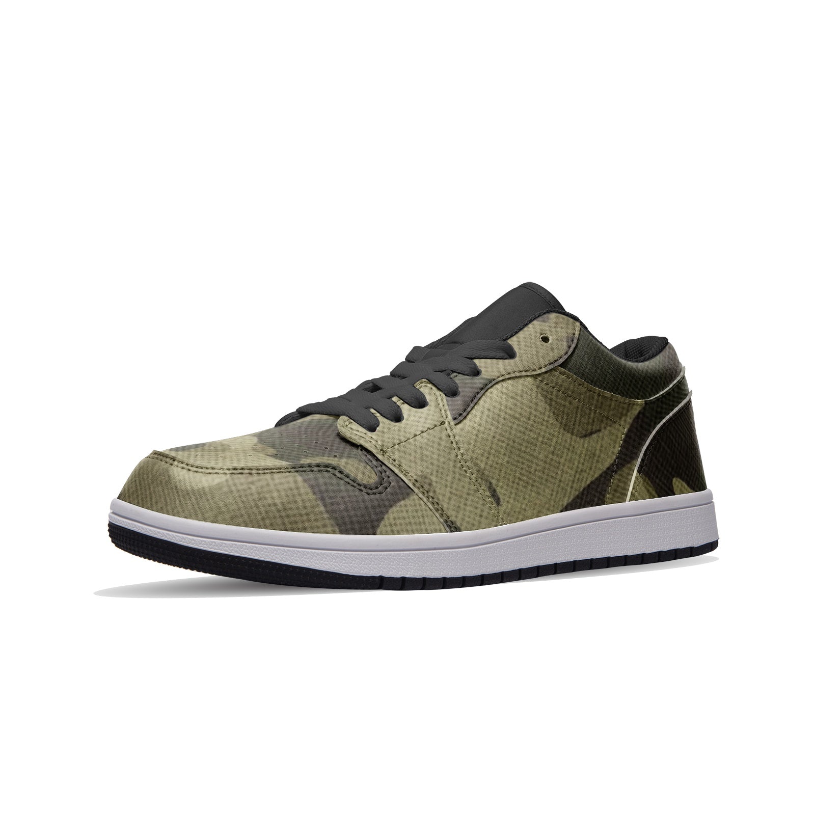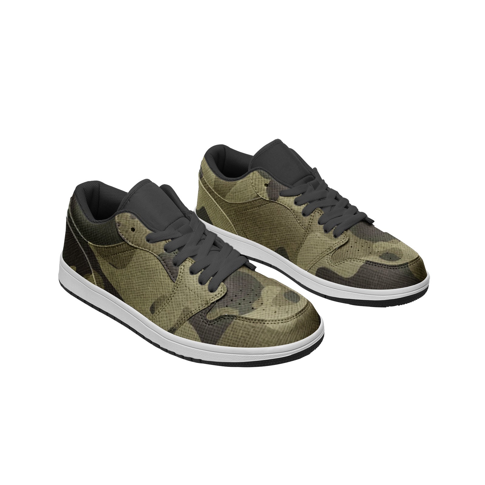 Experience the perfect blend of style and functionality with our Camo Low Top Leather Sneakers. Crafted with green fabric and a sleek leather design, these sneakers are both stylish and durable. Perfect for any outdoor adventure or casual occasion, these sneakers provide both comfort and a touch of ruggedness.