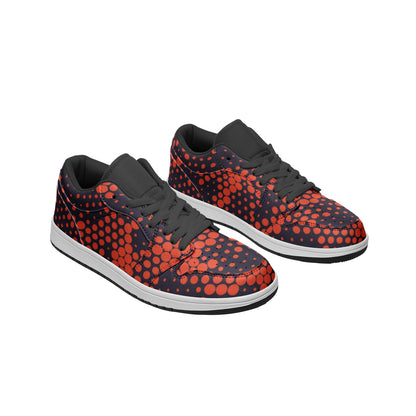 Experience the perfect blend of style and comfort with our Camo Low Top Leather Sneakers. Crafted with top-quality leather, these sneakers feature a unique orange and blue digital camouflage pattern, making them a bold statement piece. With a low-top design and a lightweight construction, these sneakers are perfect for all-day wear. Elevate your sneaker game today.