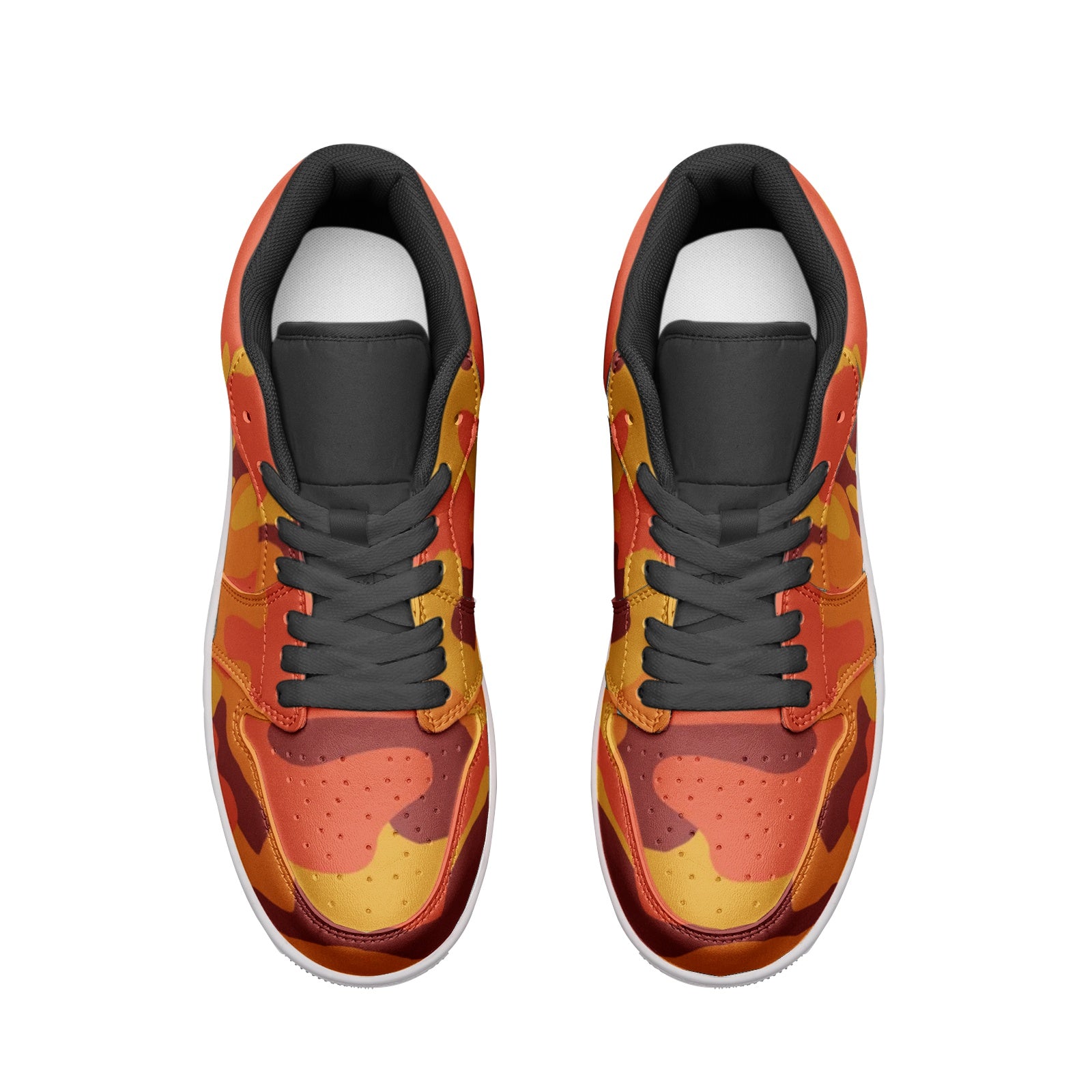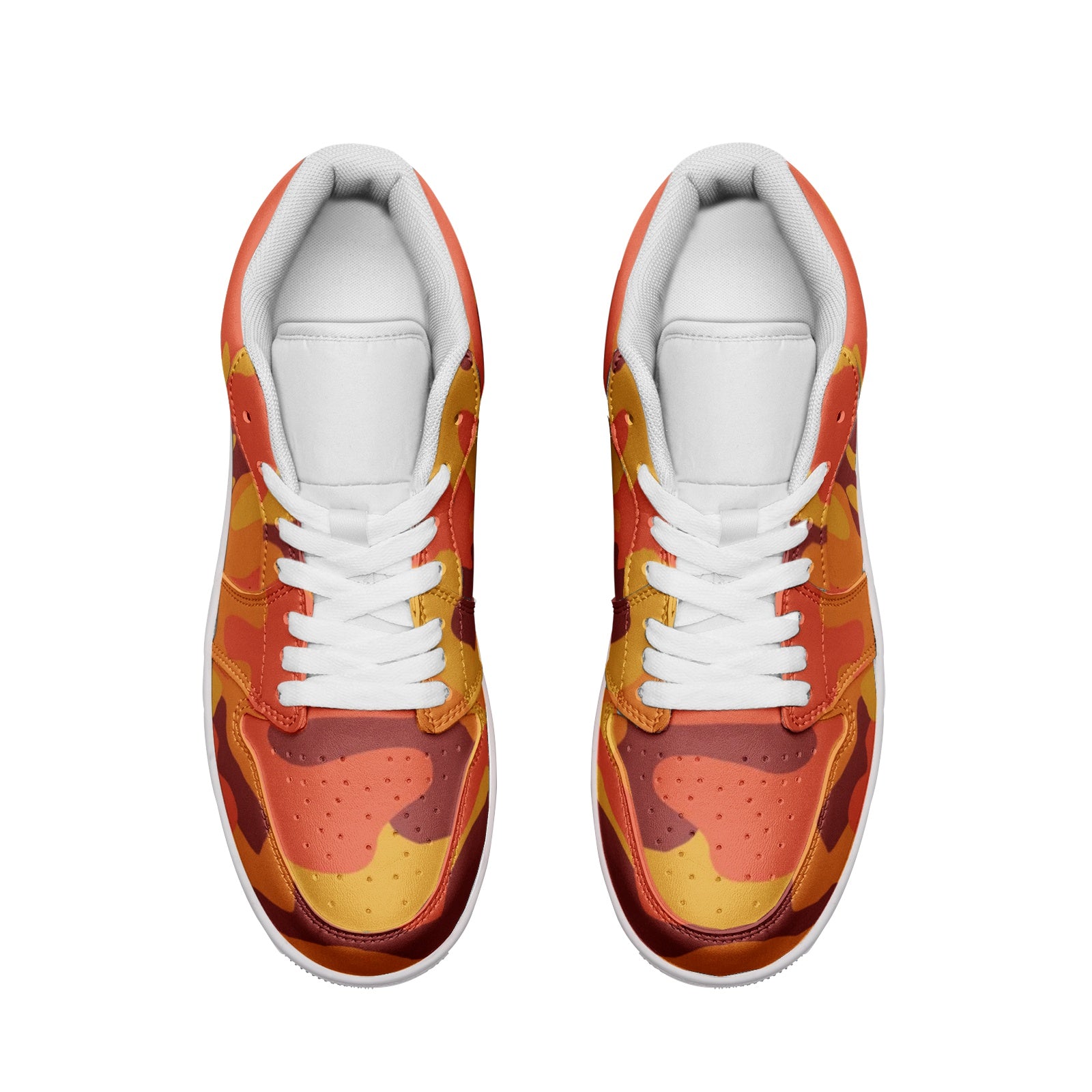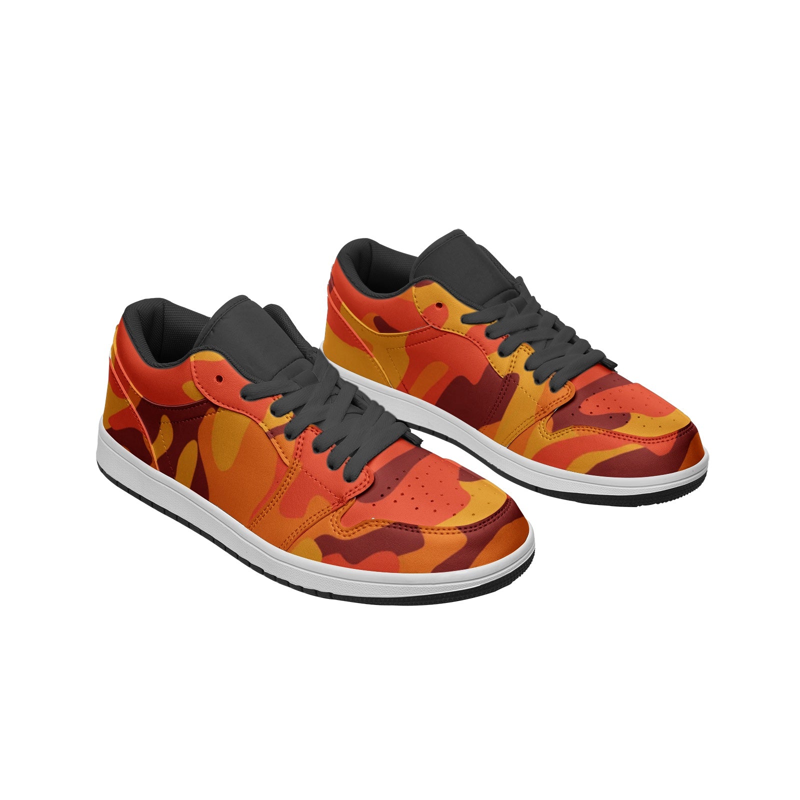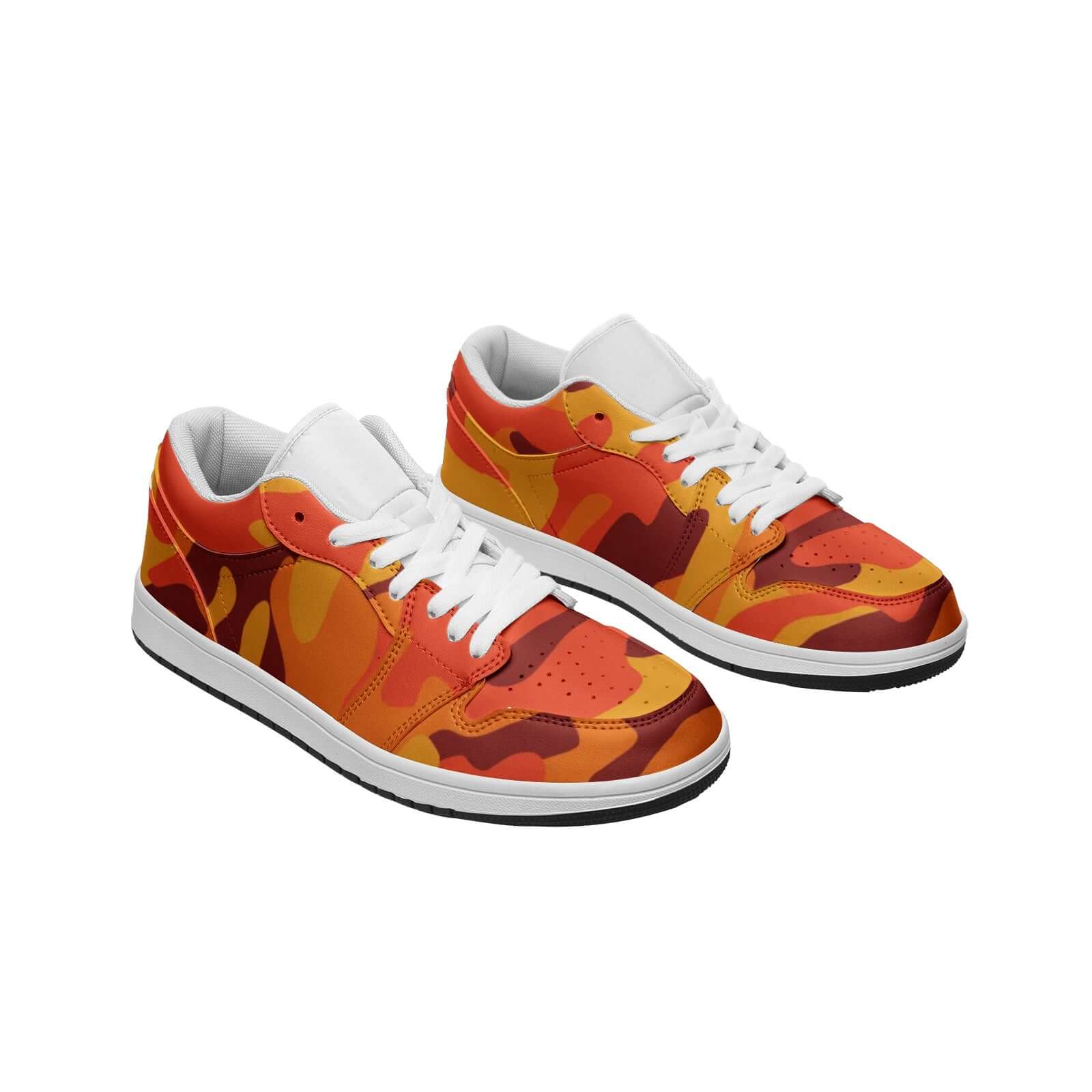 Experience style and comfort with our Camo Low Top Leather Sneakers! Made with durable leather and featuring a unique orange and red camouflage pattern, these sneakers are perfect for any casual outing. The low top design offers both ankle support and breathability, making them ideal for all-day wear. Upgrade your shoe game today!