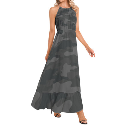 Camo Maxi Dress | Black Camouflage | Ruffle Hem