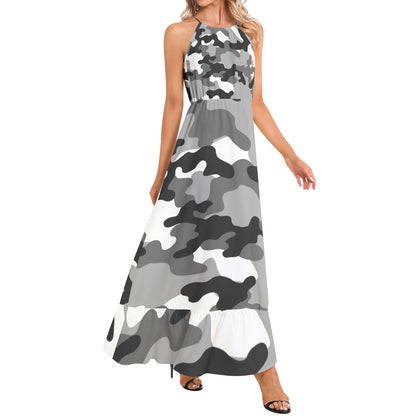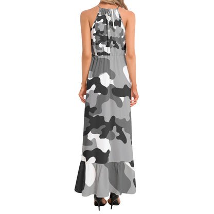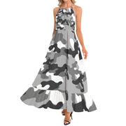 Camo Maxi Dress | Gray, Black, and White Camouflage