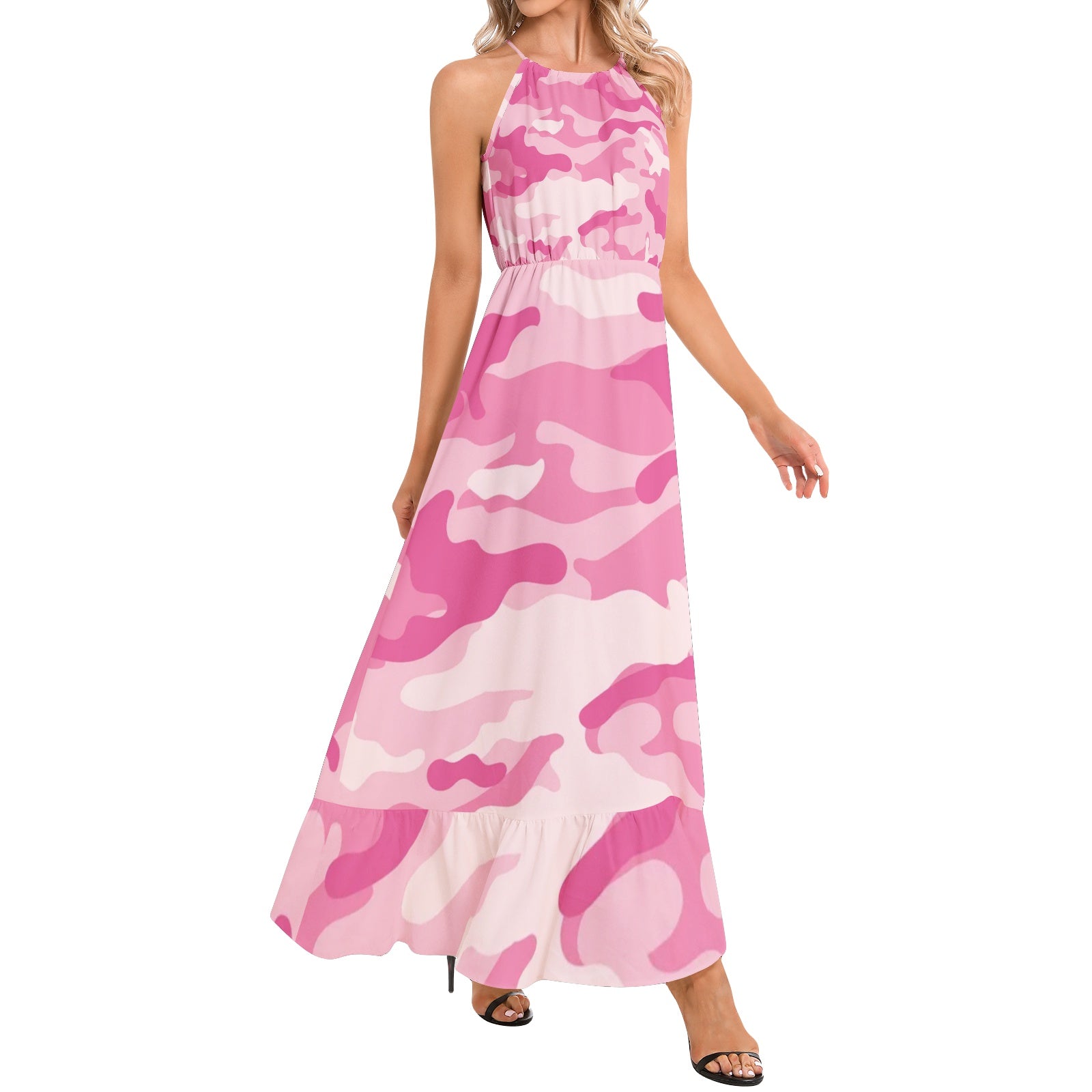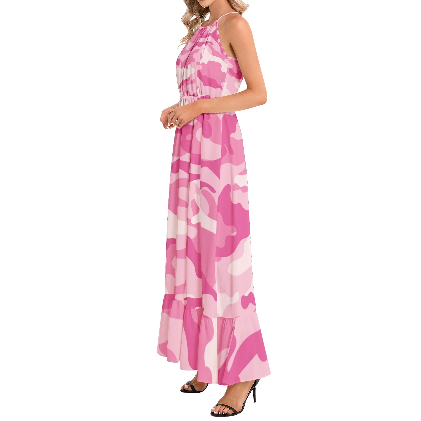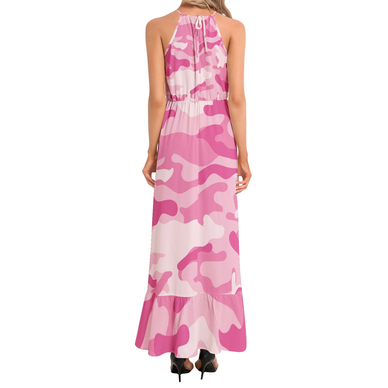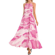 Look chic and trendy in our Camo Maxi Dress. Made with Lavender Pink Camouflage print and adorned with a Ruffle Hem, this dress is perfect for any occasion. Stand out in style with this unique dress that combines comfort and fashion.