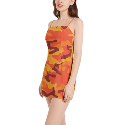 Camo Mini Dress | Spaghetti Strap | Orange & Red
