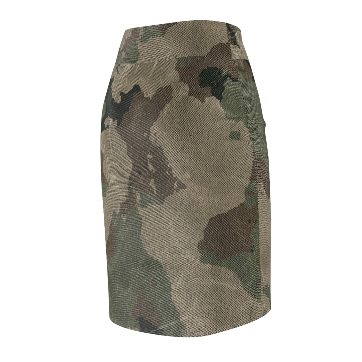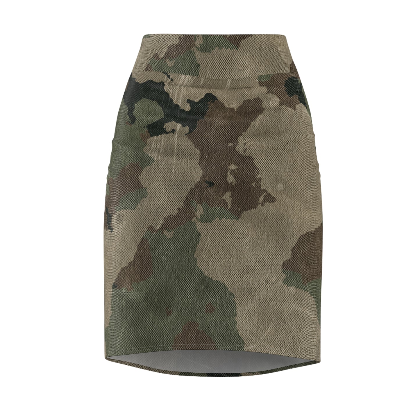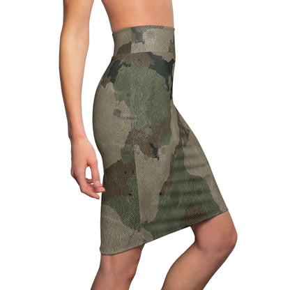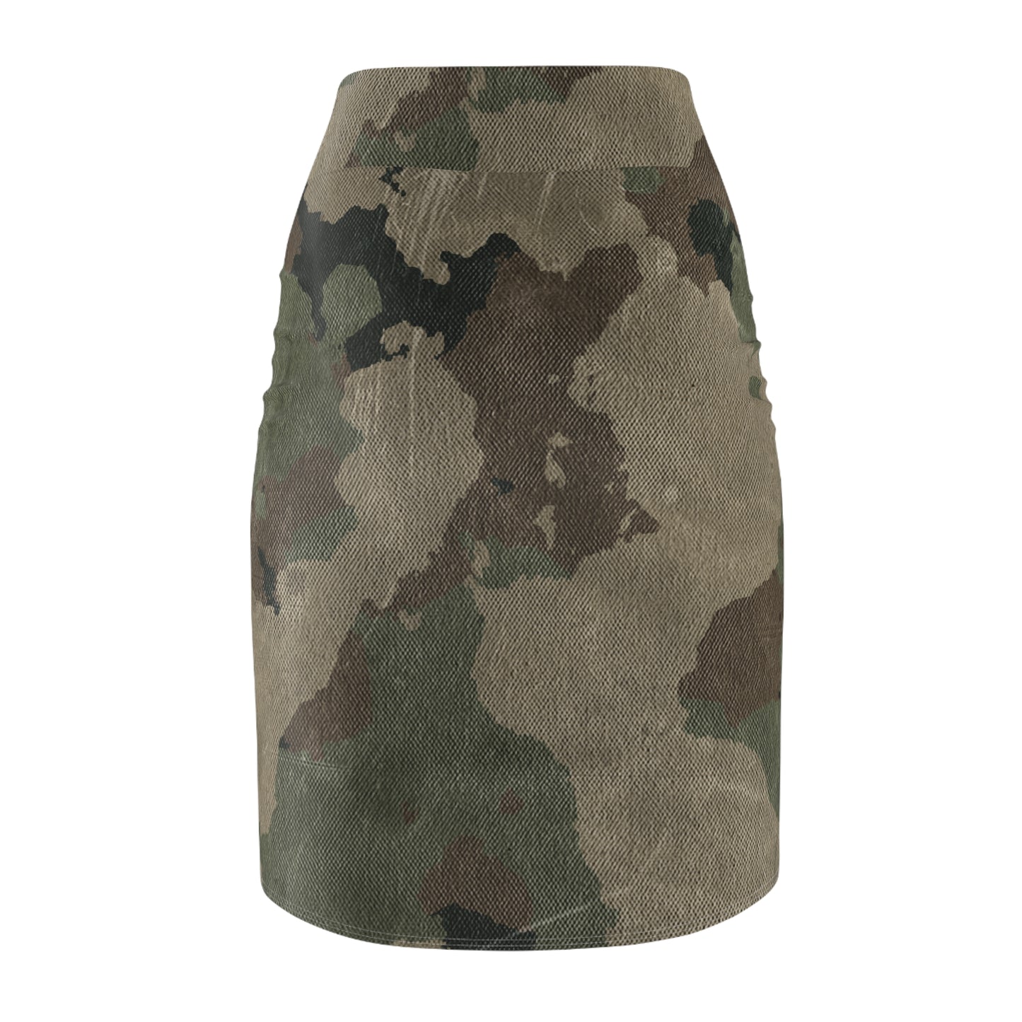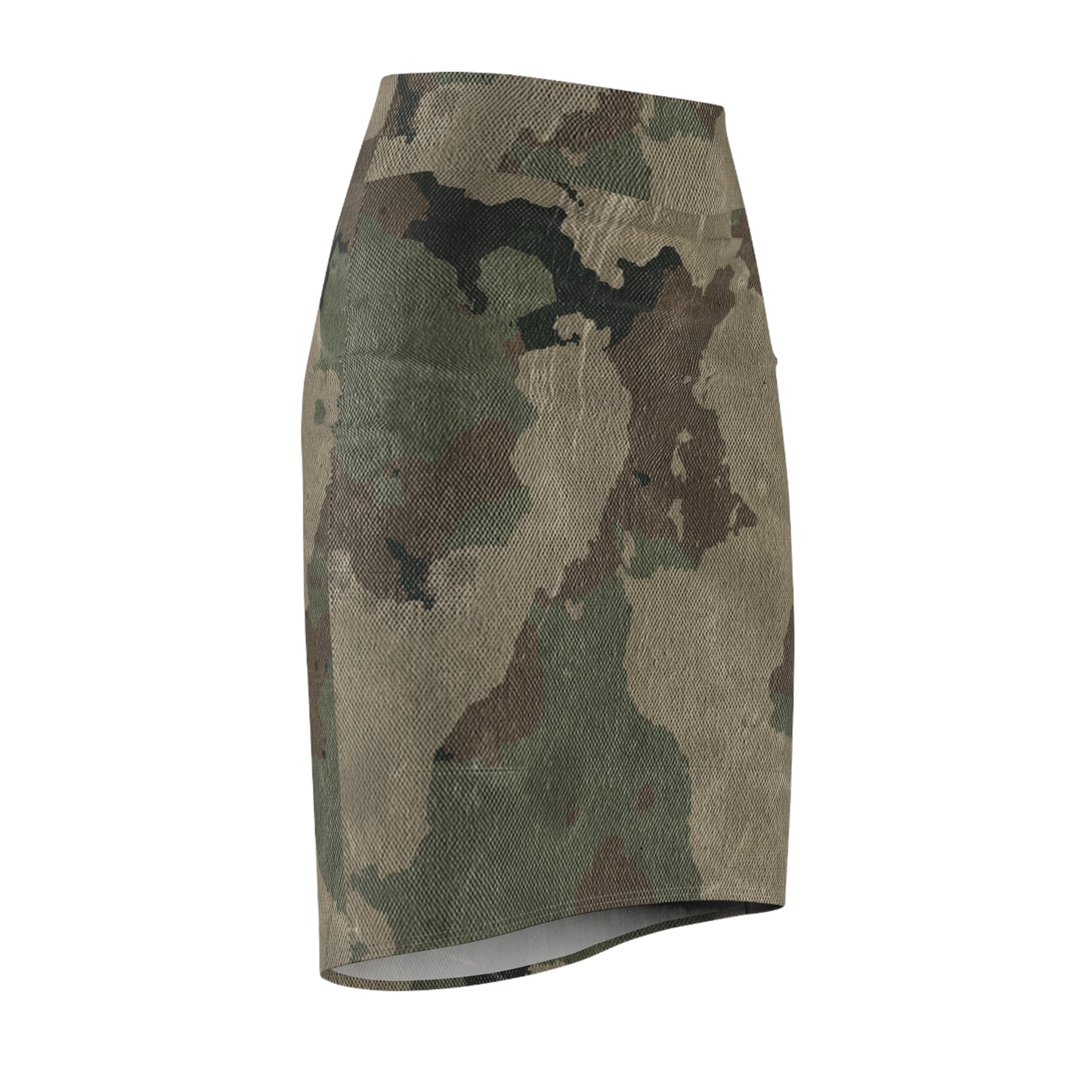 Expertly crafted for a sleek, flattering fit, our Camo Mini Skirt in Pencil Cut showcases a modern, edgy style. Made with high-quality fabric in a dirty brown camo print, this skirt offers both comfort and versatility. Perfect for adding a touch of streetwear to your wardrobe.