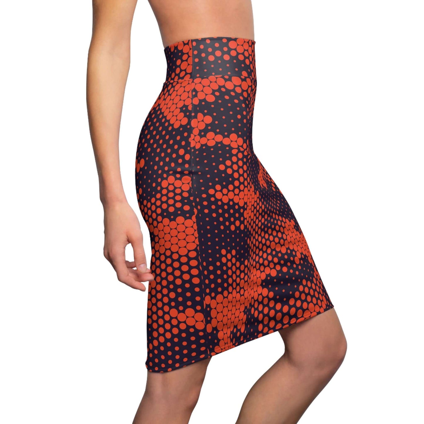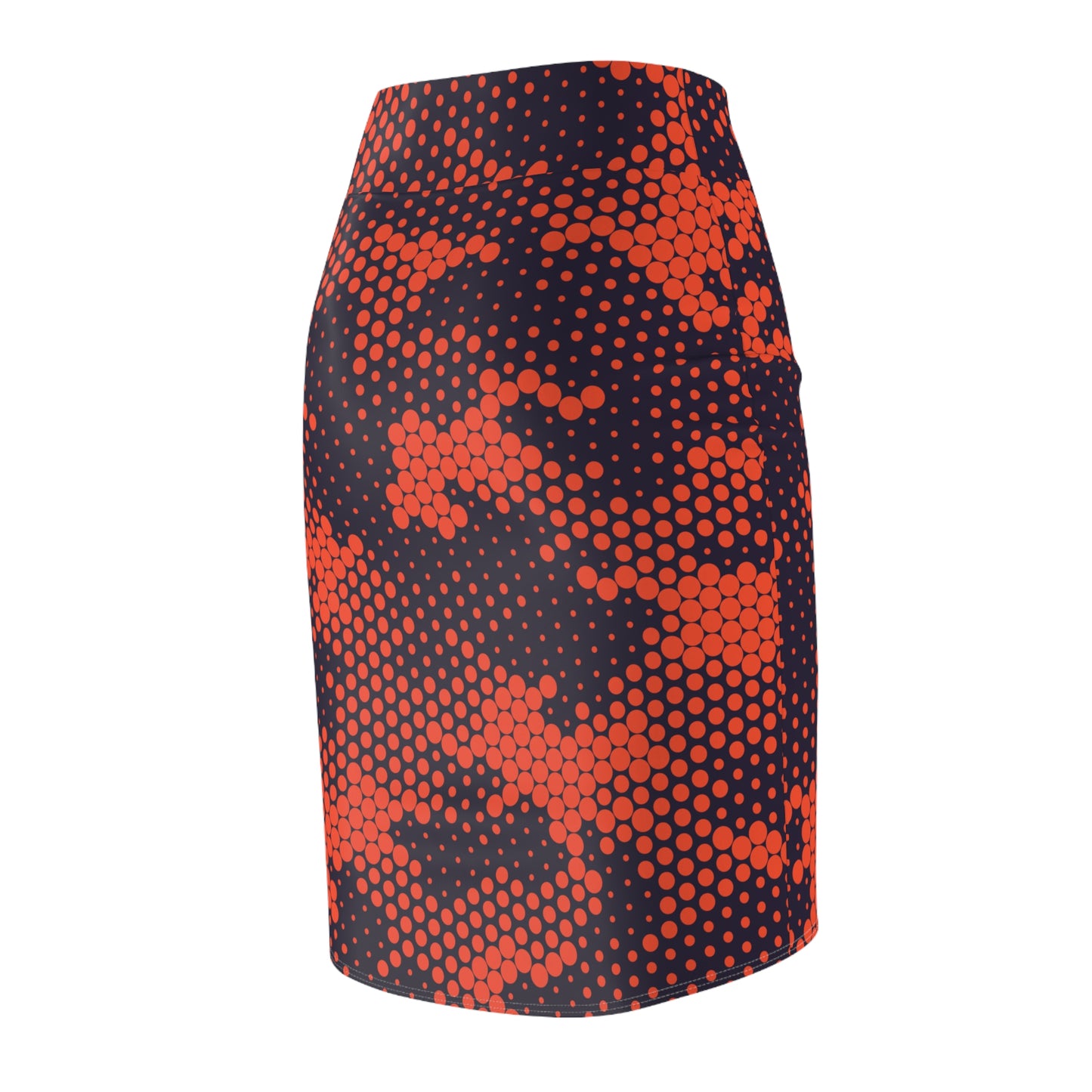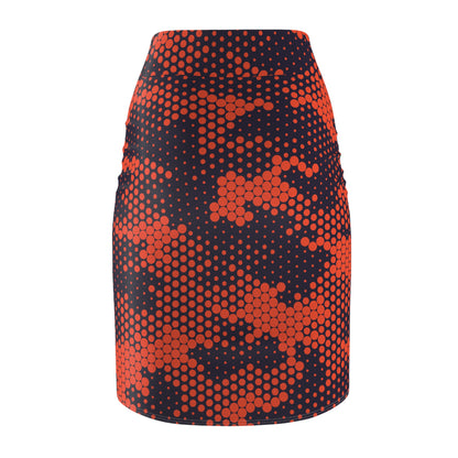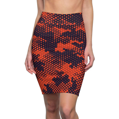 This Camo Mini Skirt features a sleek pencil cut in a unique orange and blue digital camo print. Made for the modern woman, this skirt will add a touch of edgy style to any outfit. Its bold design and figure-flattering fit make it a must-have for any fashion-forward wardrobe. Perfect for a day at the office or a night out on the town.