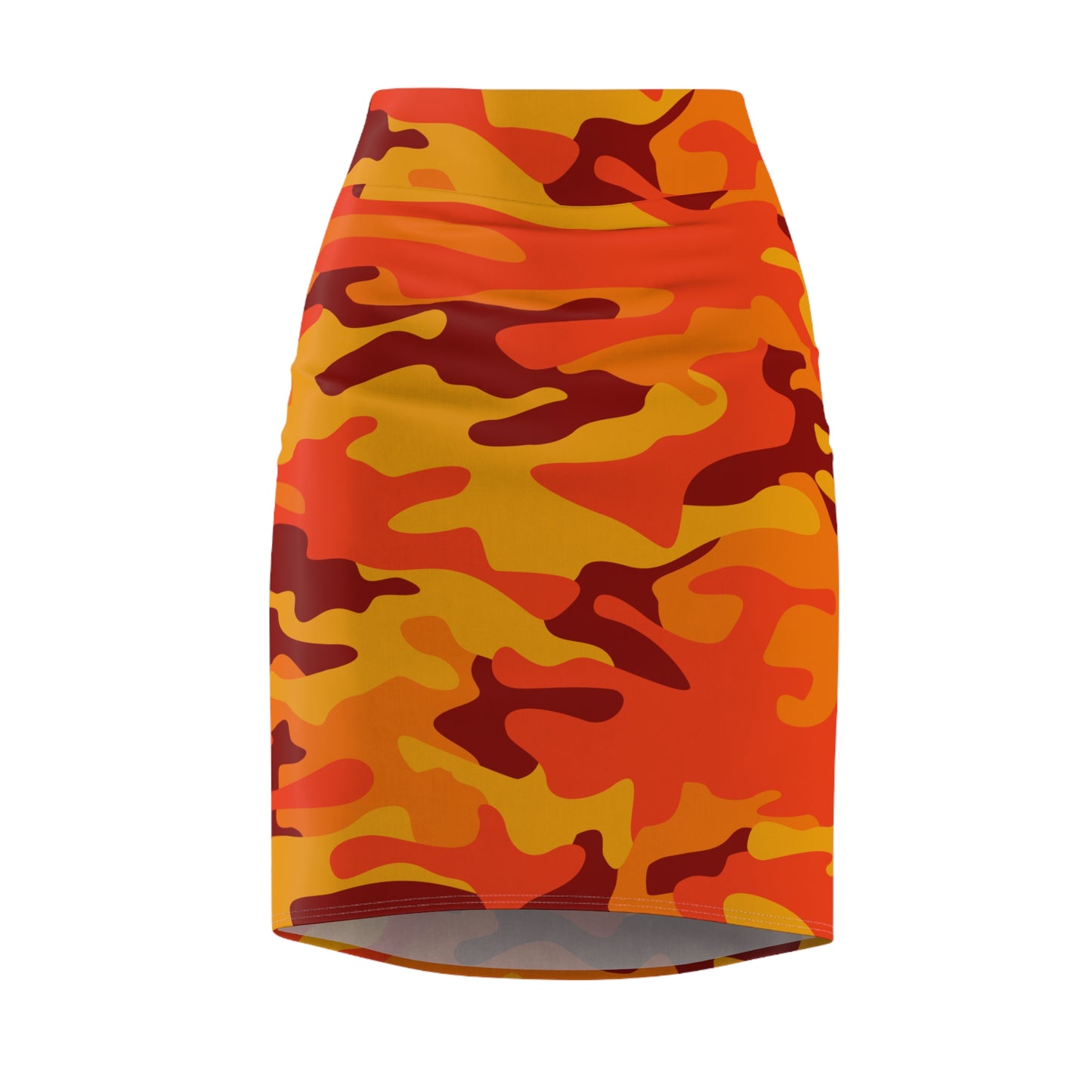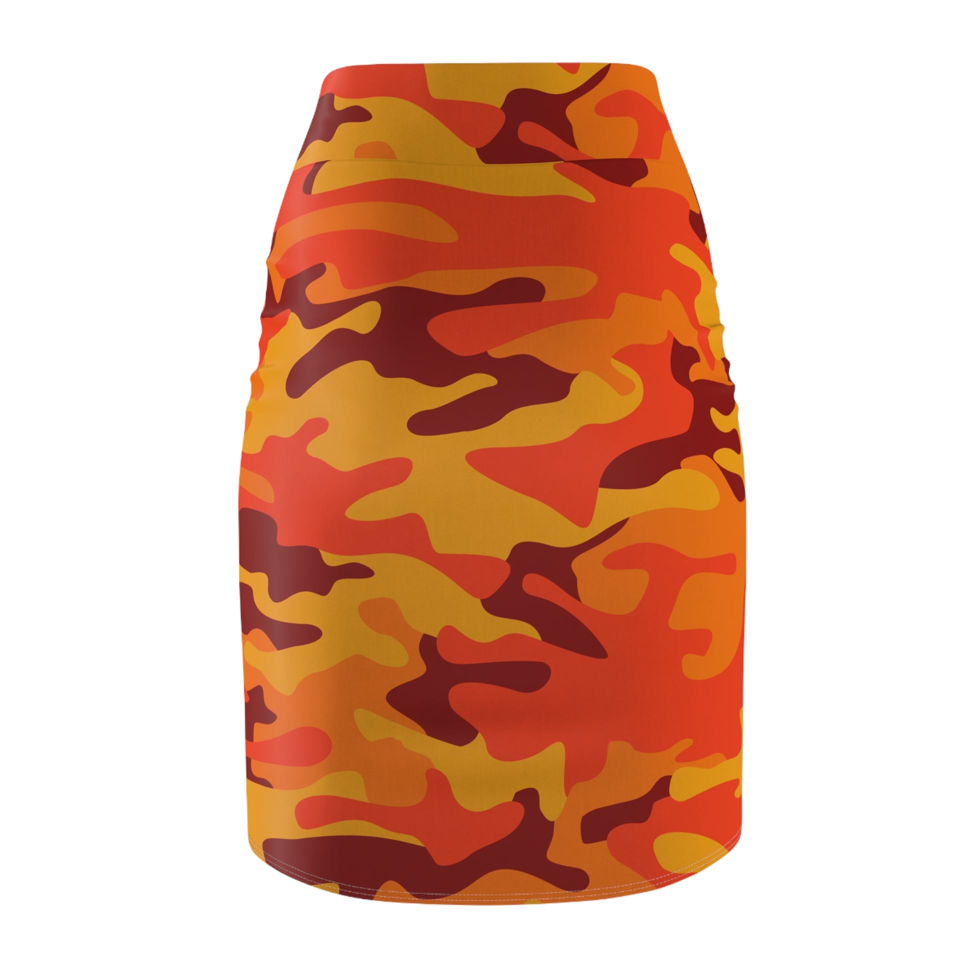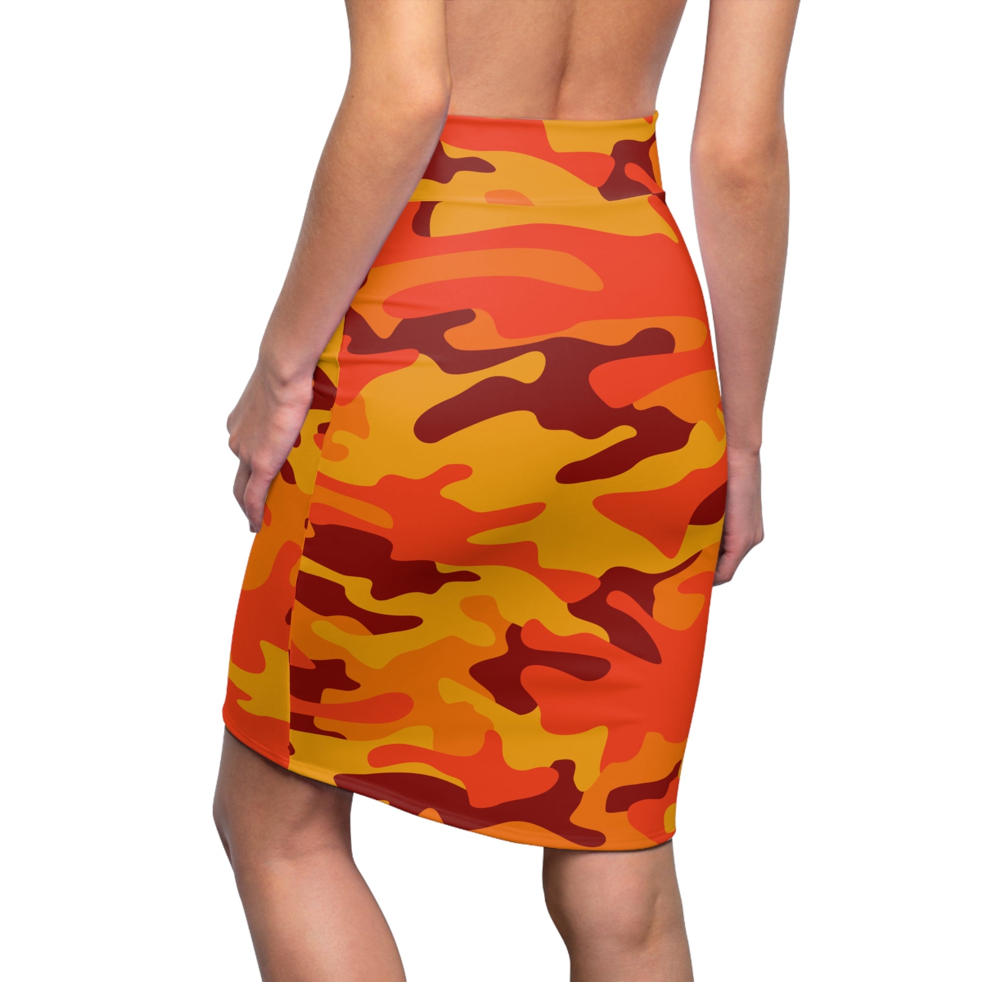 Camo Mini Skirt | Pencil Cut | Orange & Red