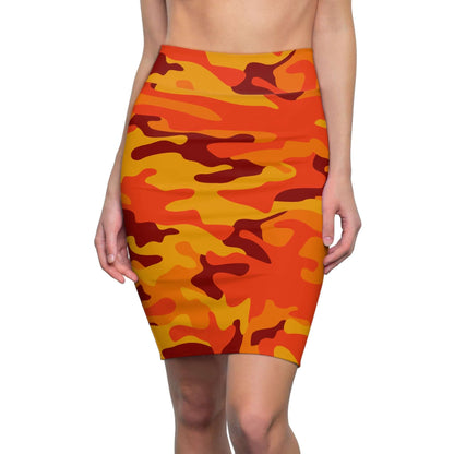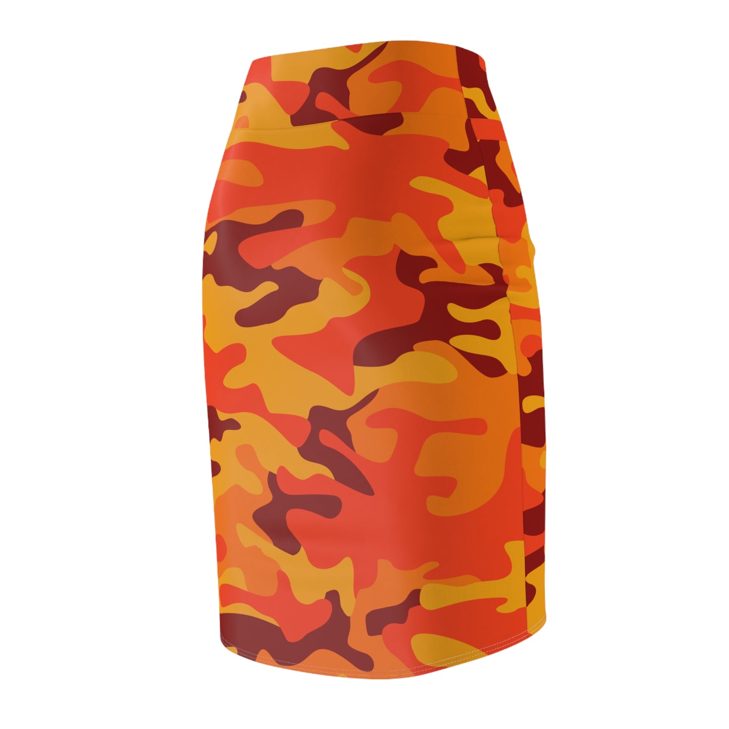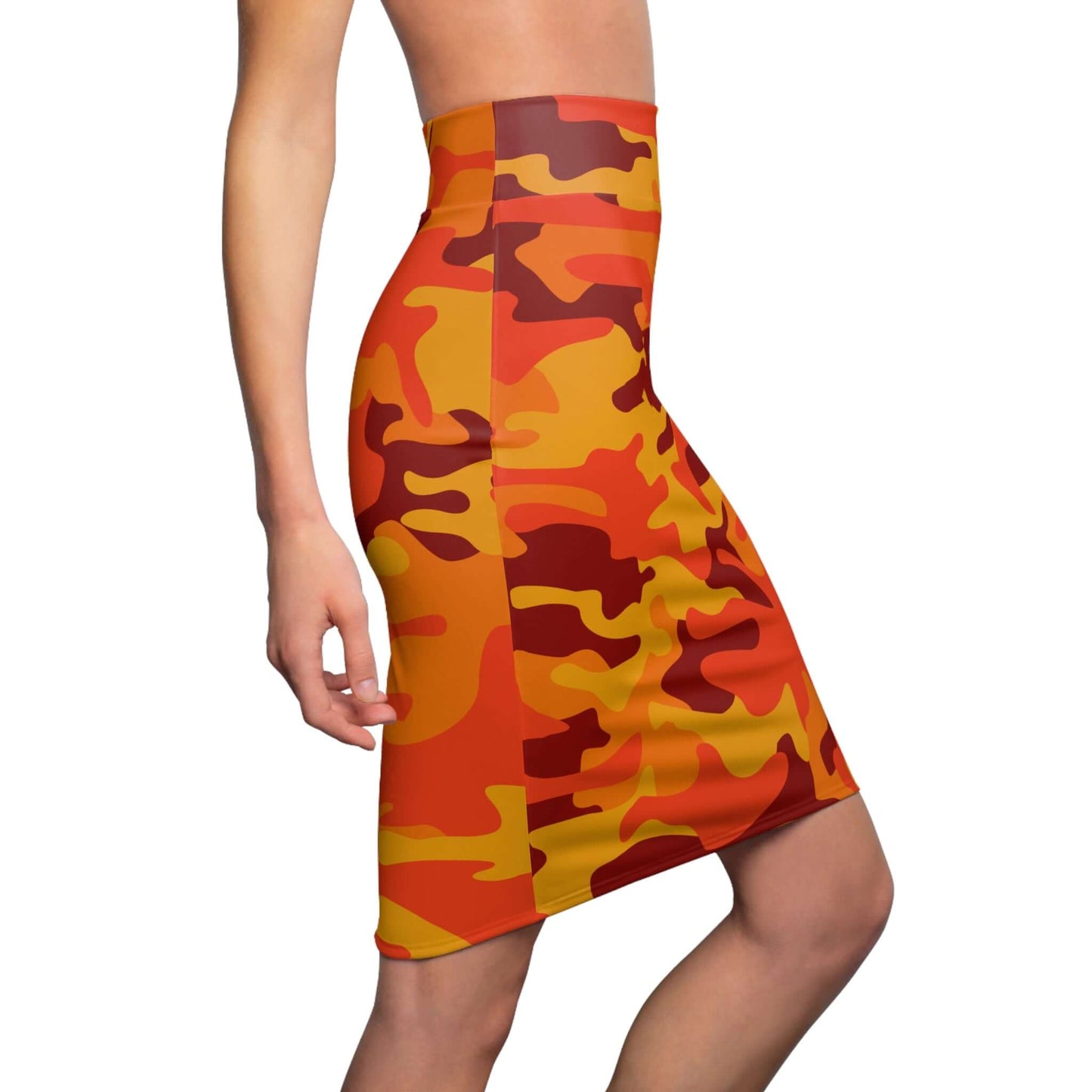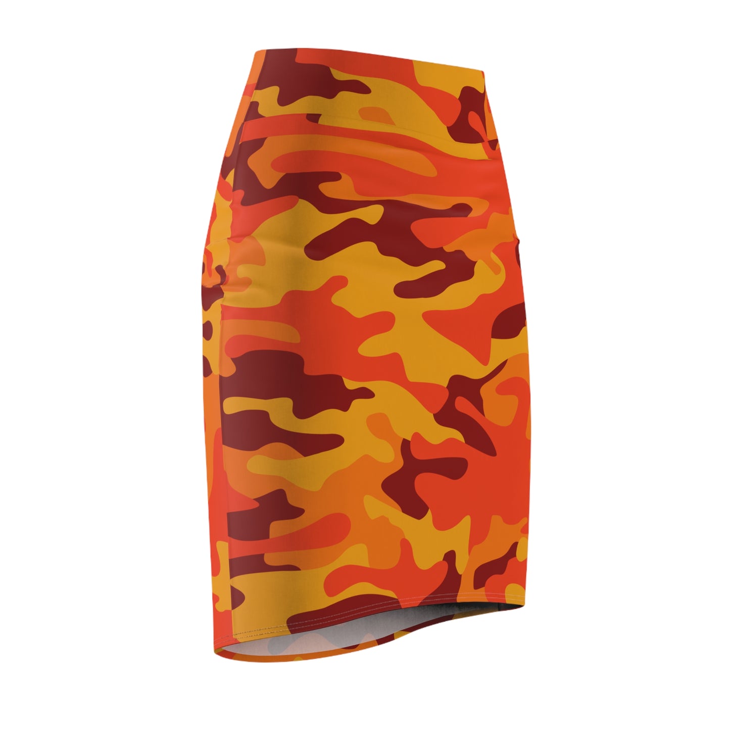 Camo Mini Skirt | Pencil Cut | Orange & Red