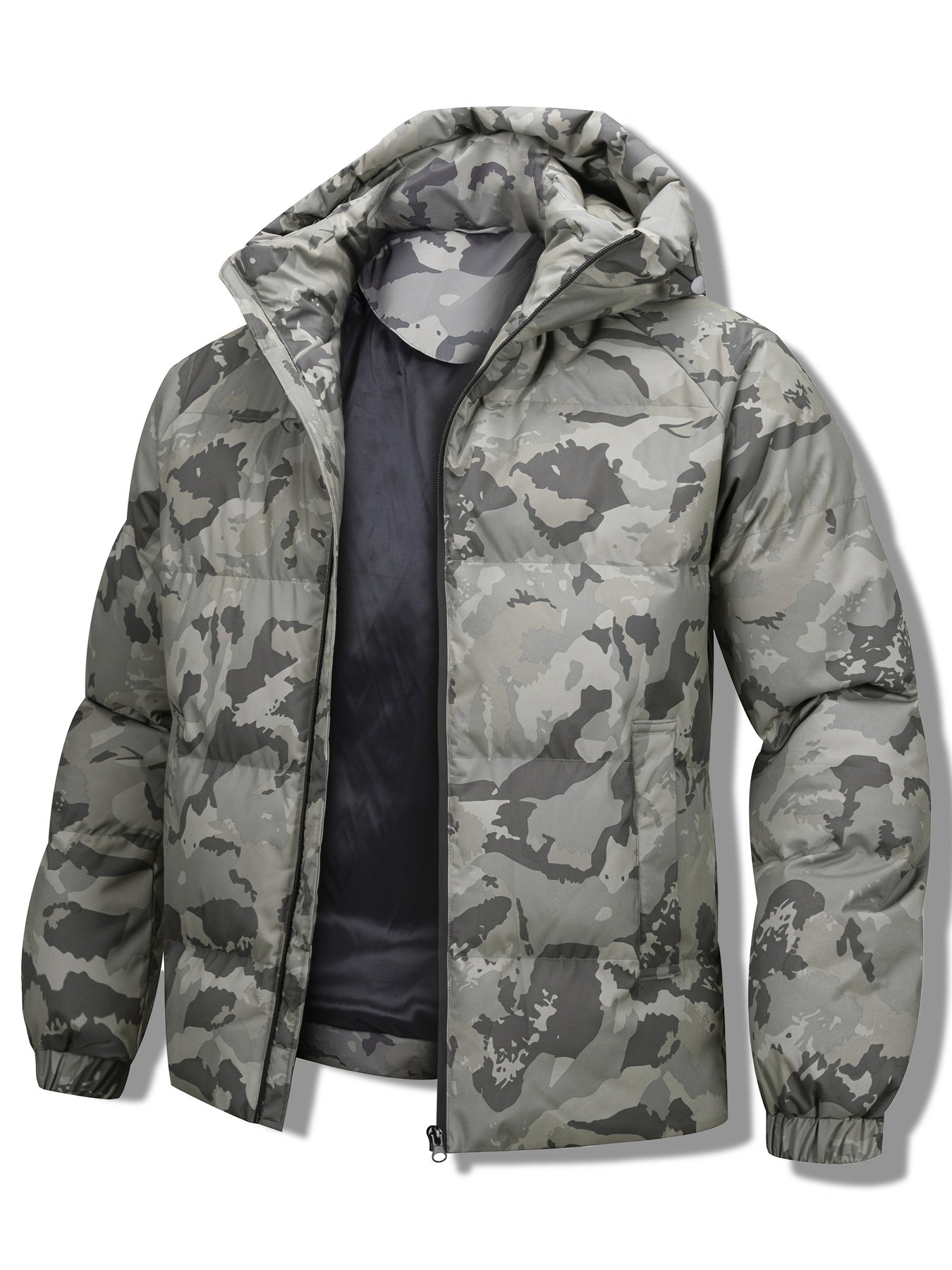 Camo Mountain Jacket for Men: Warm Faux Down Zip-Up Winter Coat