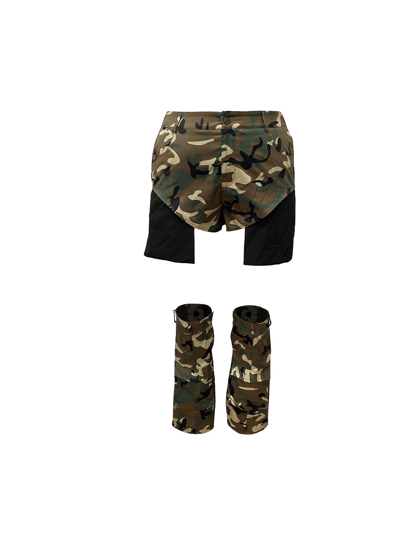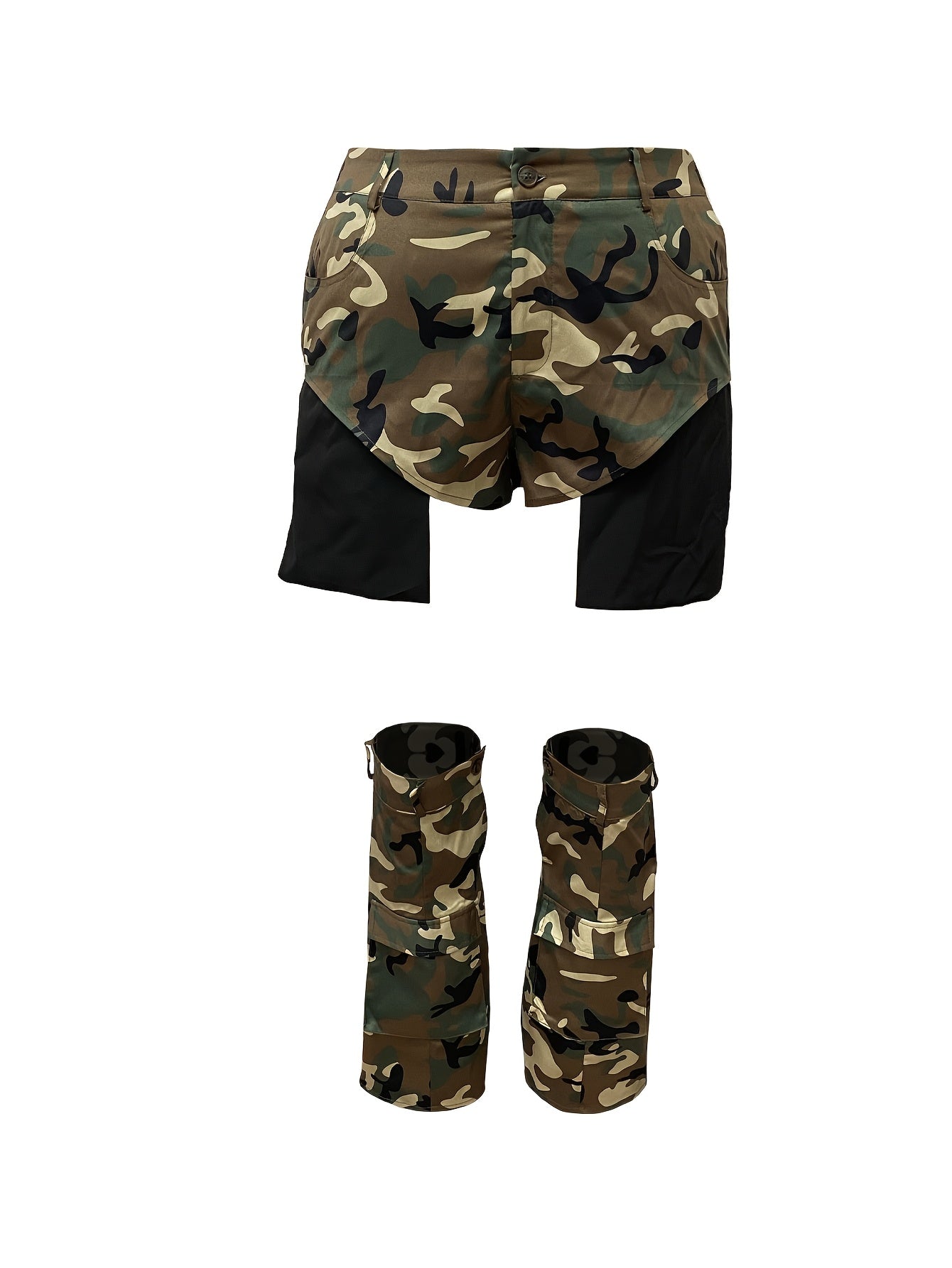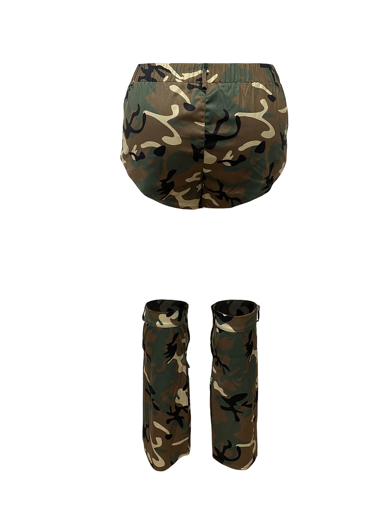Camo Print 3pcs Shorts Set: High-Waisted, Straight-Leg Booties, All-Season