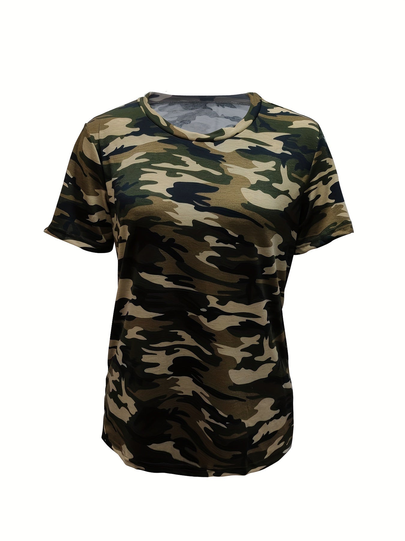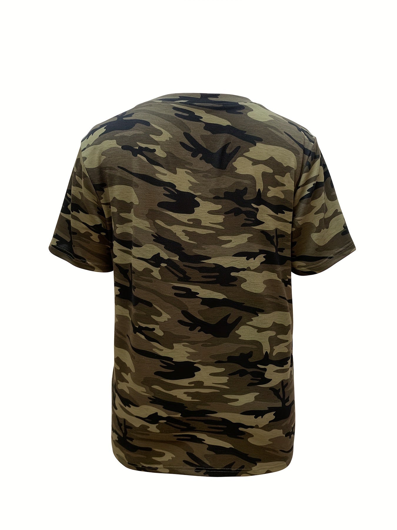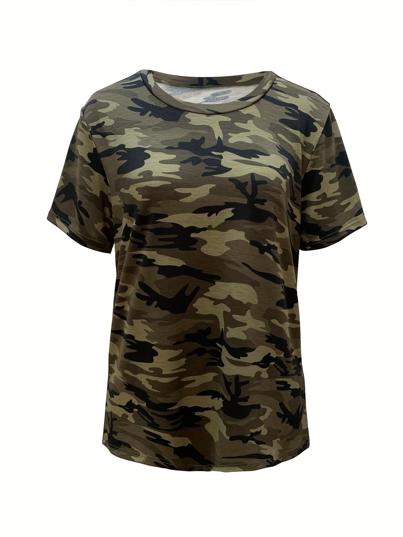 Camo Print Crew Neck T-Shirt, Casual Short Sleeve T-Shirt