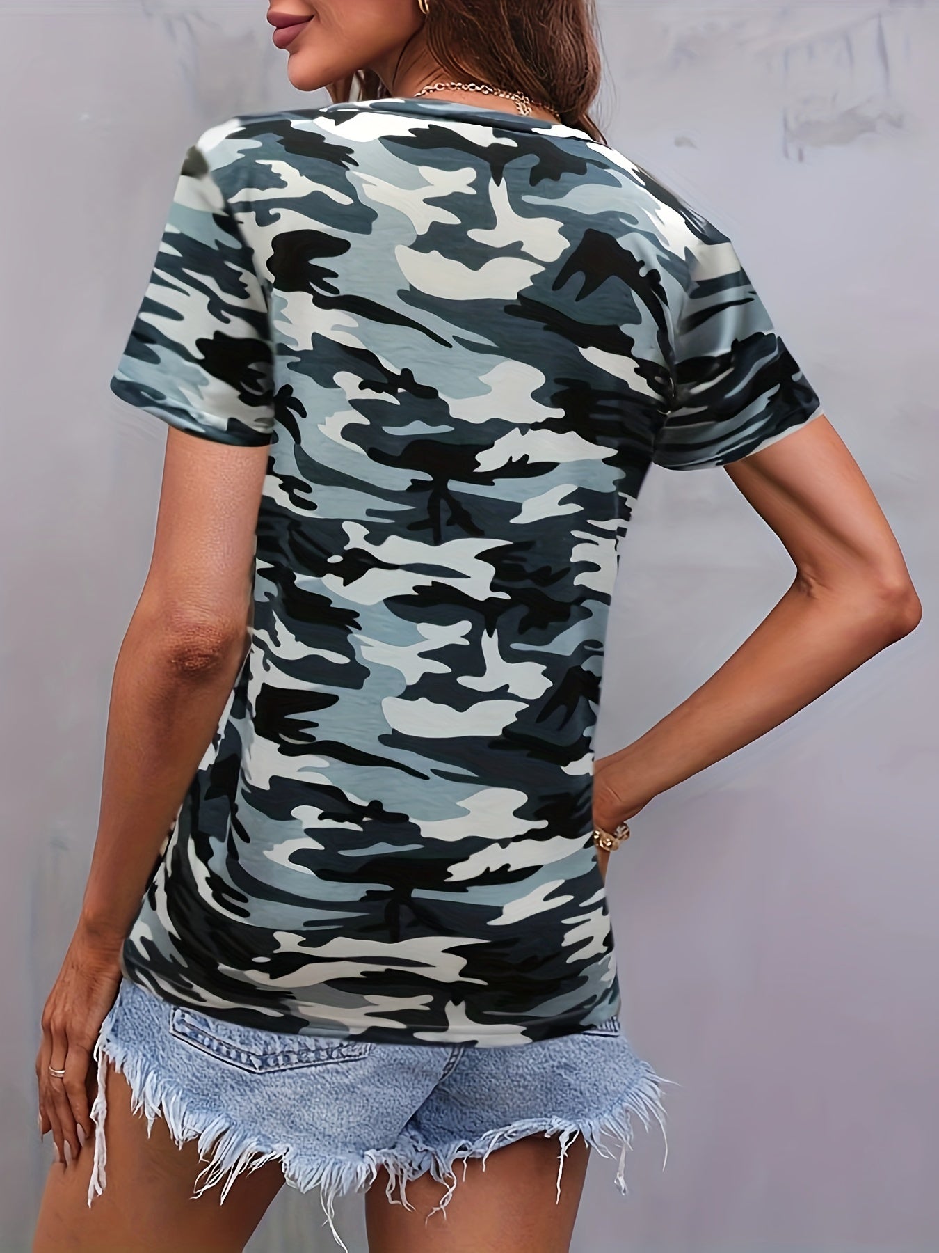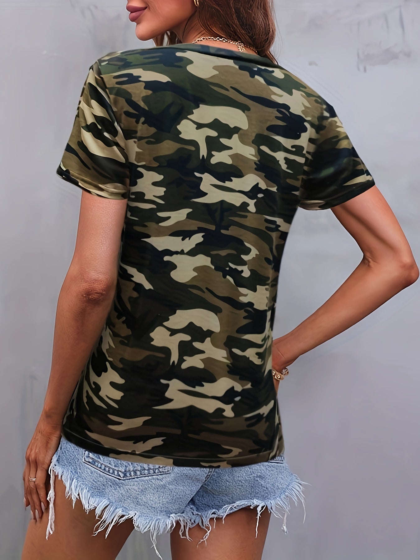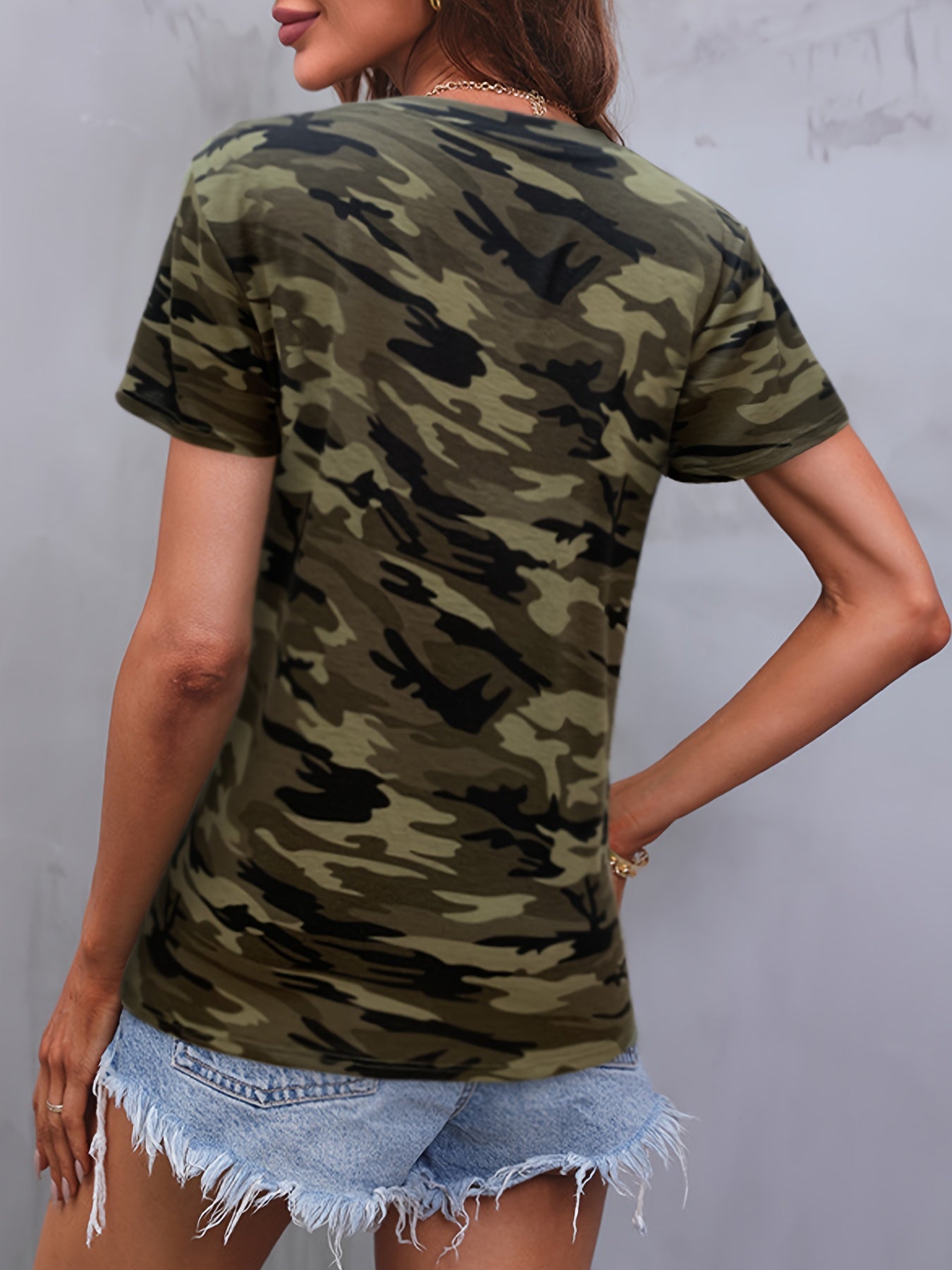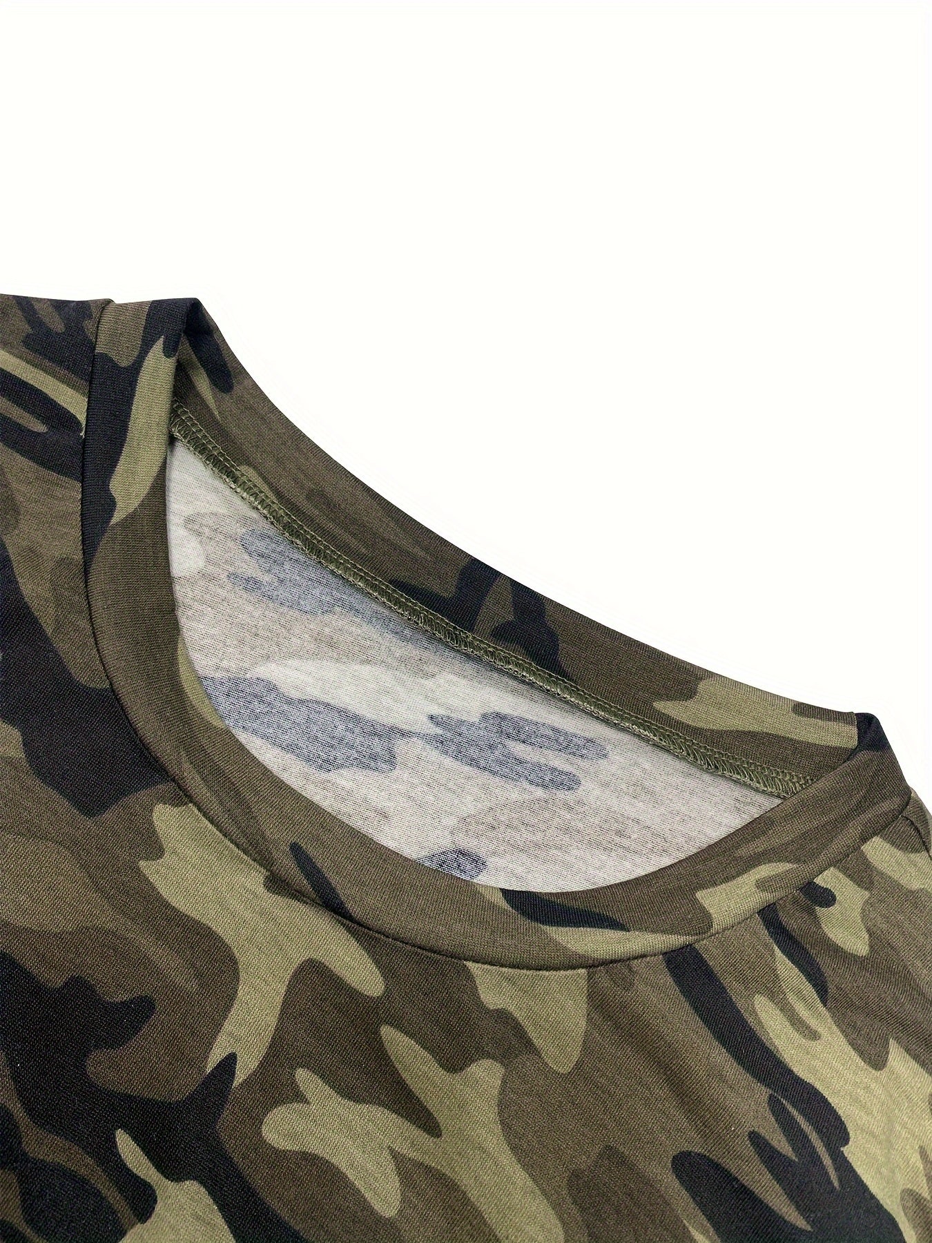 Camo Print Crew Neck T-Shirt, Casual Short Sleeve T-Shirt