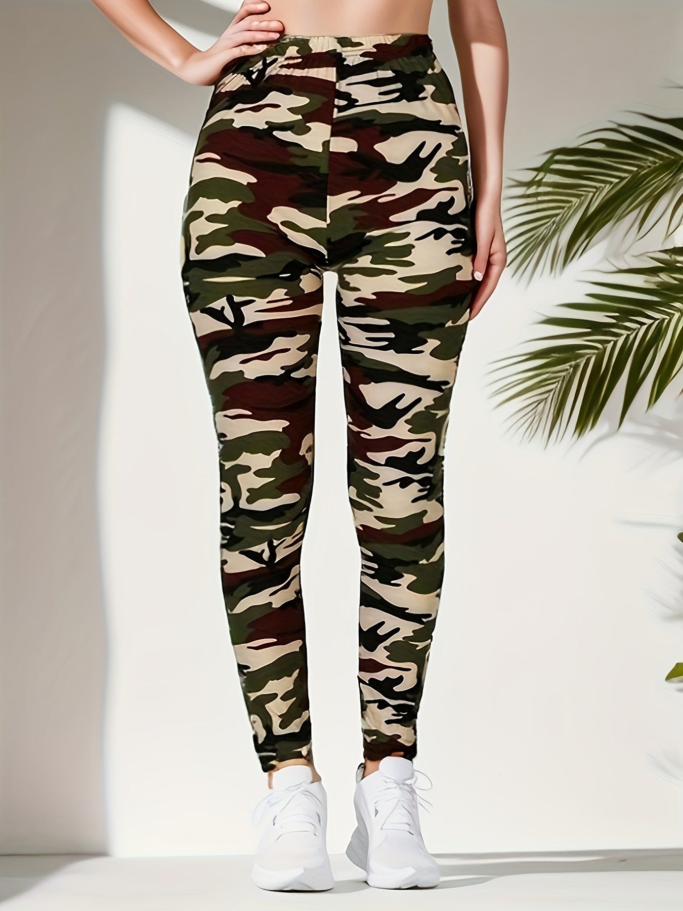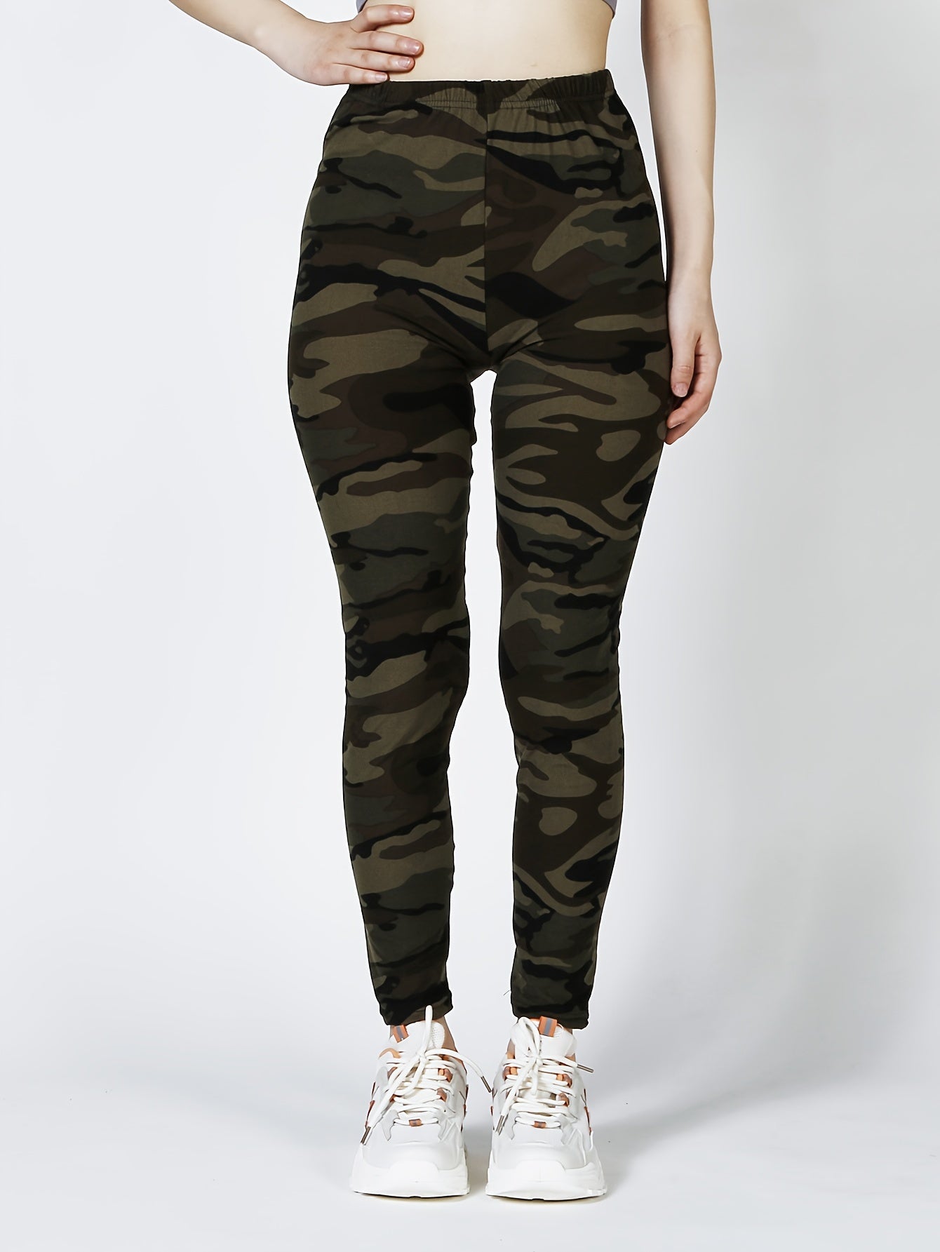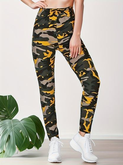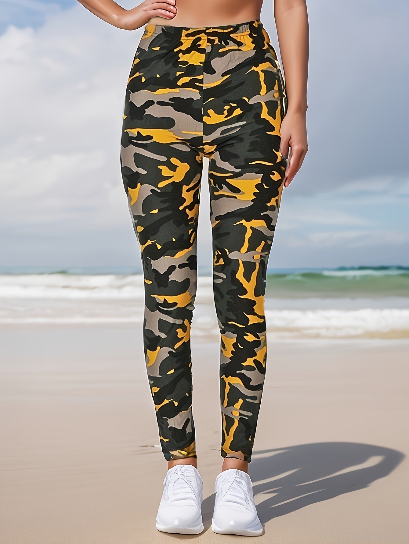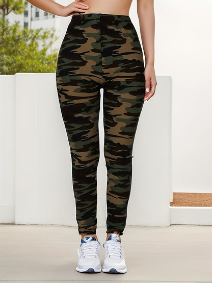 Camo Print Skinny Leggings, Casual High Waist Stretchy Leggings, Women's Clothing