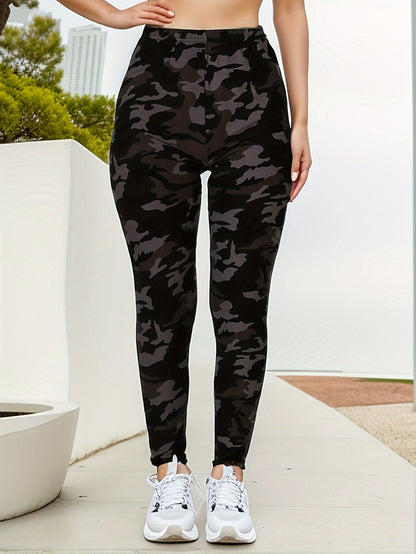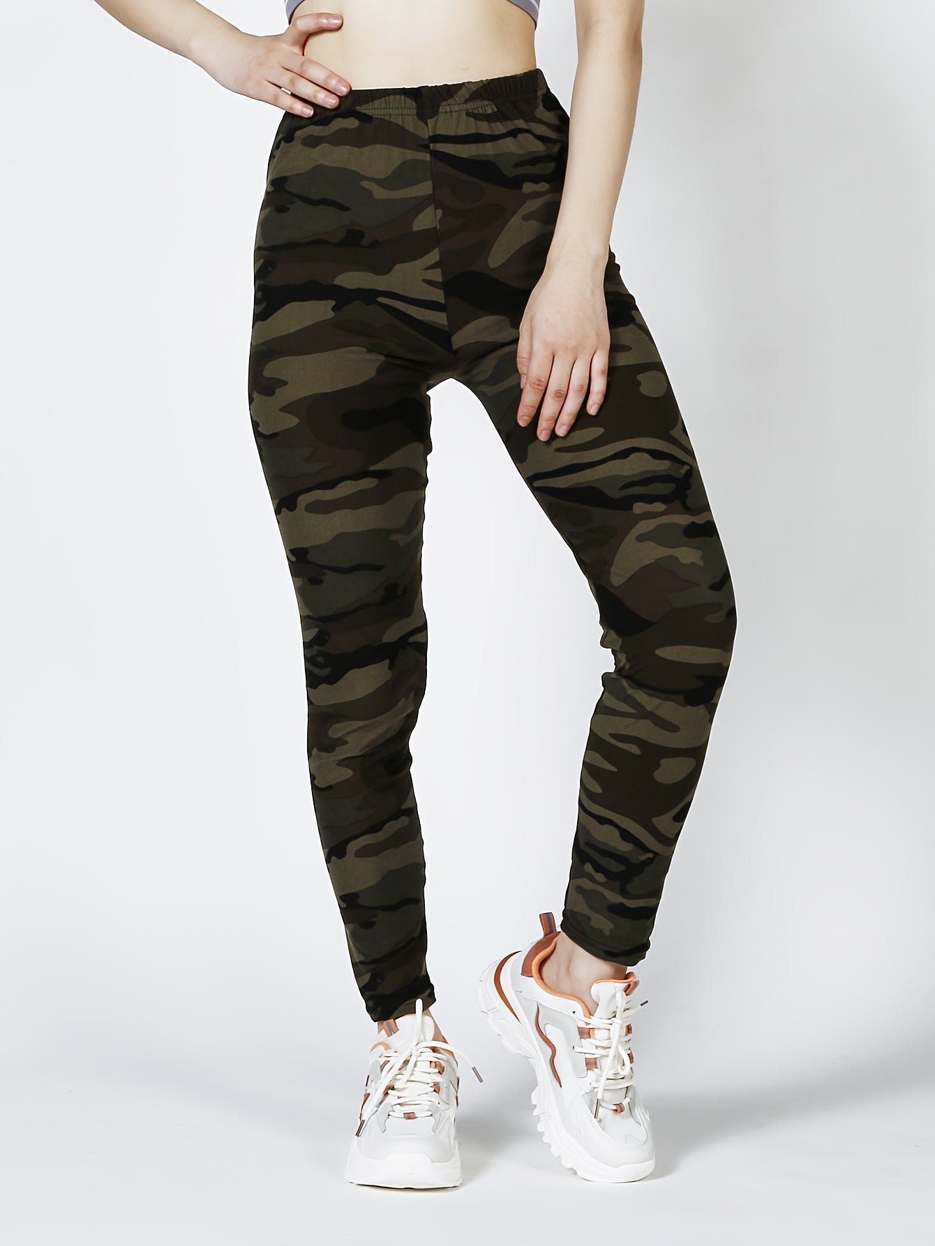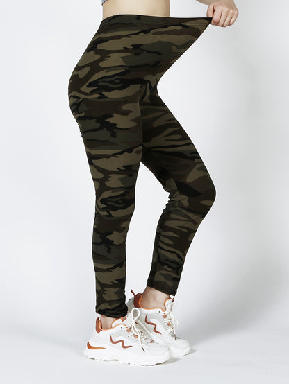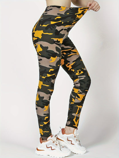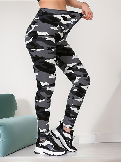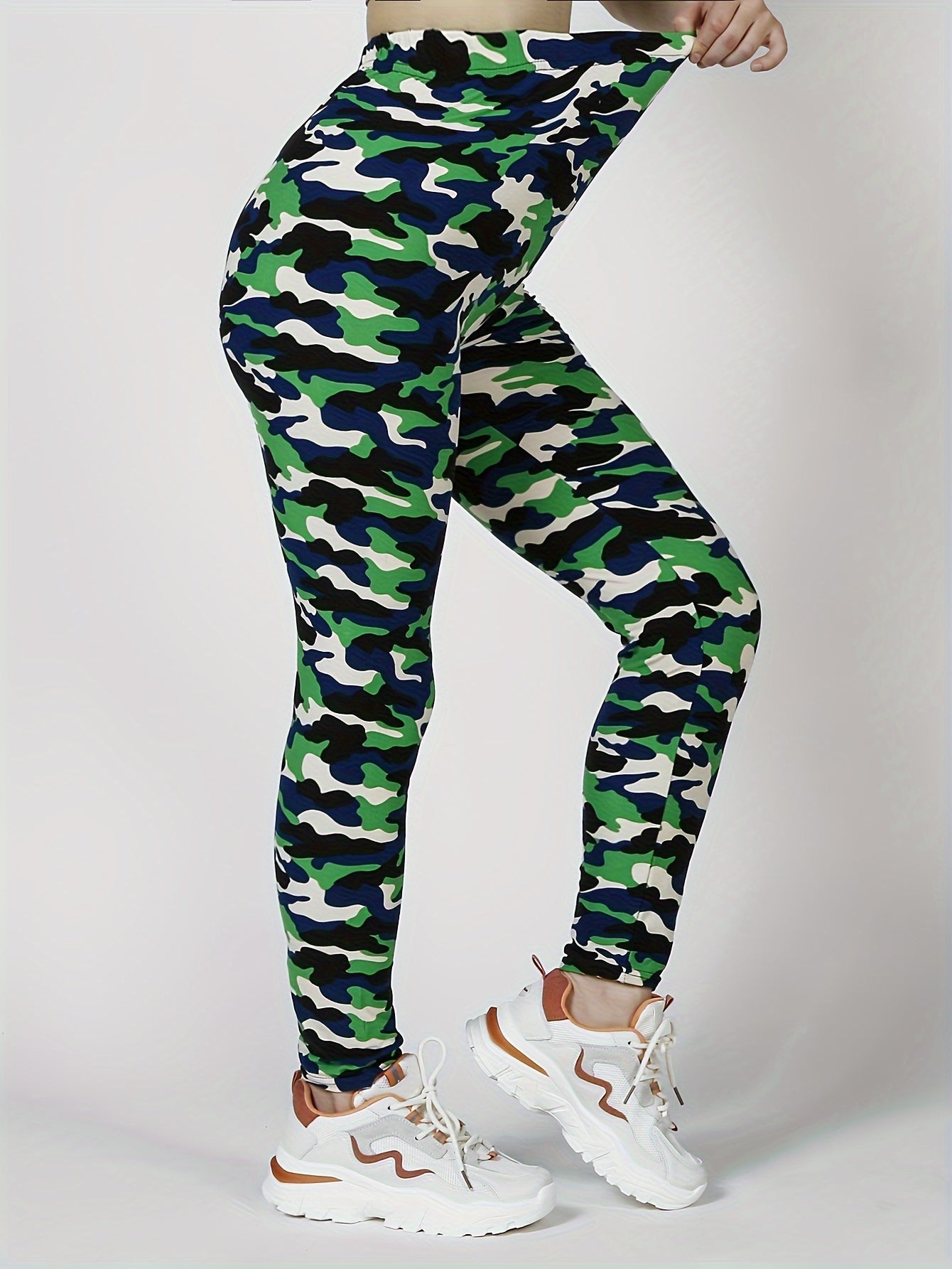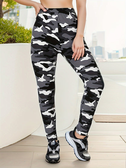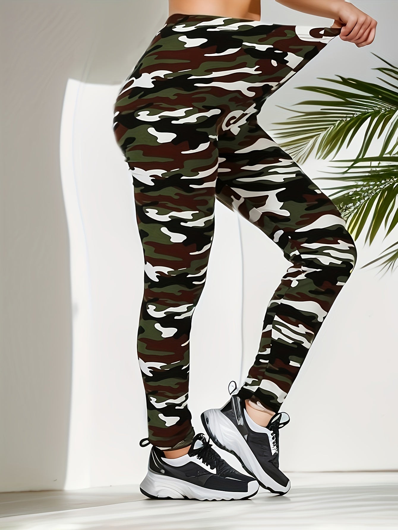 Camo Print Skinny Leggings, Casual High Waist Stretchy Leggings, Women's Clothing