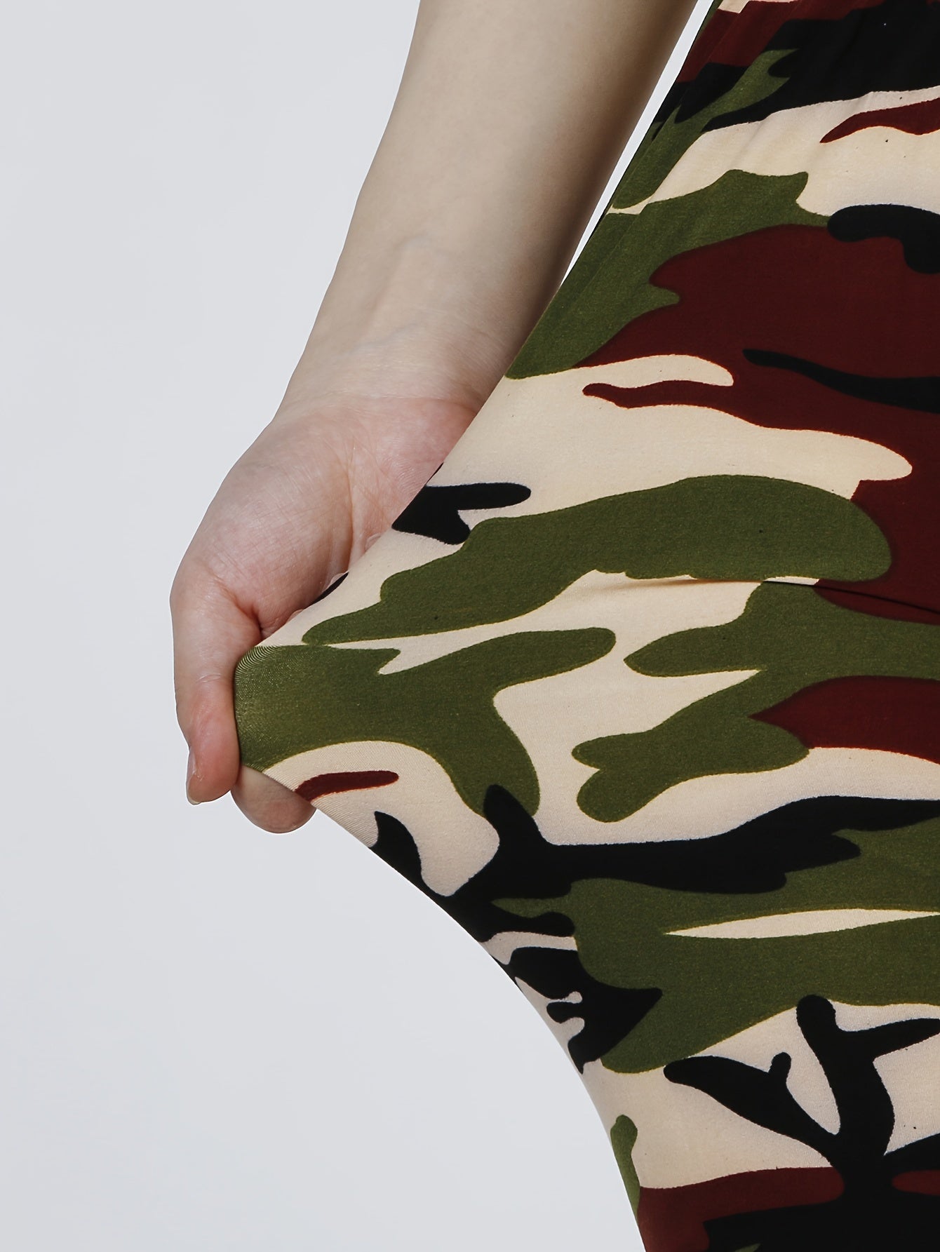 These Camo Print Skinny Leggings are perfect for the fashion-forward woman looking for both comfort and style. The stretchy high waist design provides a flattering fit, while the camo print adds a trendy touch to any outfit. Made with high-quality materials, these leggings are a must-have addition to any wardrobe.
