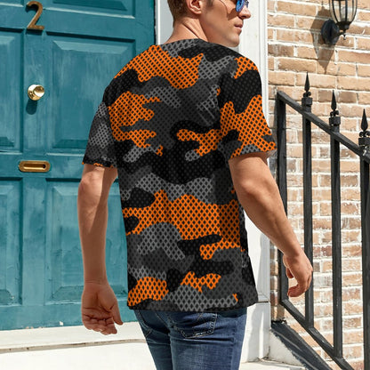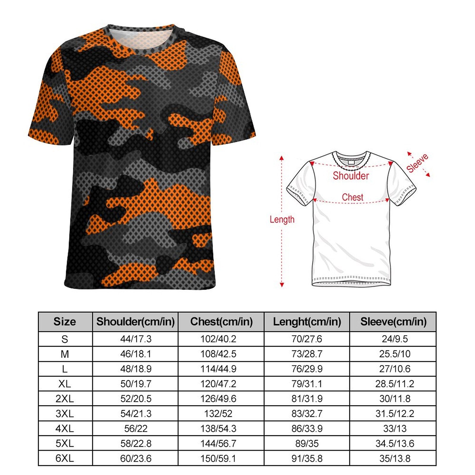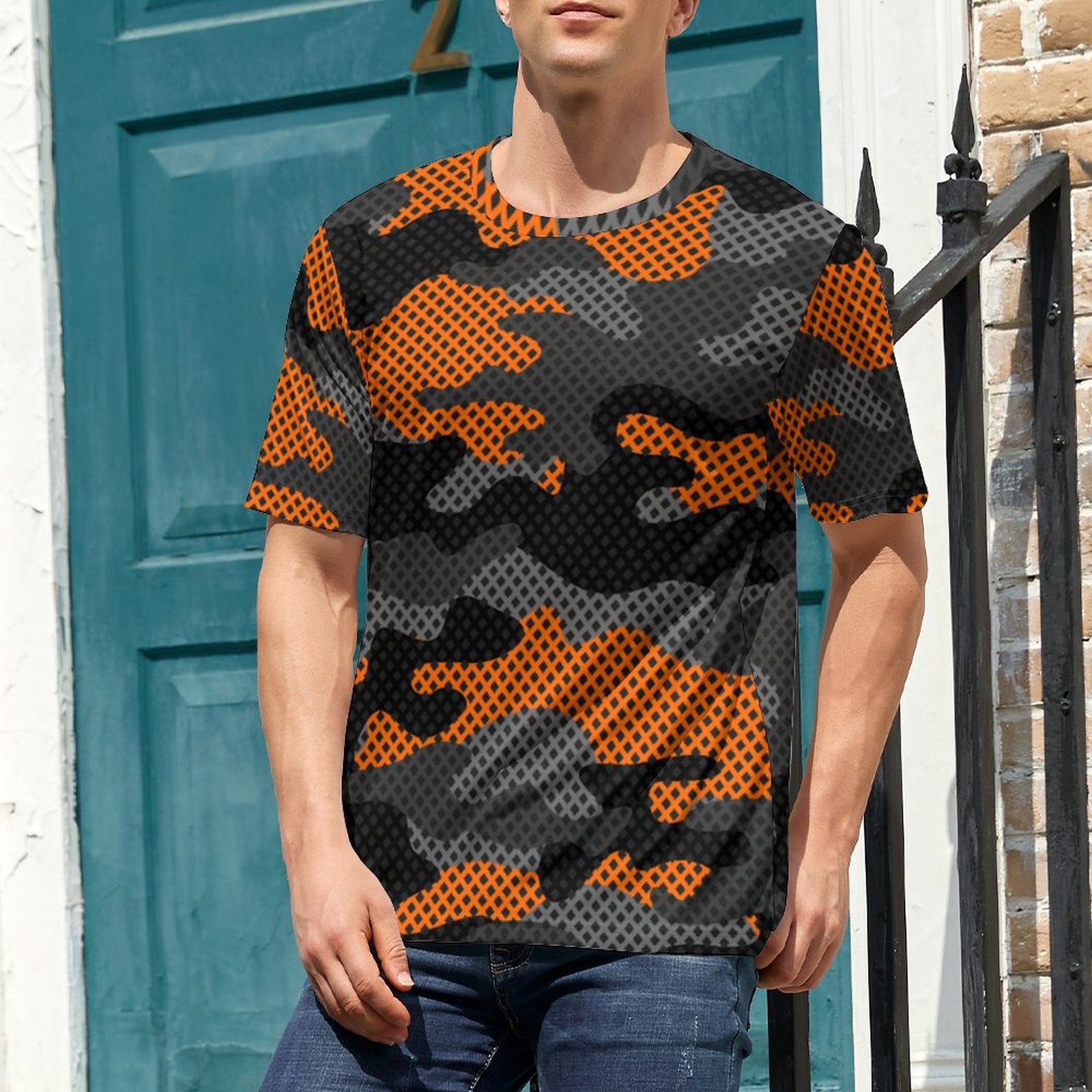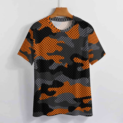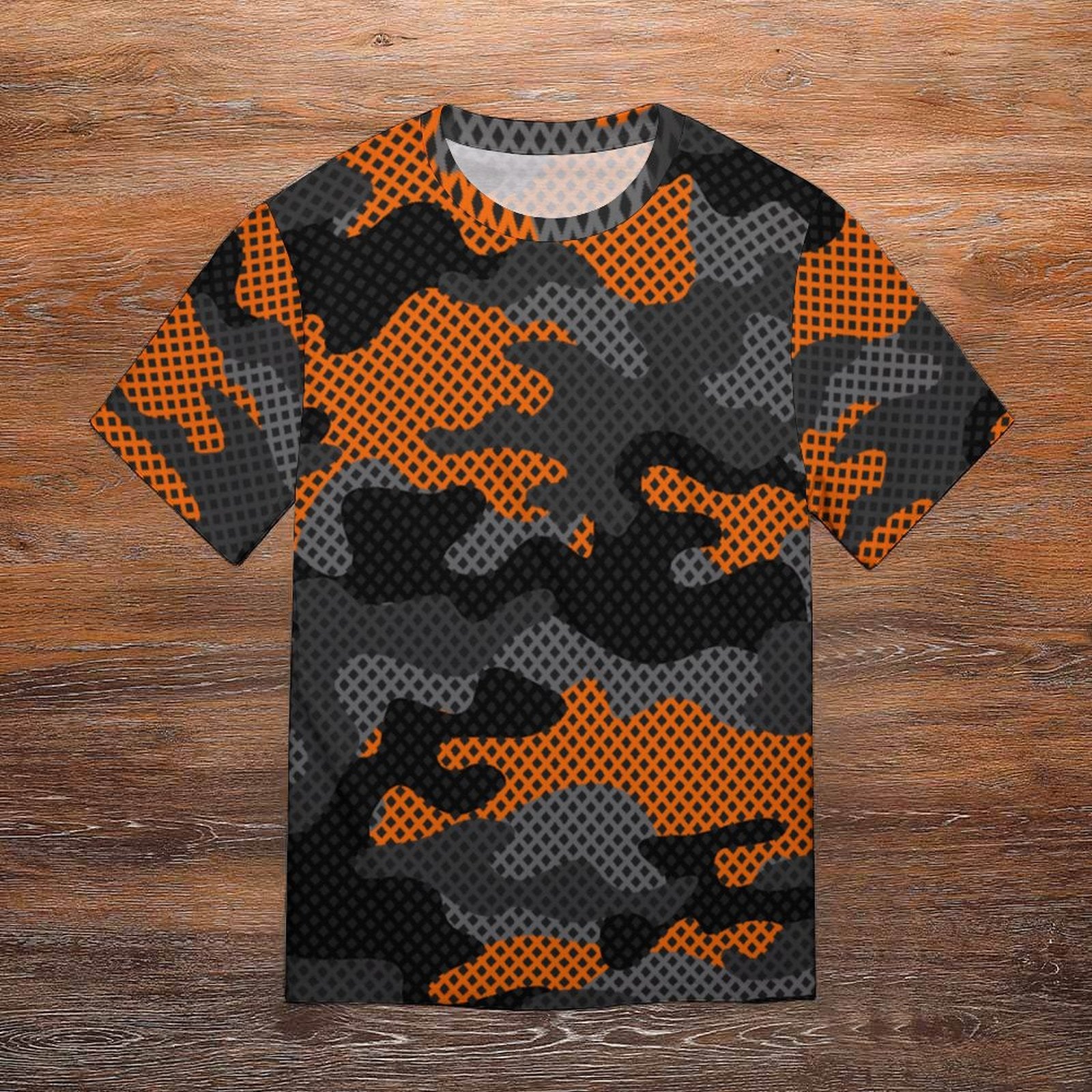 Introducing our Camo Shirt, featuring a unique Black & Orange Pixel Camouflage design. With its modern twist on traditional camouflage, this tee is perfect for making a bold fashion statement. Stand out from the crowd and express your individual style with our Camo Shirt.