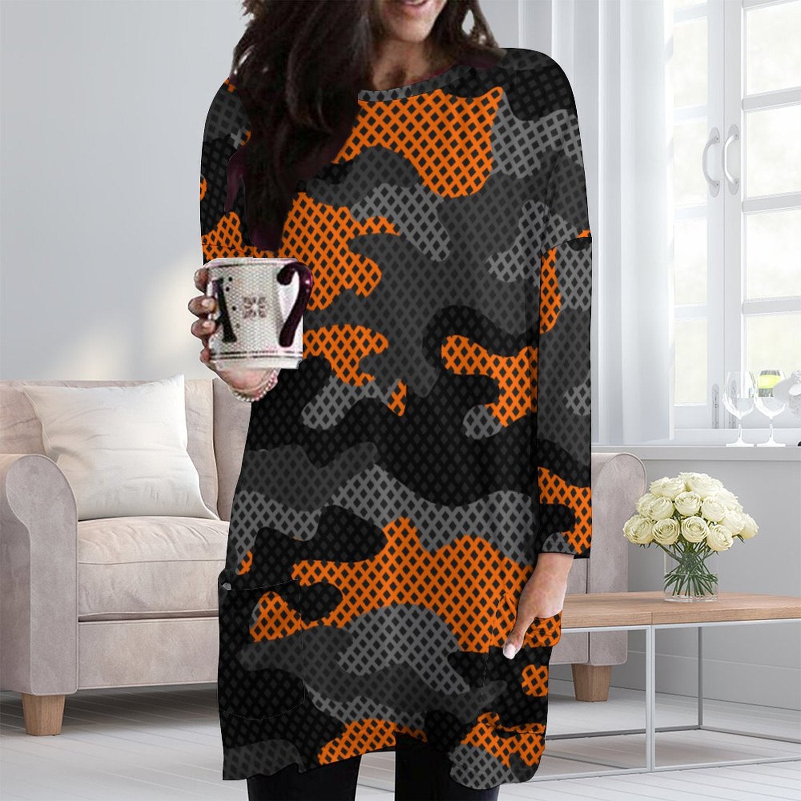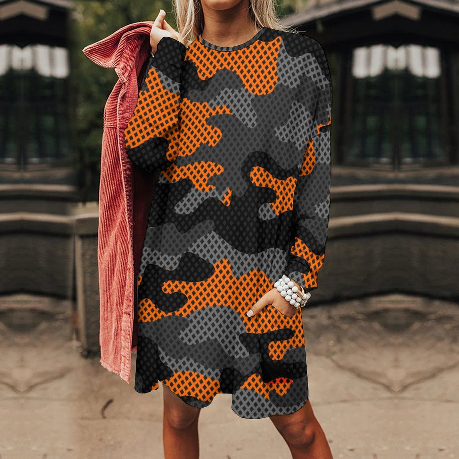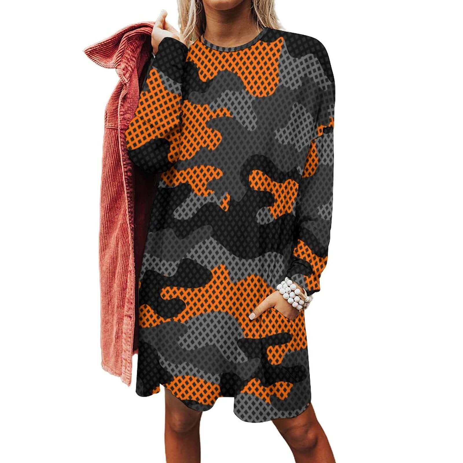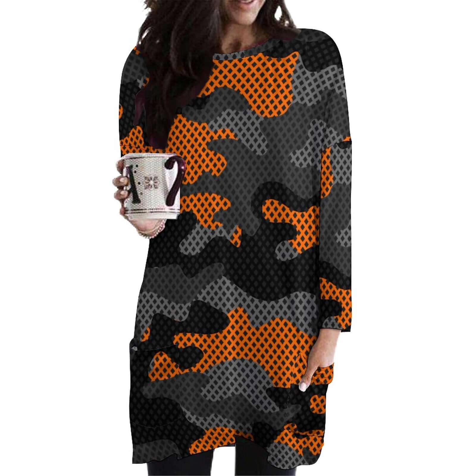 Camo Shirt | Loose Fit Long Sleeves | Orange & Black Pixel