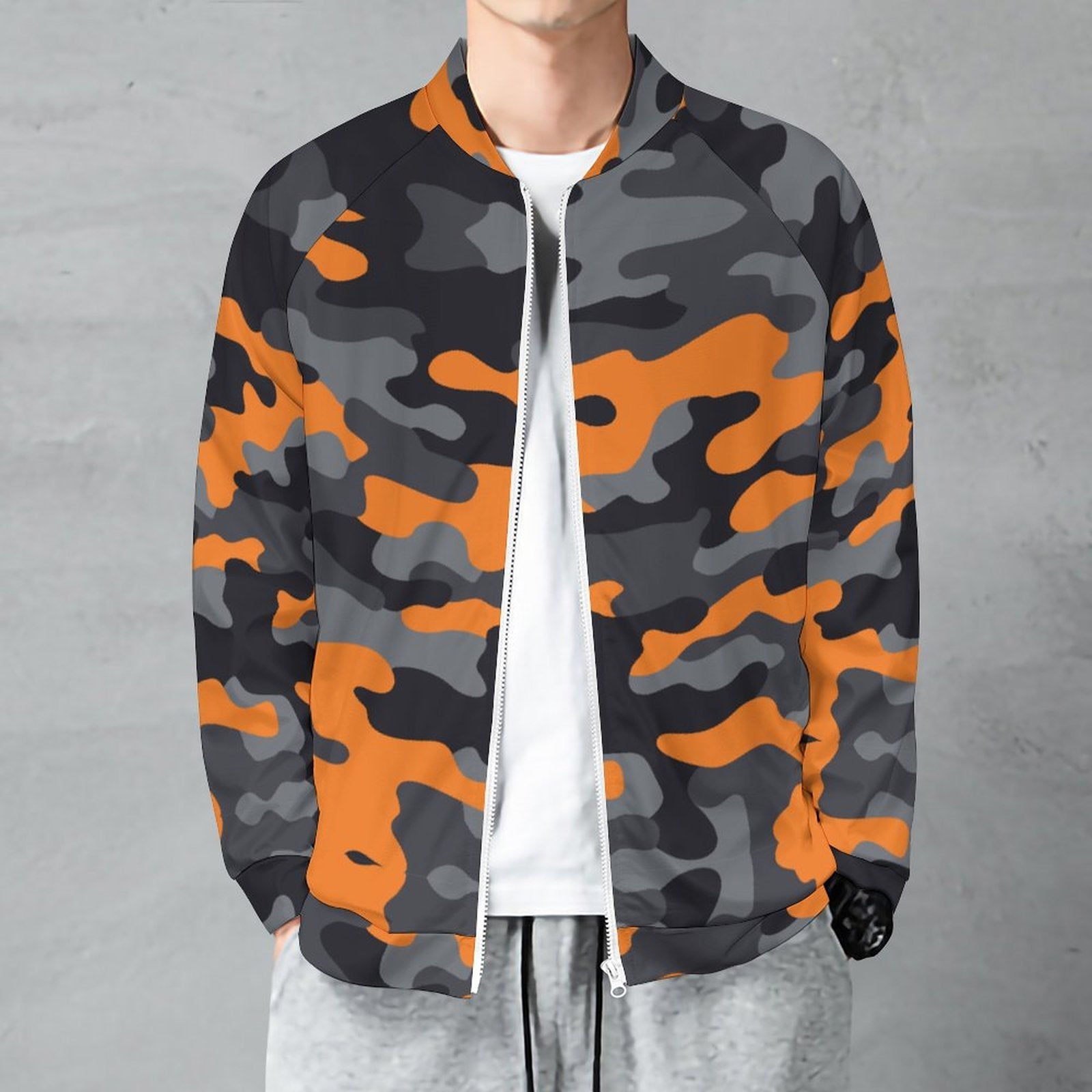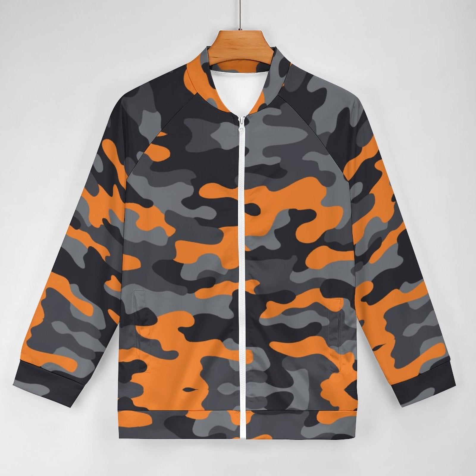 Camo Shirt | Raglan Zip-up | Orange, Black, and Gray