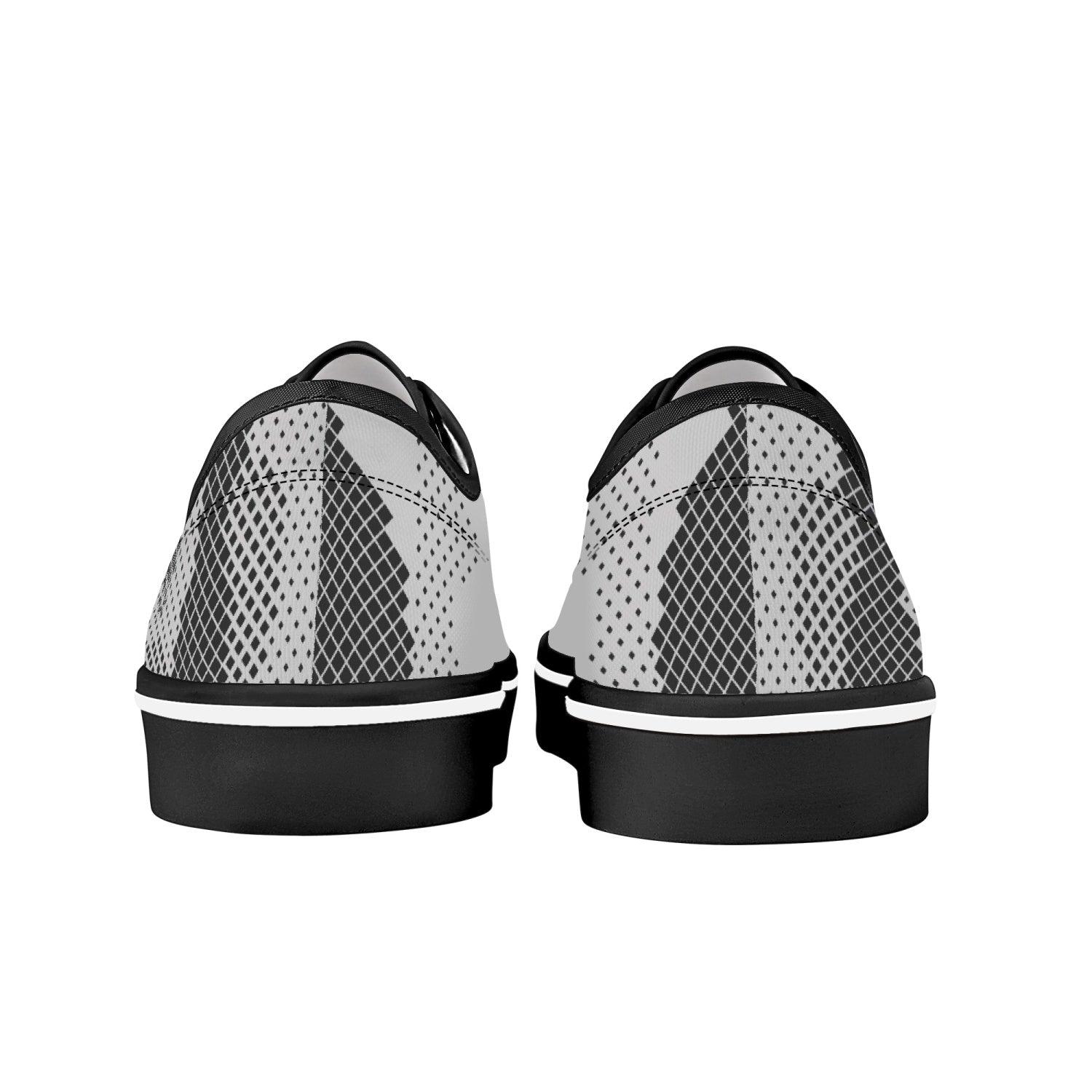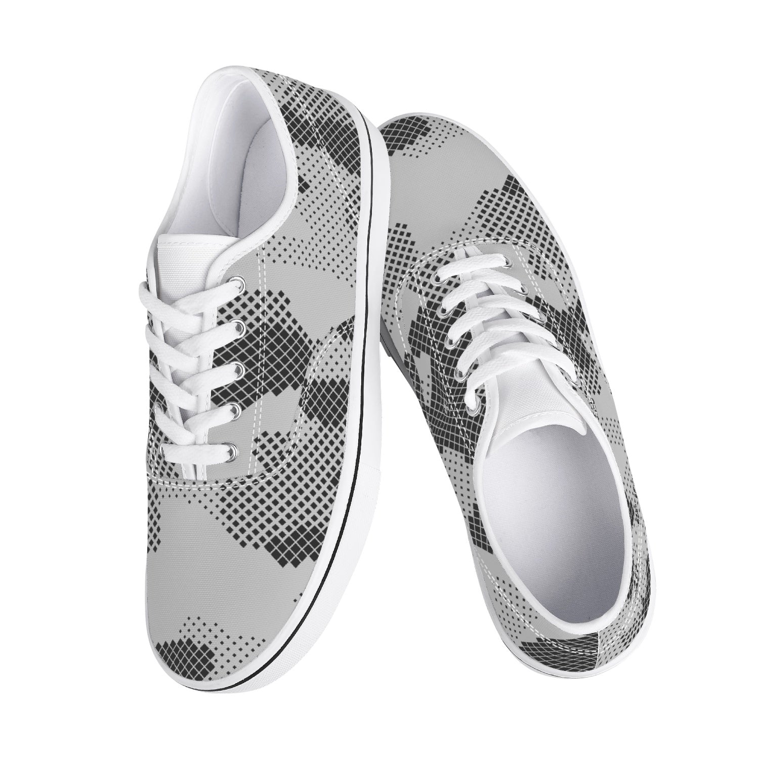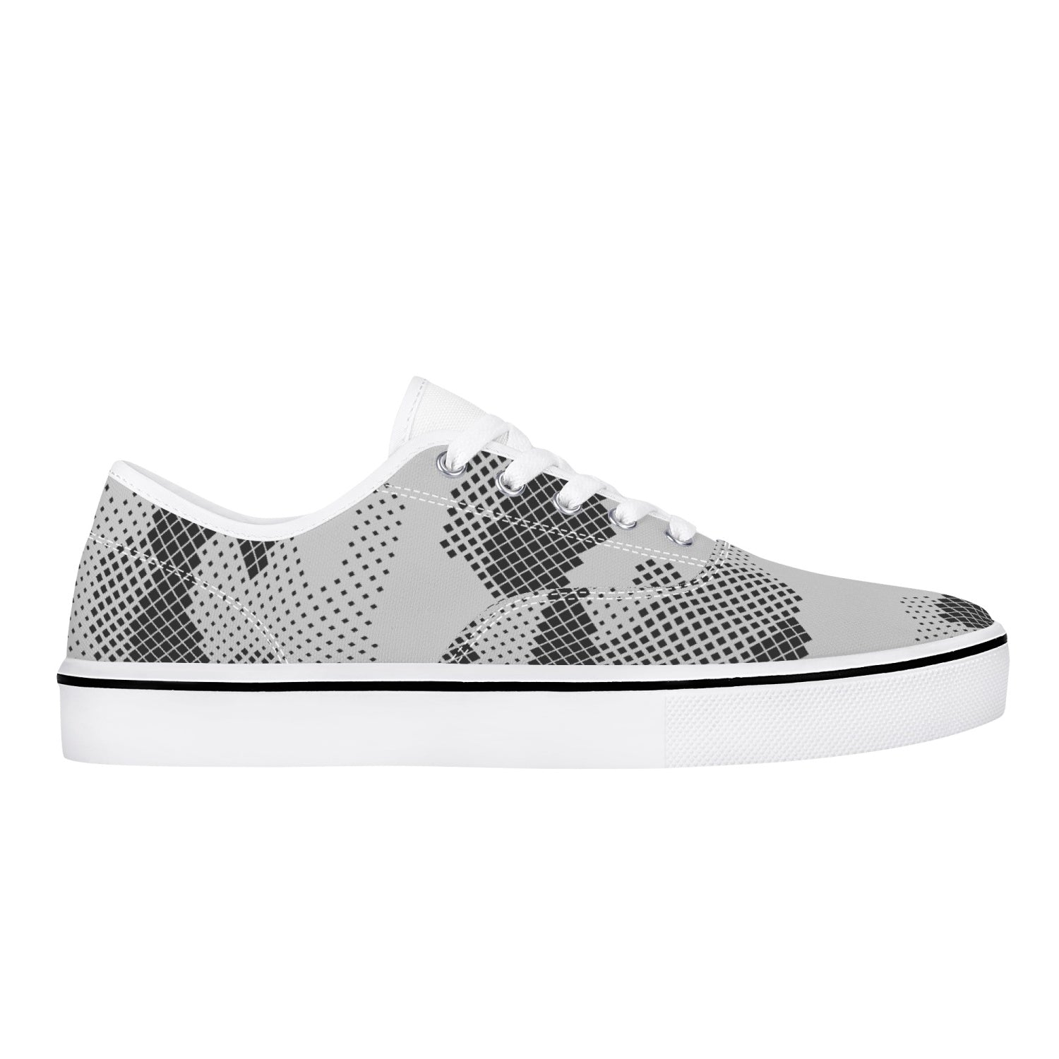 Our Camo Skate Shoes in Digital Gray Camouflage are the perfect blend of style and functionality. The unique camouflage design offers a sleek and modern look, while the durable construction ensures long-lasting wear. With these shoes, you can confidently conquer any terrain in style.