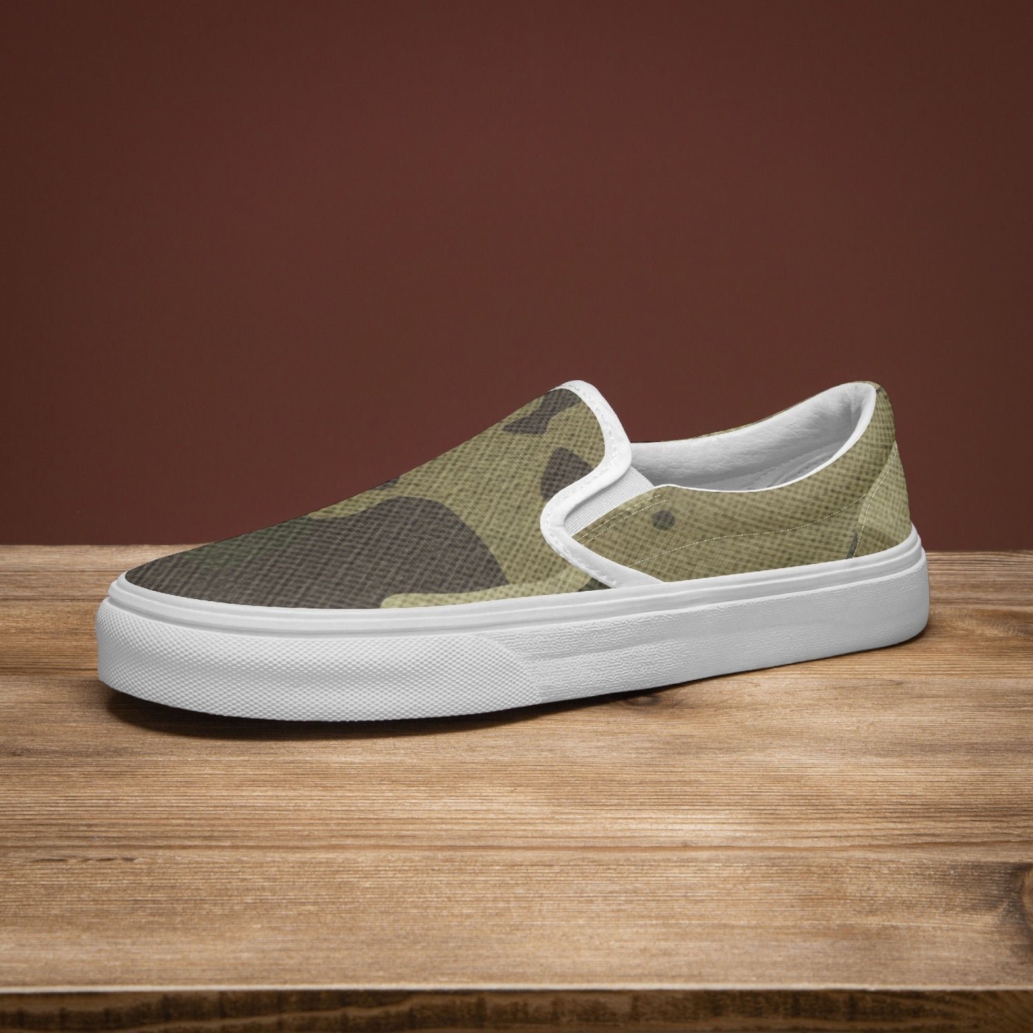 Camo Slip-On Shoes | Green Fabric Camouflage Design