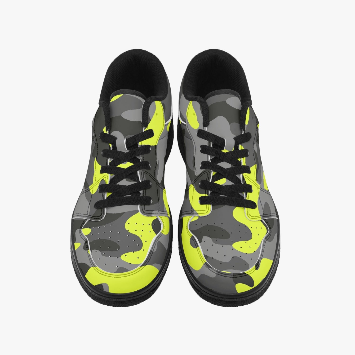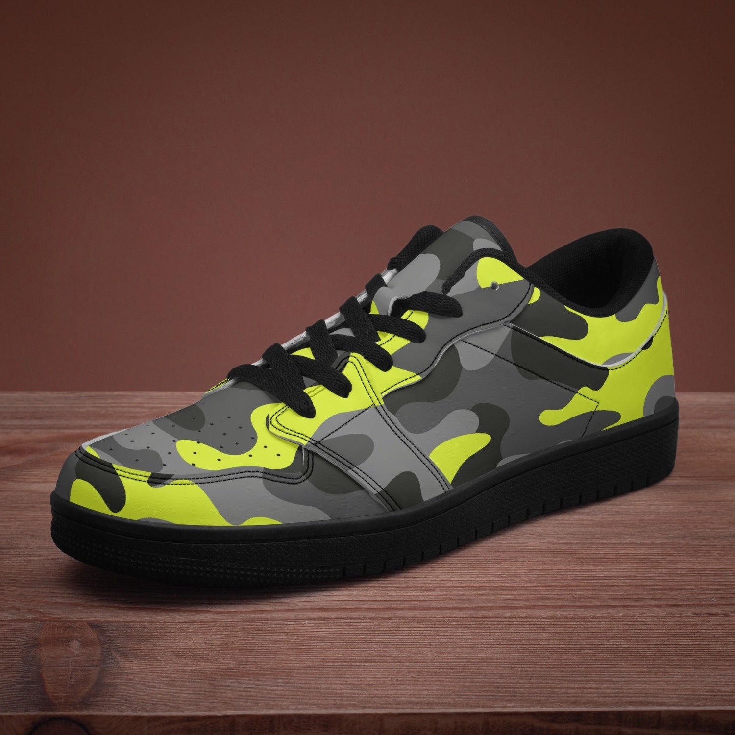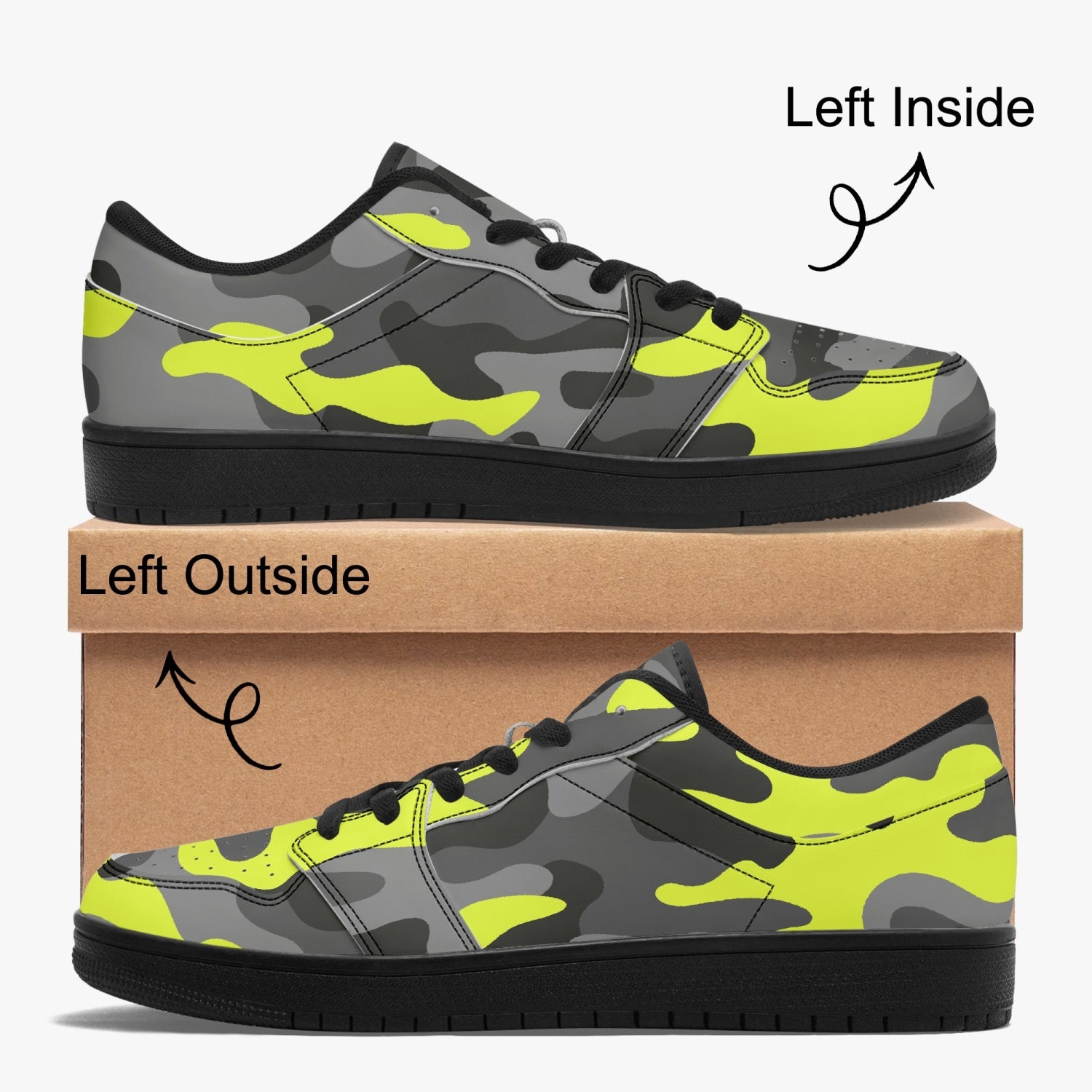 Camo Sneakers | Black Yellow Low-Top Leather Camouflage Shoes