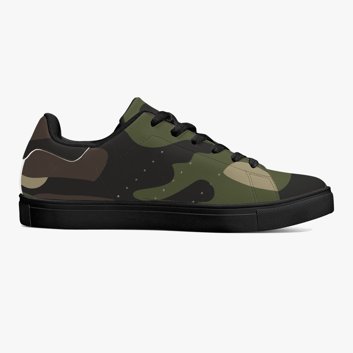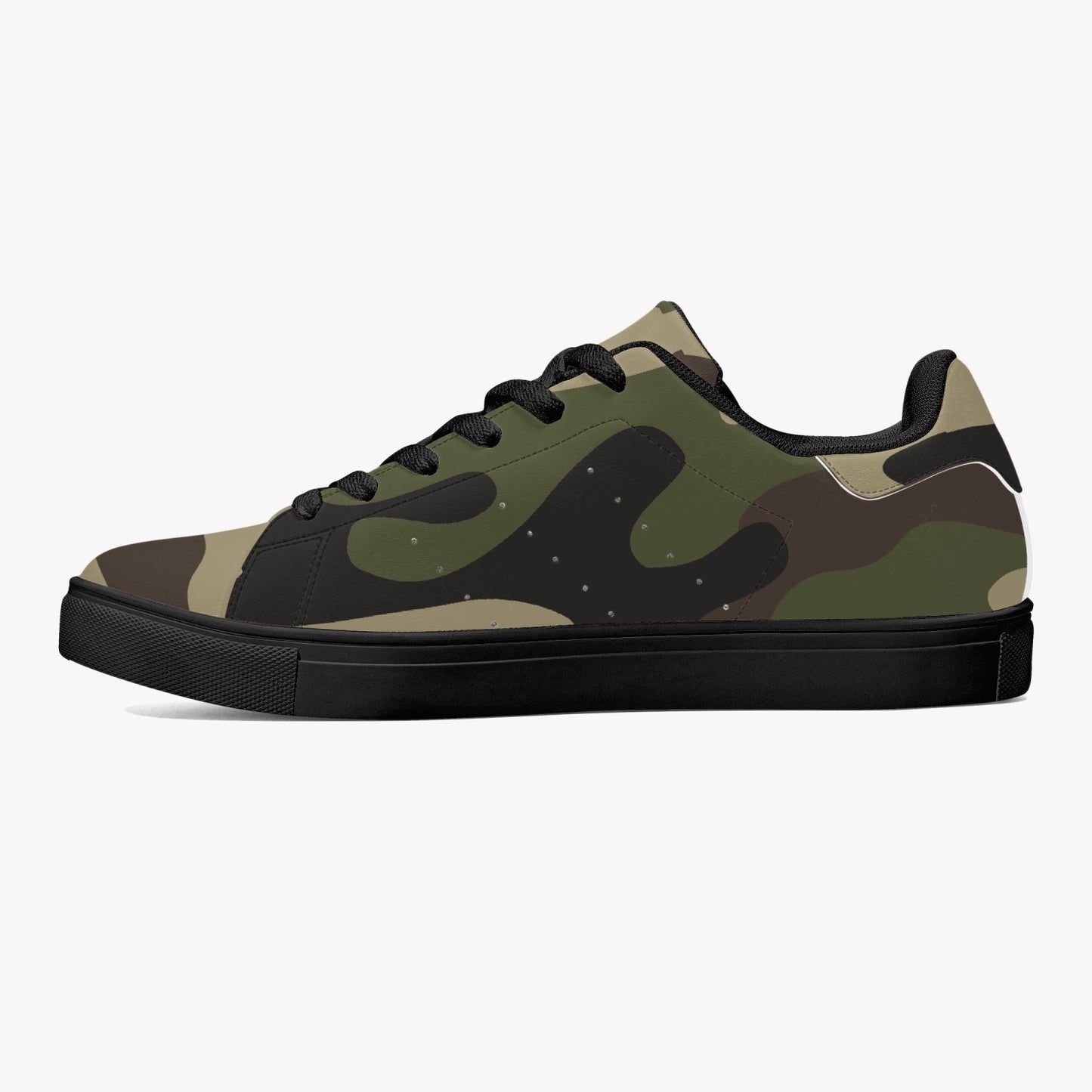 These Camo Sneakers are made with classic low-top leather and feature a stylish classic green camo design. Perfect for blending comfort and style, these sneakers are sure to be a staple in your wardrobe. Bring a trendy and unique touch to any outfit with these must-have shoes.