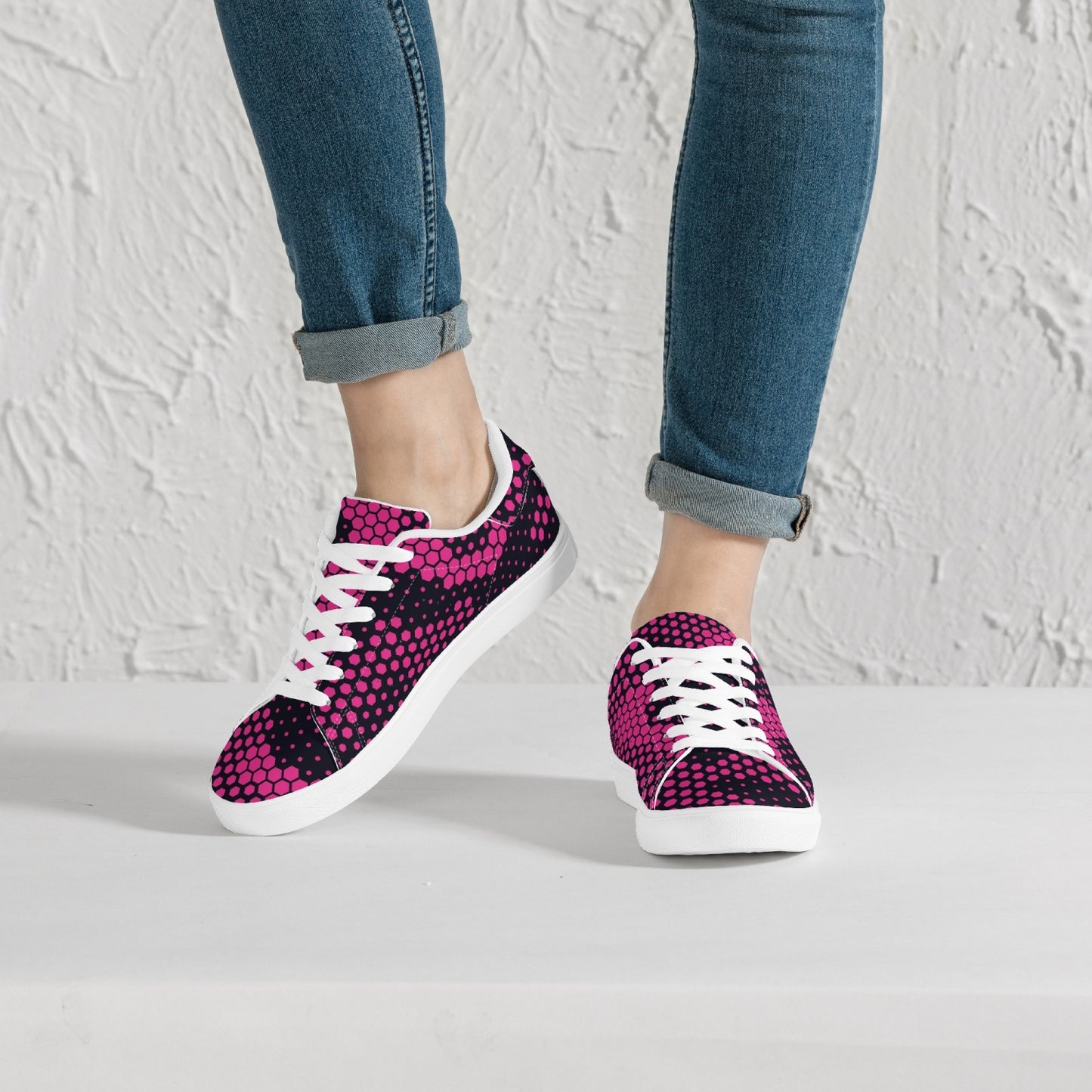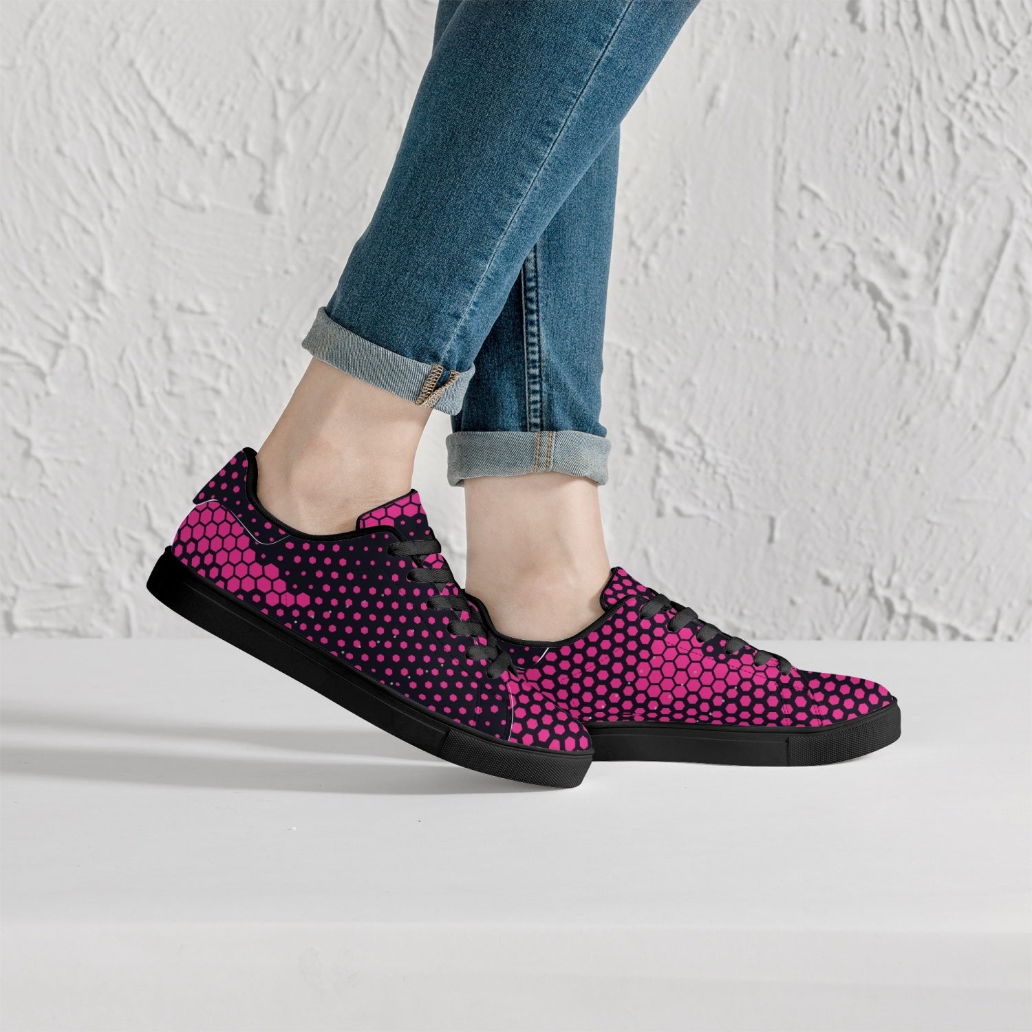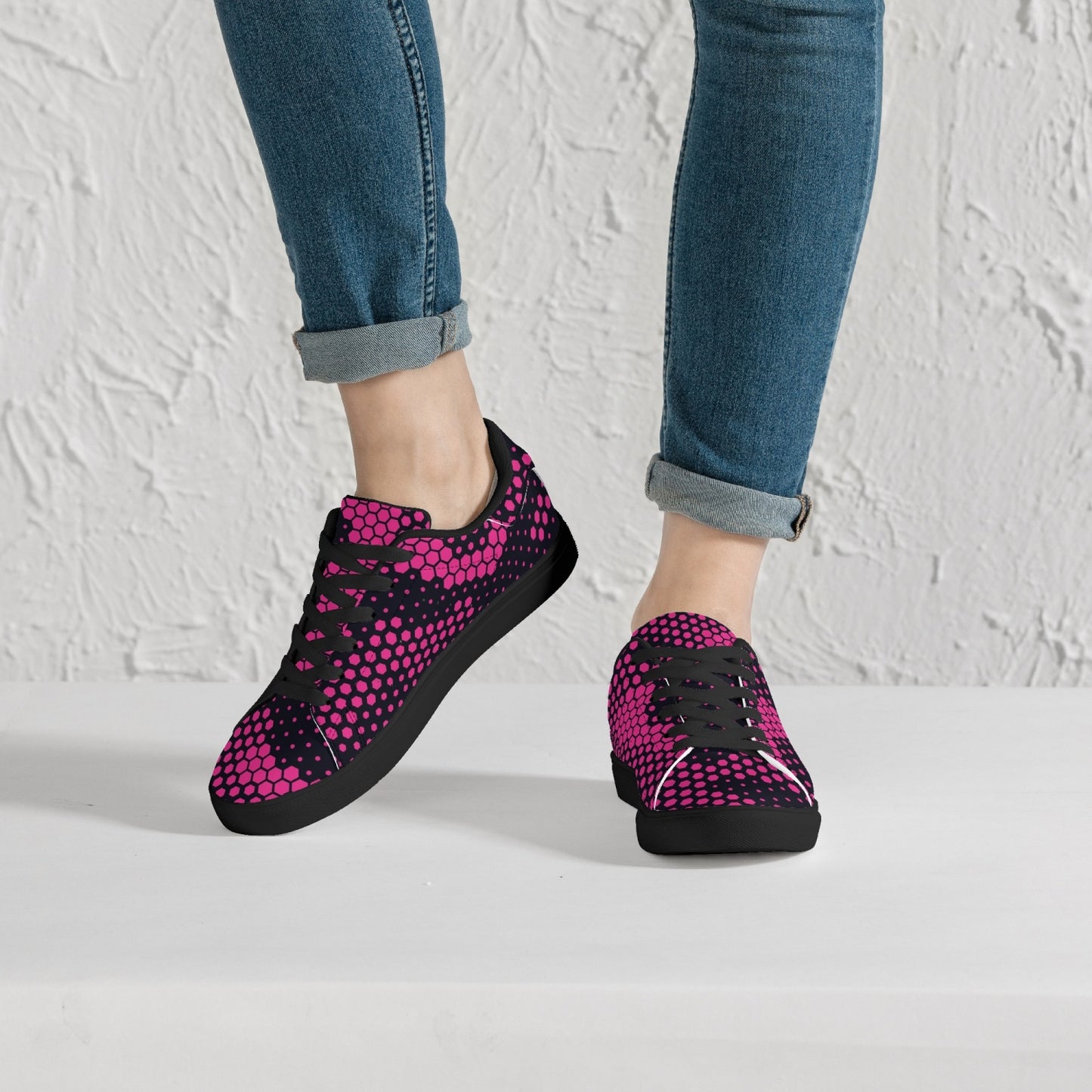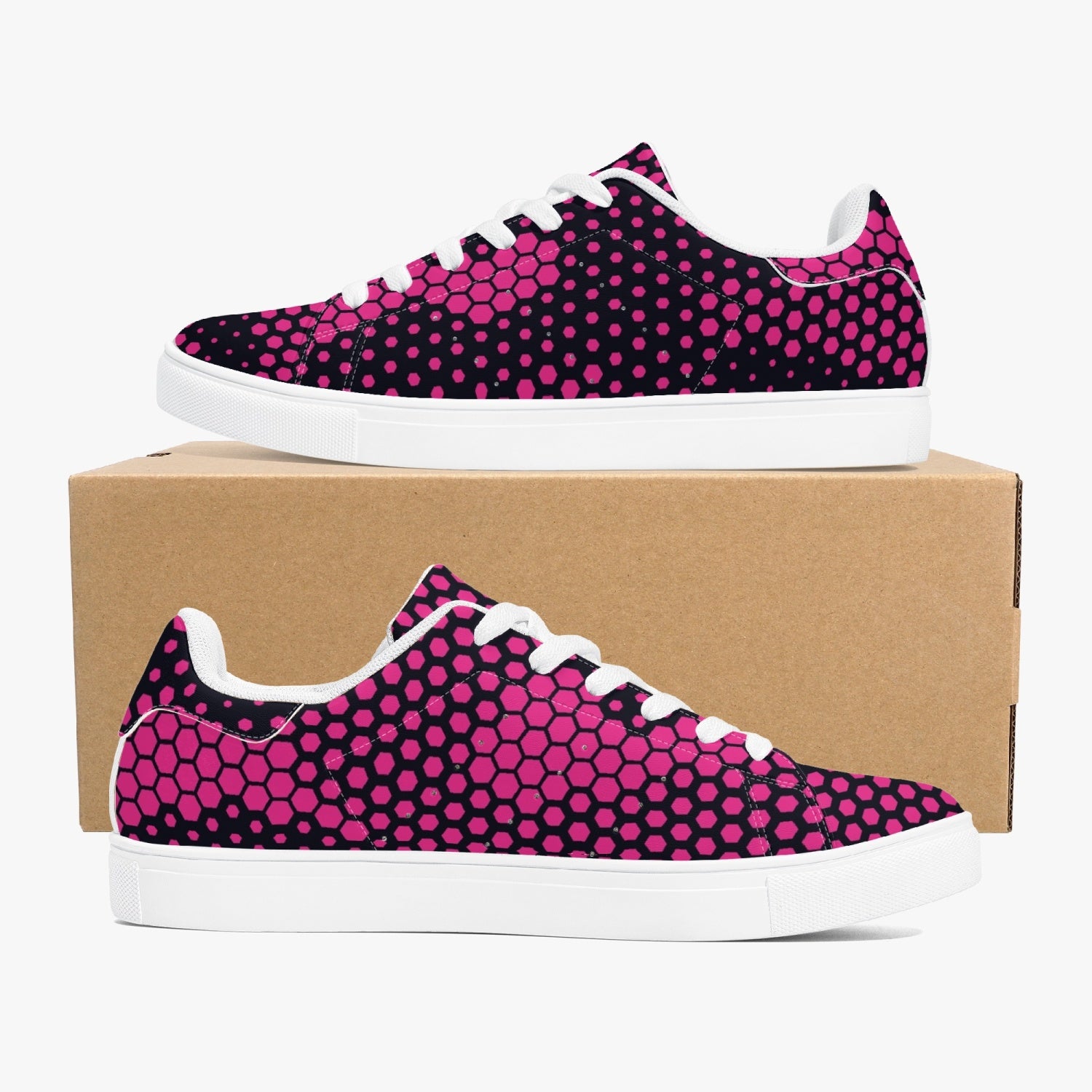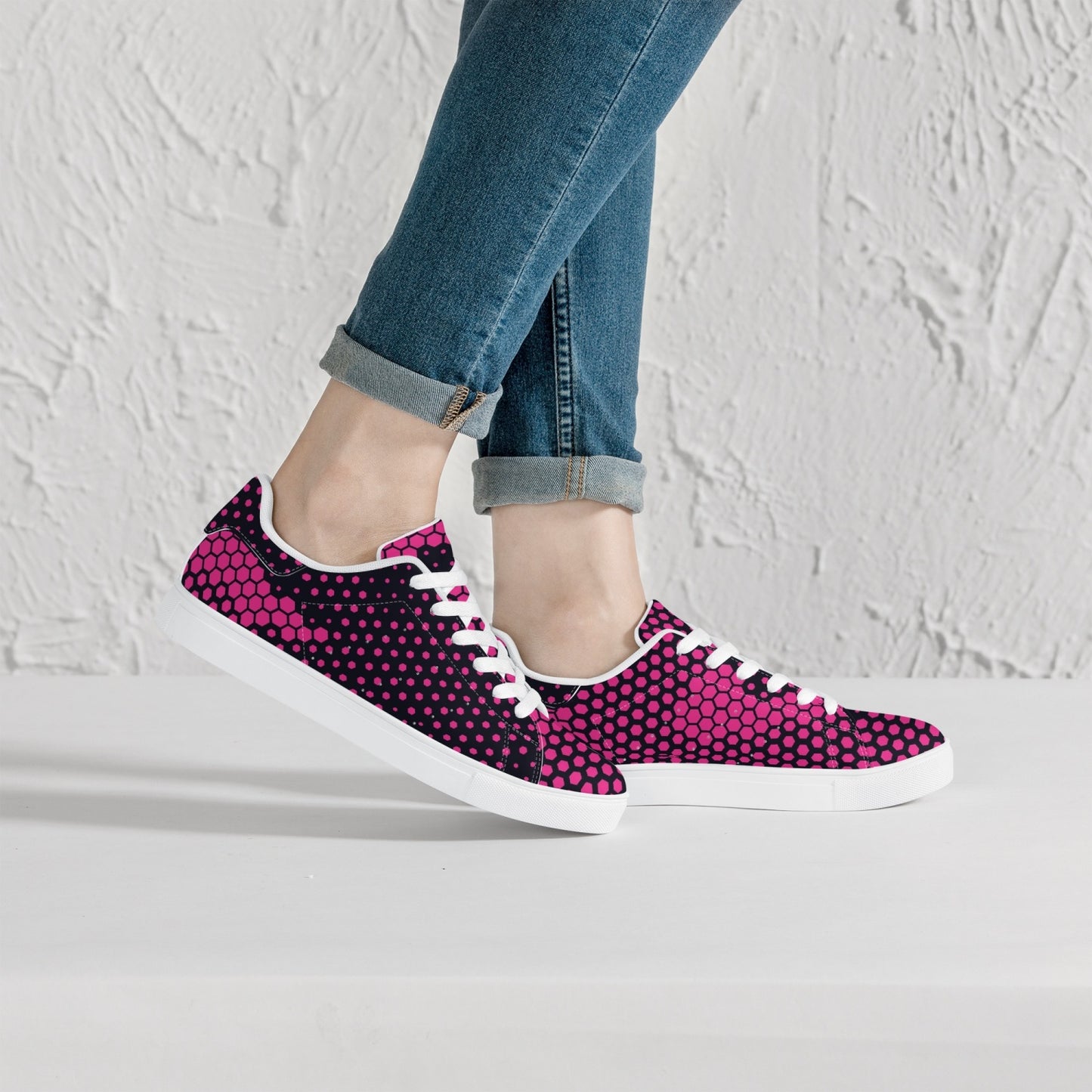 These Camo Sneakers feature a classic low-top leather design in a vibrant digital pink color. With its versatile camo print, these sneakers are perfect for adding a pop of color to any outfit. The high-quality leather provides durability, while the low-top design allows for increased mobility. Stand out in style with these unique and fashionable sneakers.