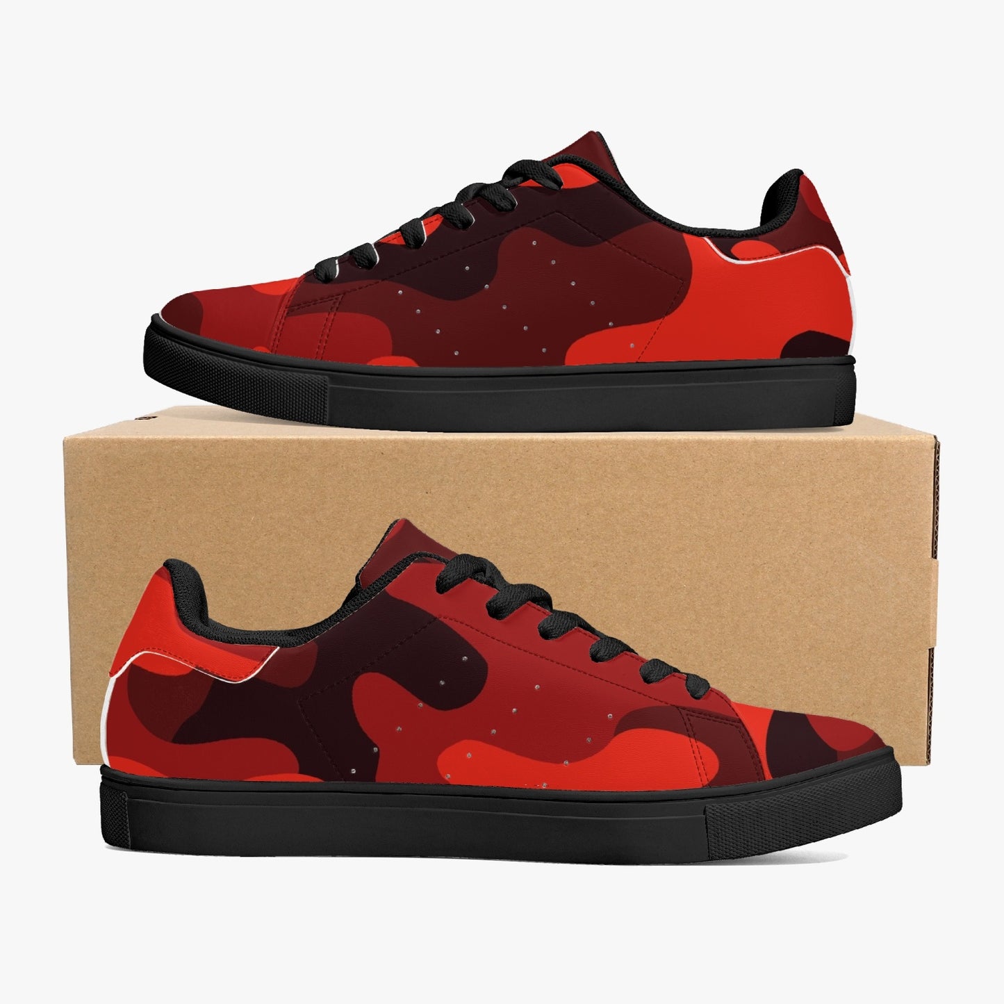 Camo Sneakers | Classic Low-Top Leather | Scarlet Red & Black