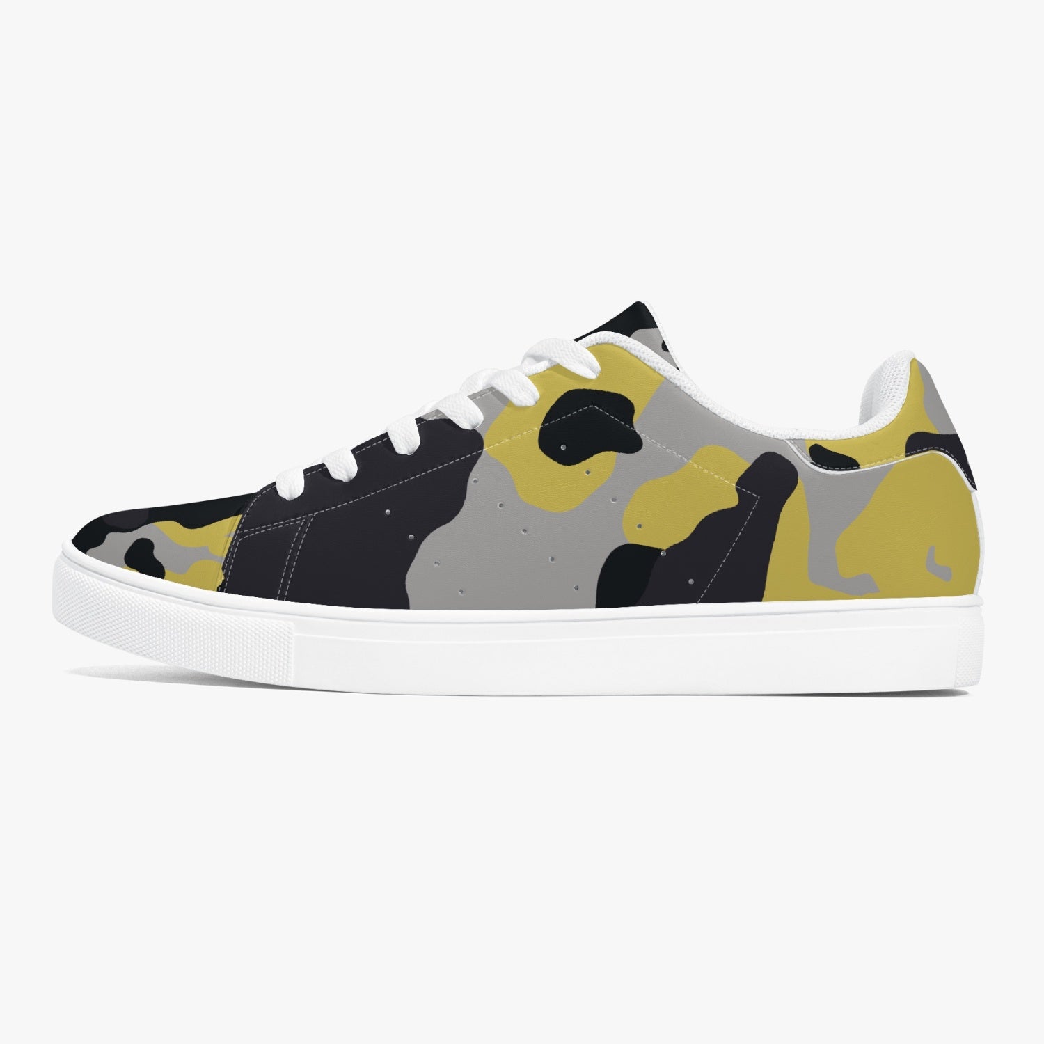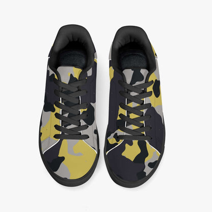 Camo Sneakers | Classic Low-Top Leather | Yellow, Black, & Silver