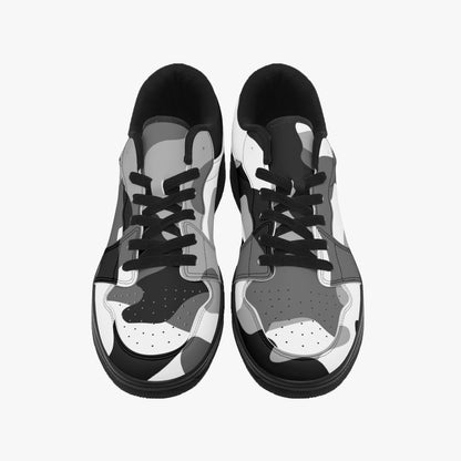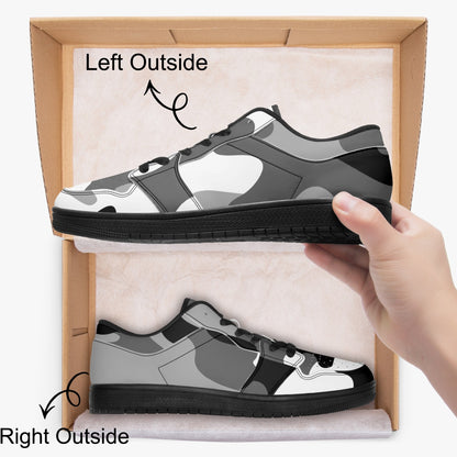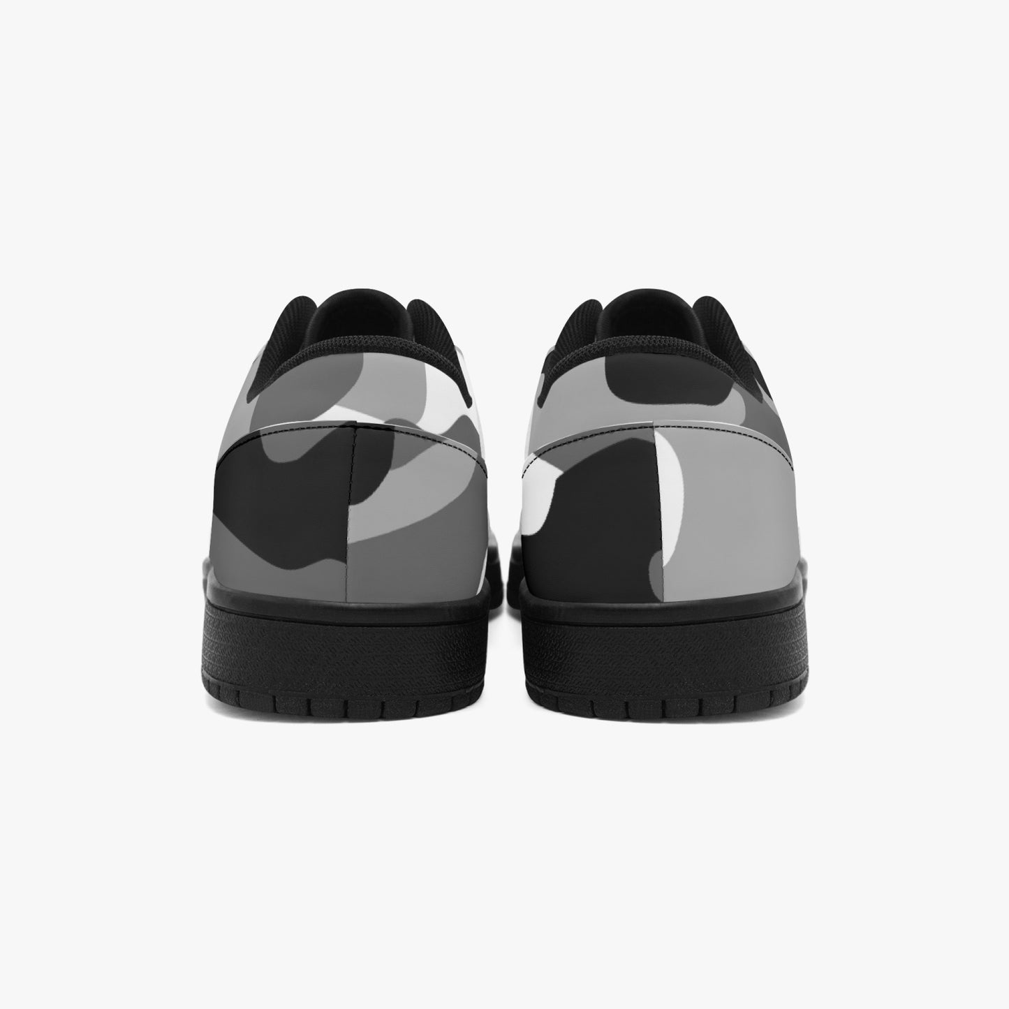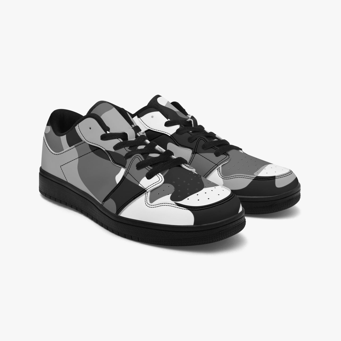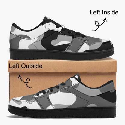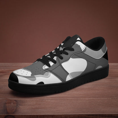 Camo Sneakers | Gray Black Low-Top Leather Camouflage Shoes