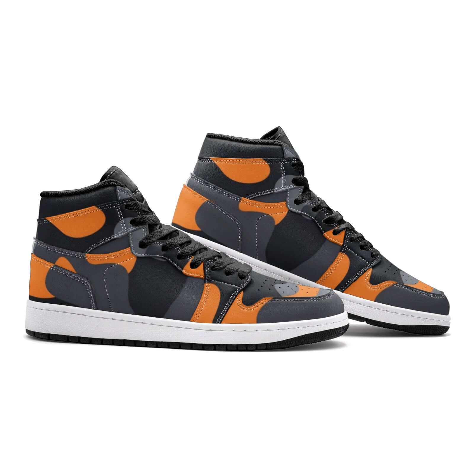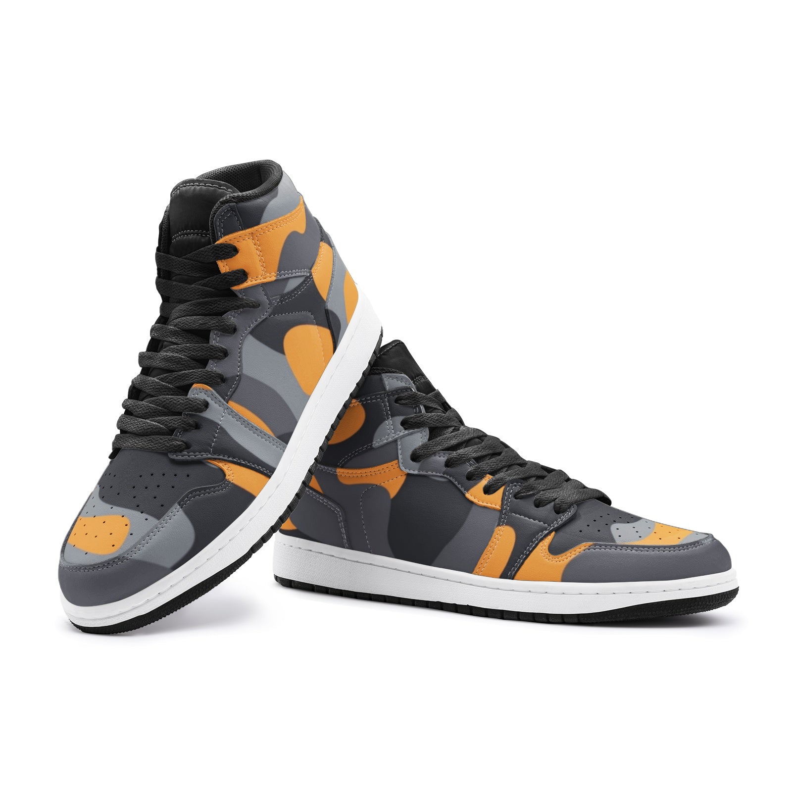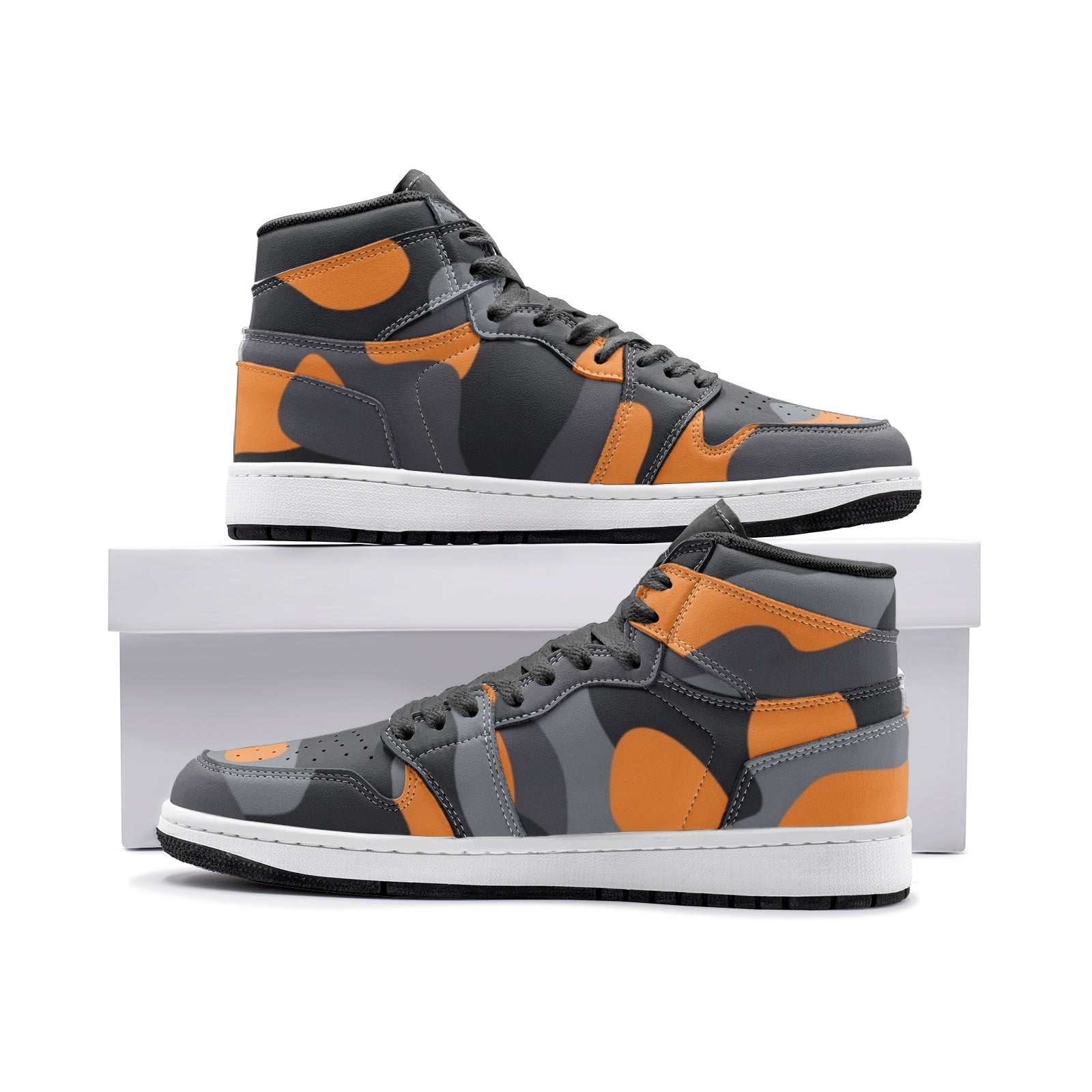 Camo Sneakers AJ1 Style | High-Top | Orange, Black & Gray Camouflage