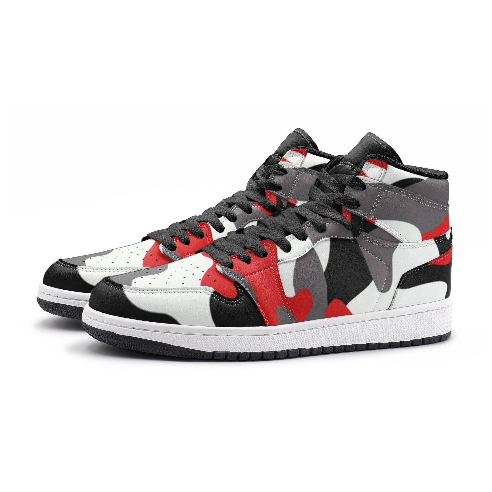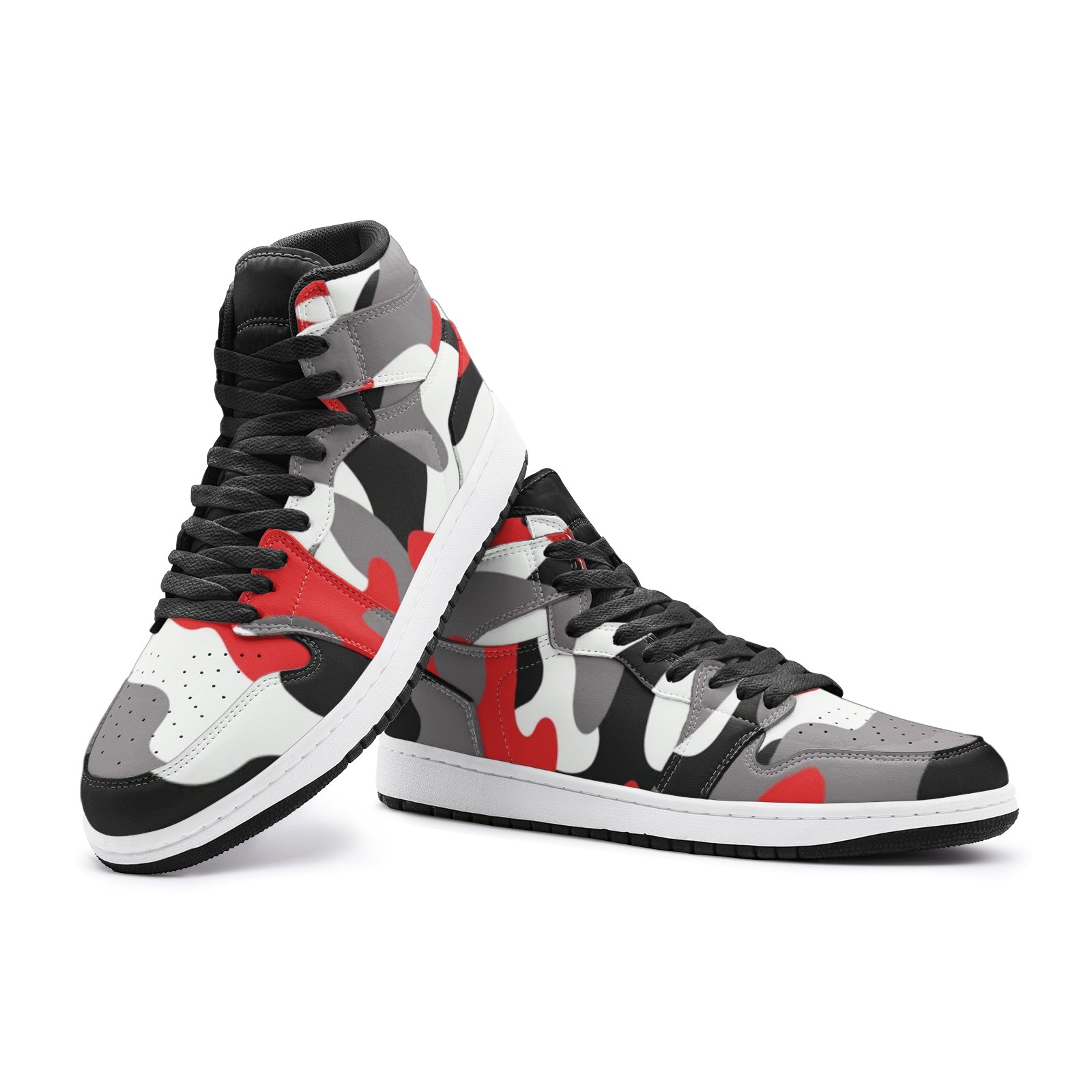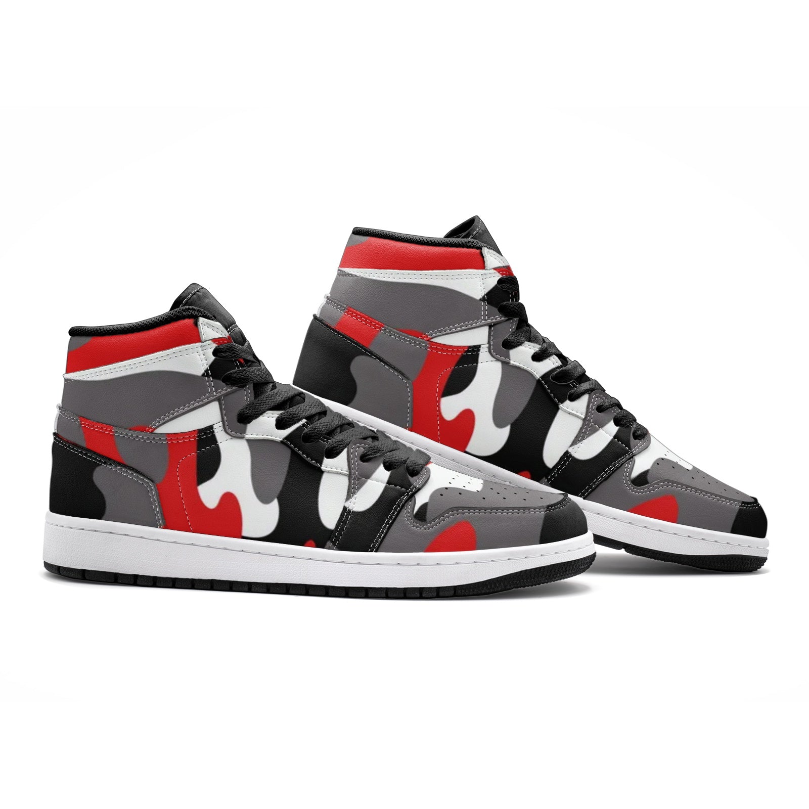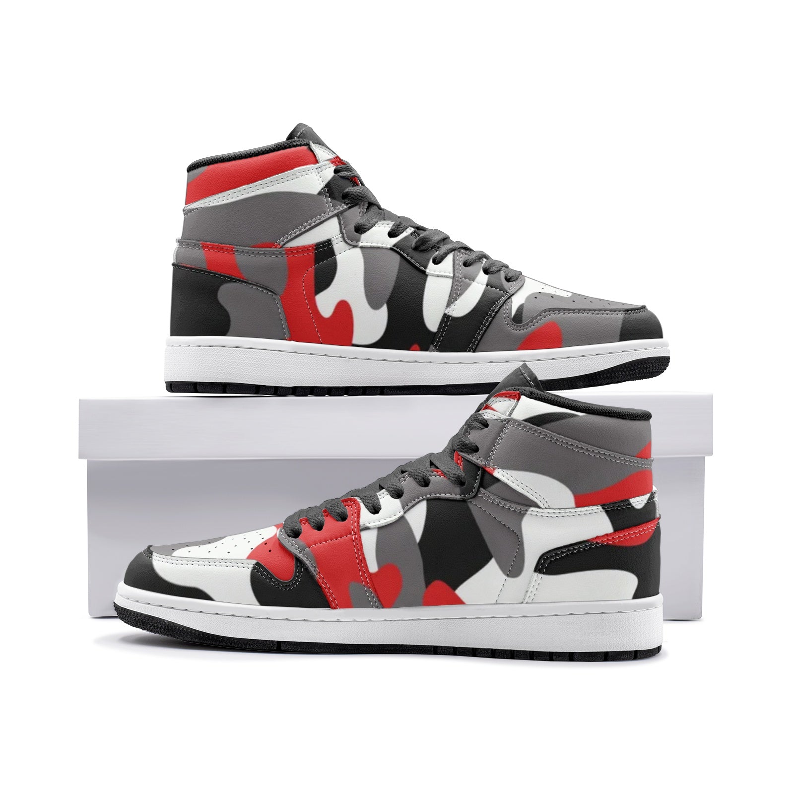 Camo Sneakers AJ1 Style | High-Top | Red, Black & White Camouflage